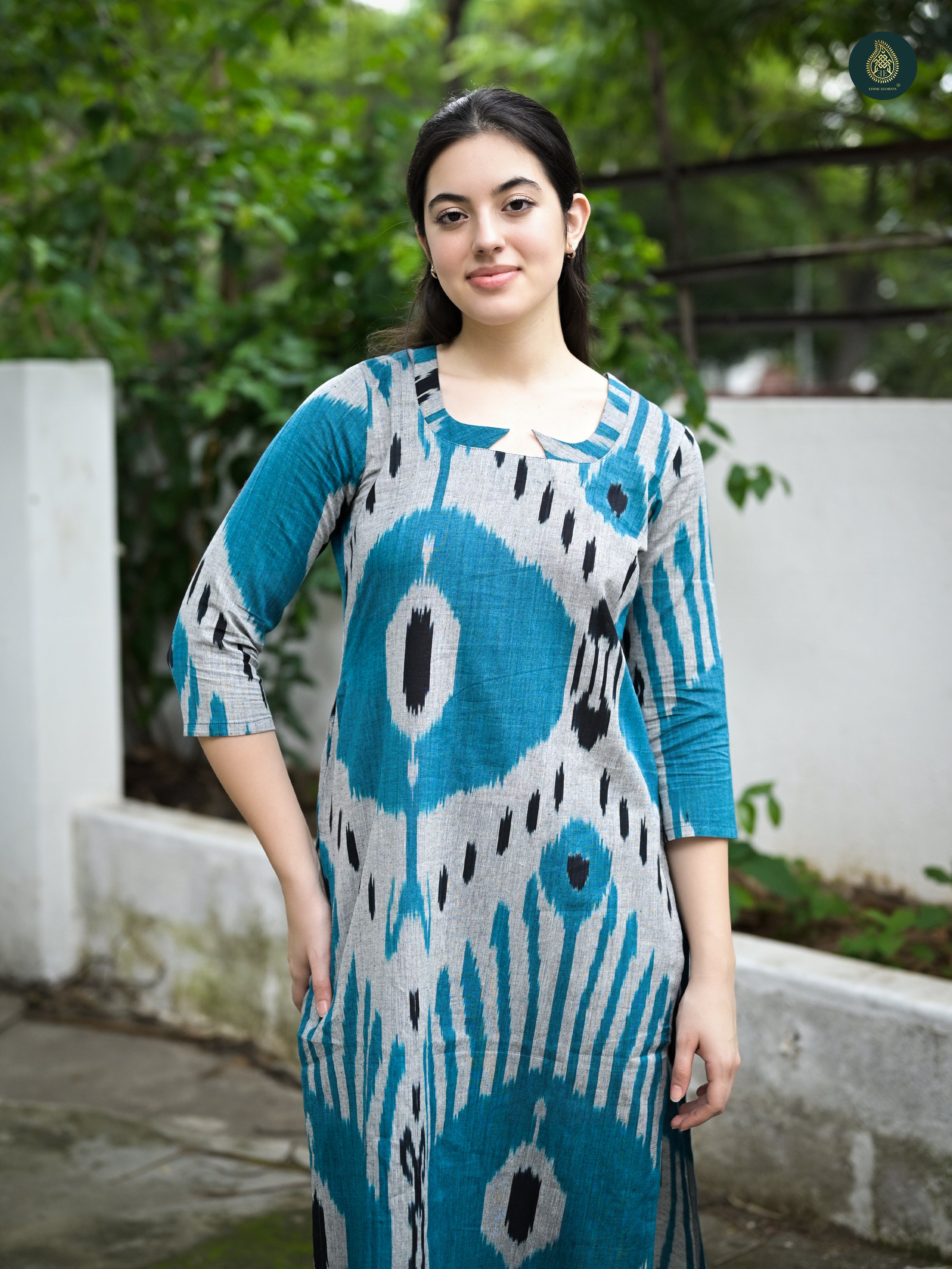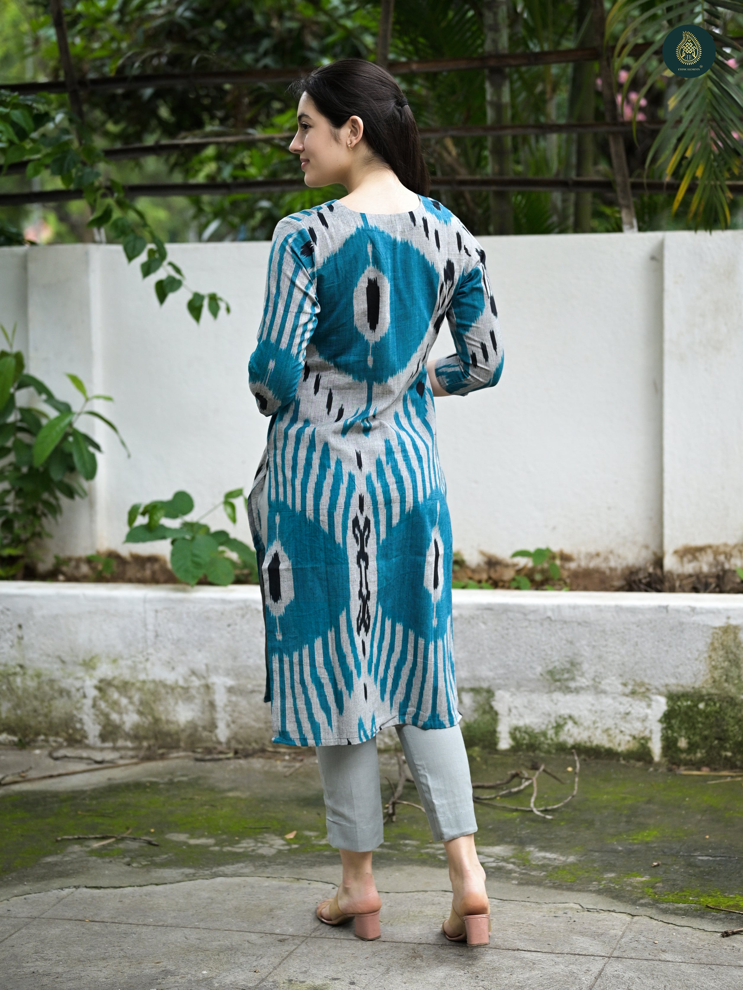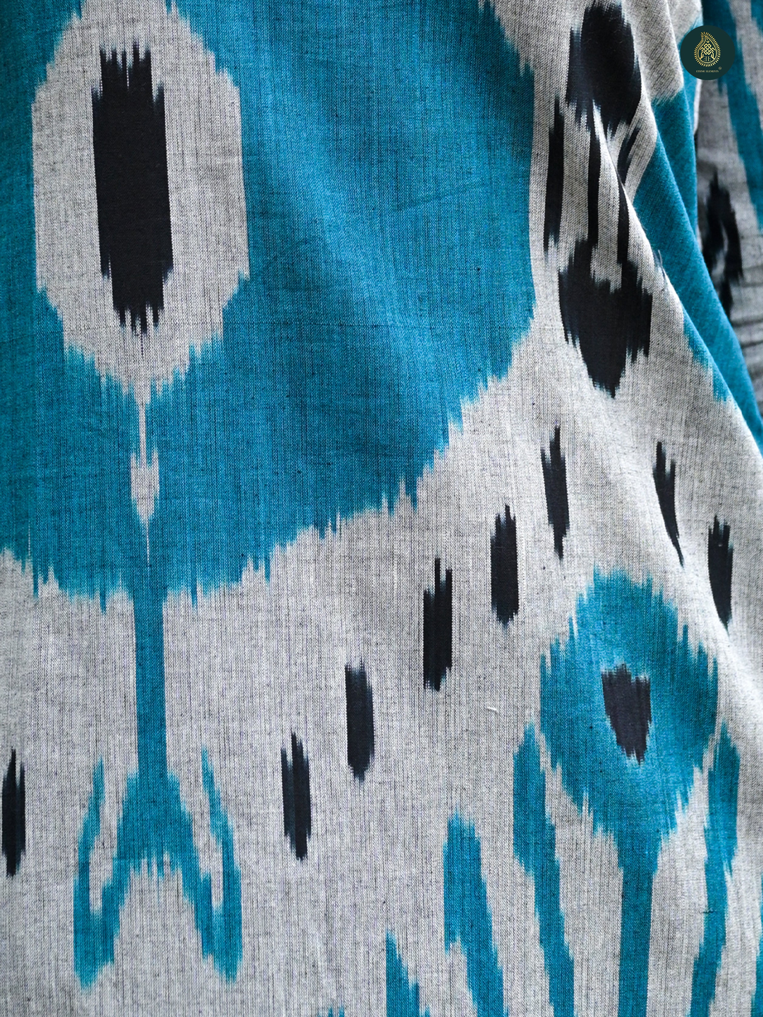 Stitched 2pc Uzbek Ikkat Suit Set - Blue