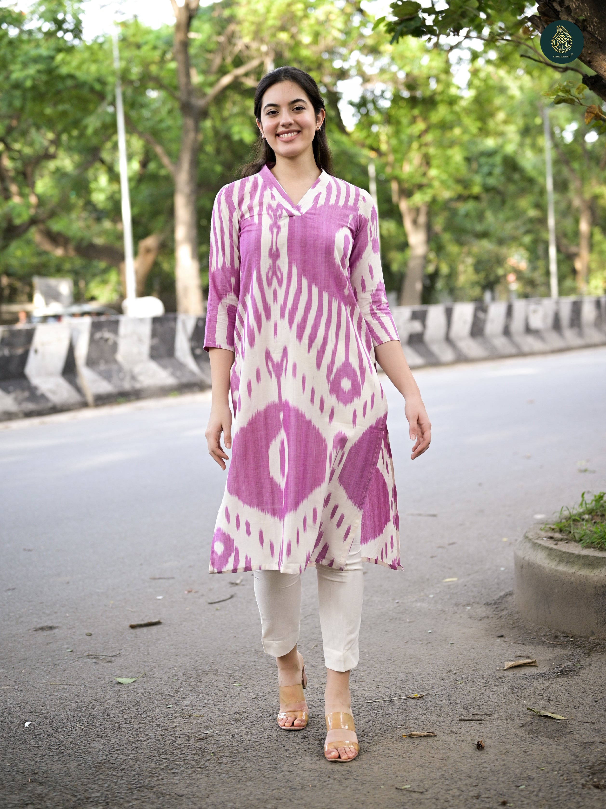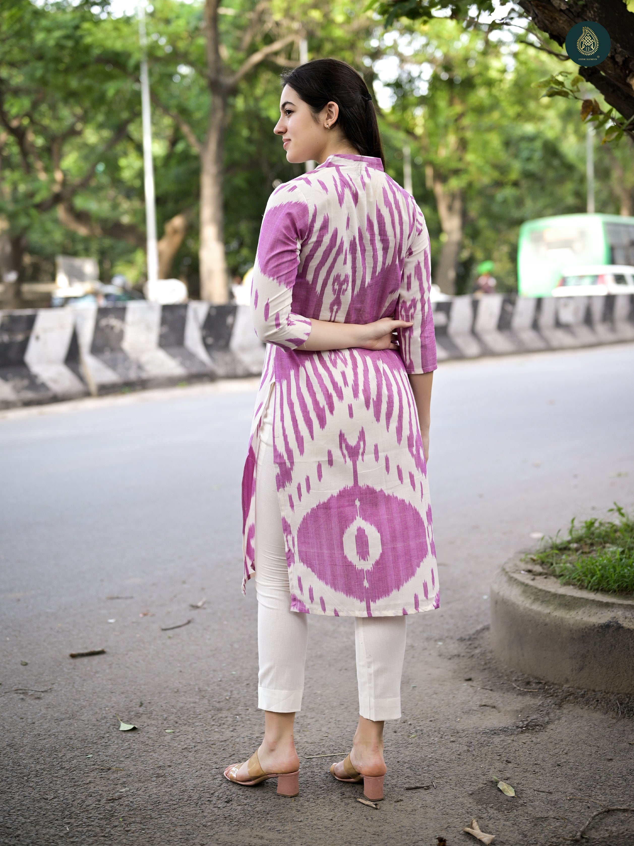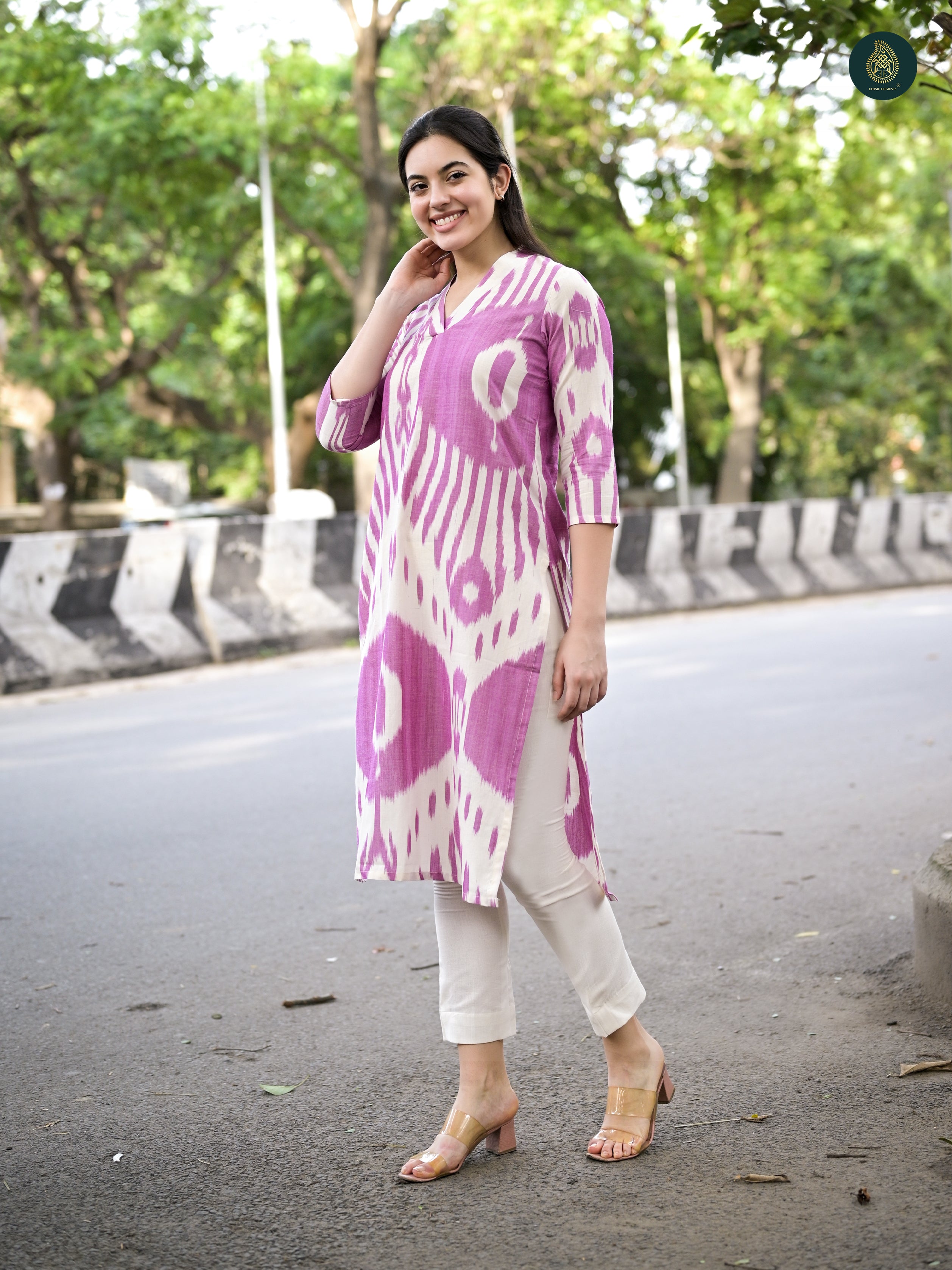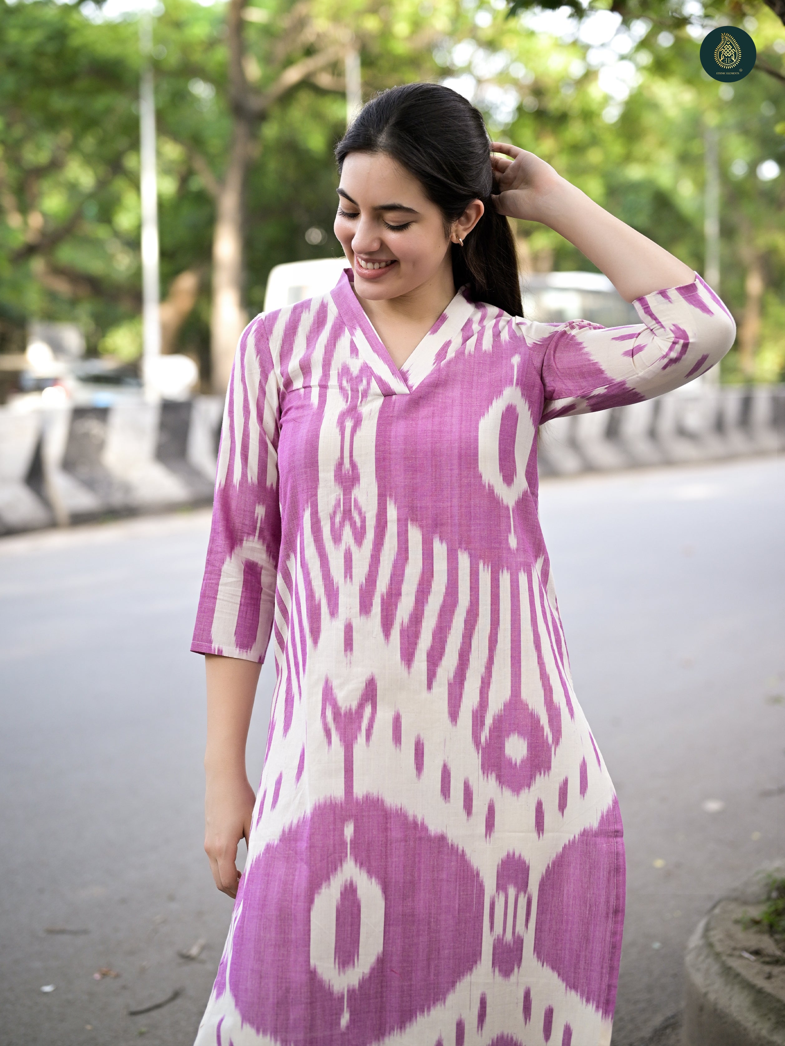 Stitched 2pc Uzbek Ikkat Suit Set - Mauv Pink