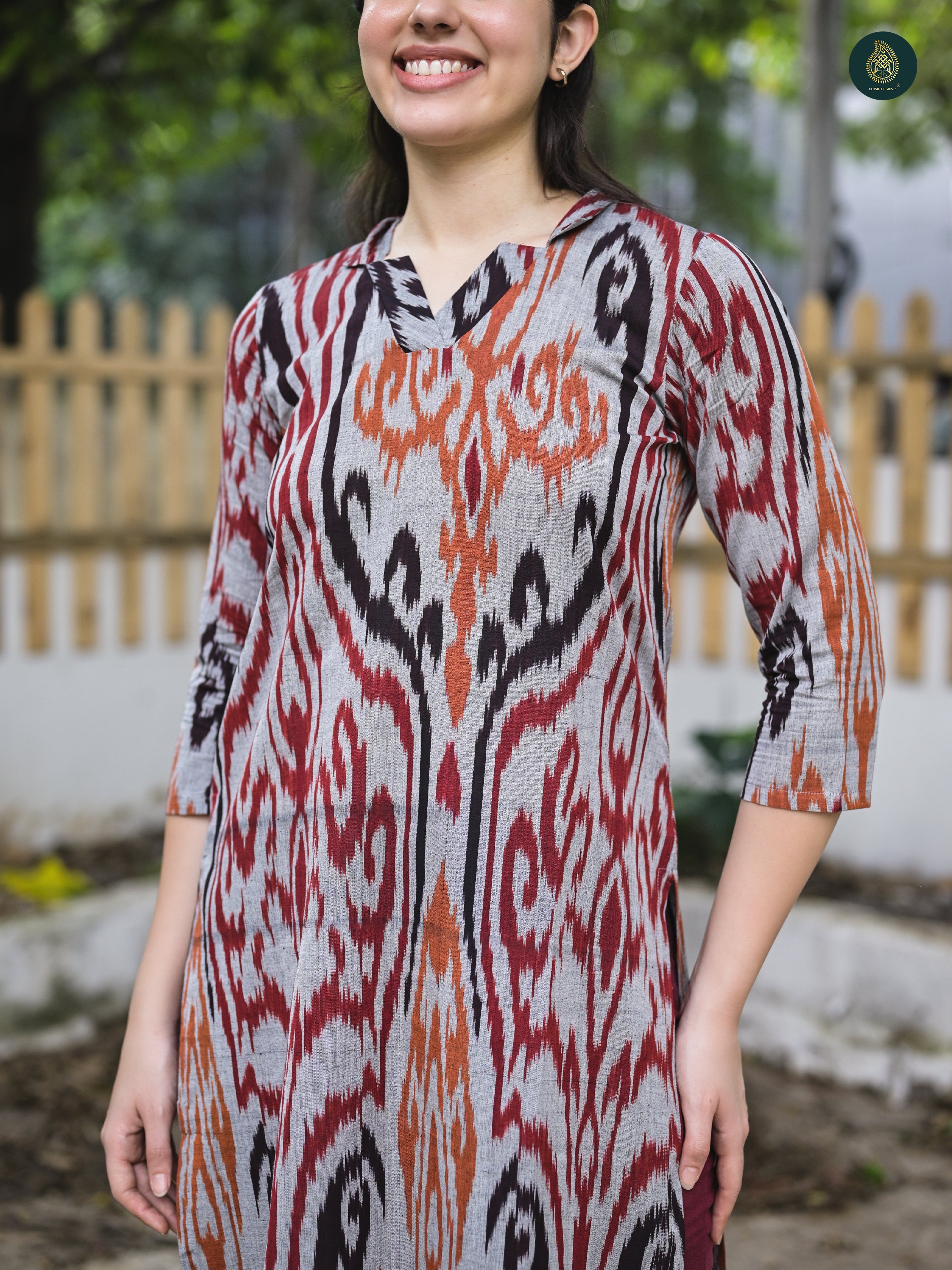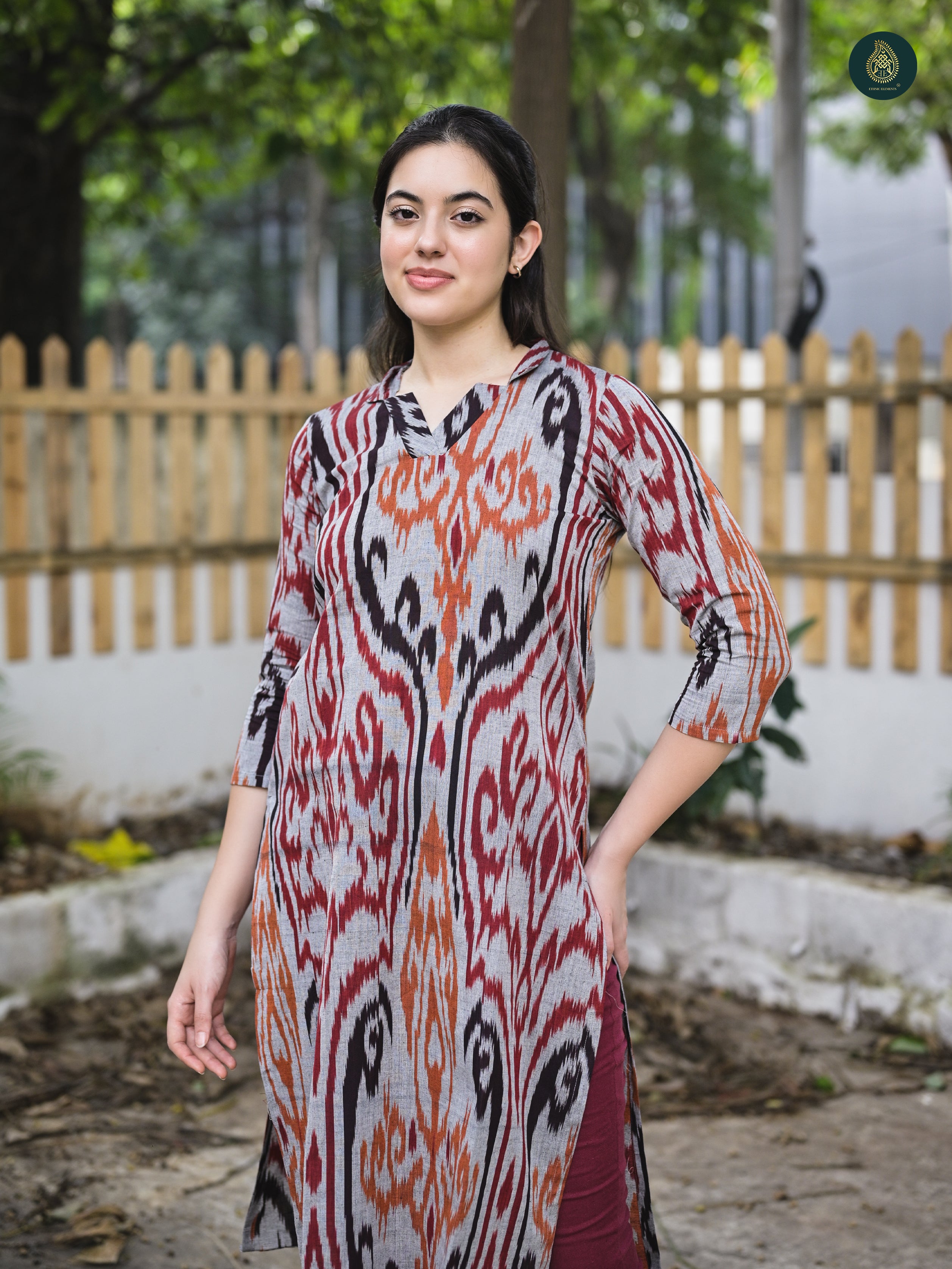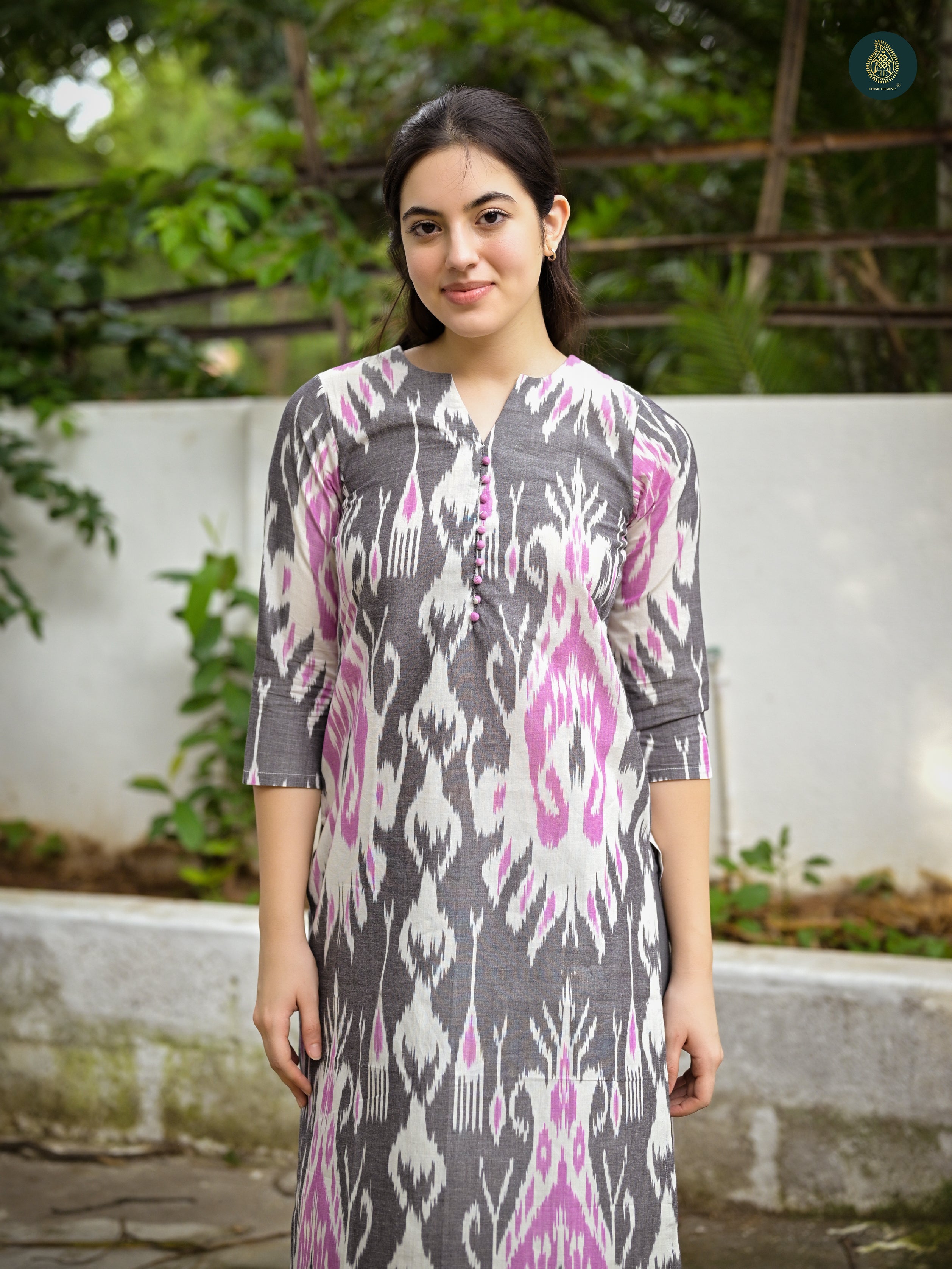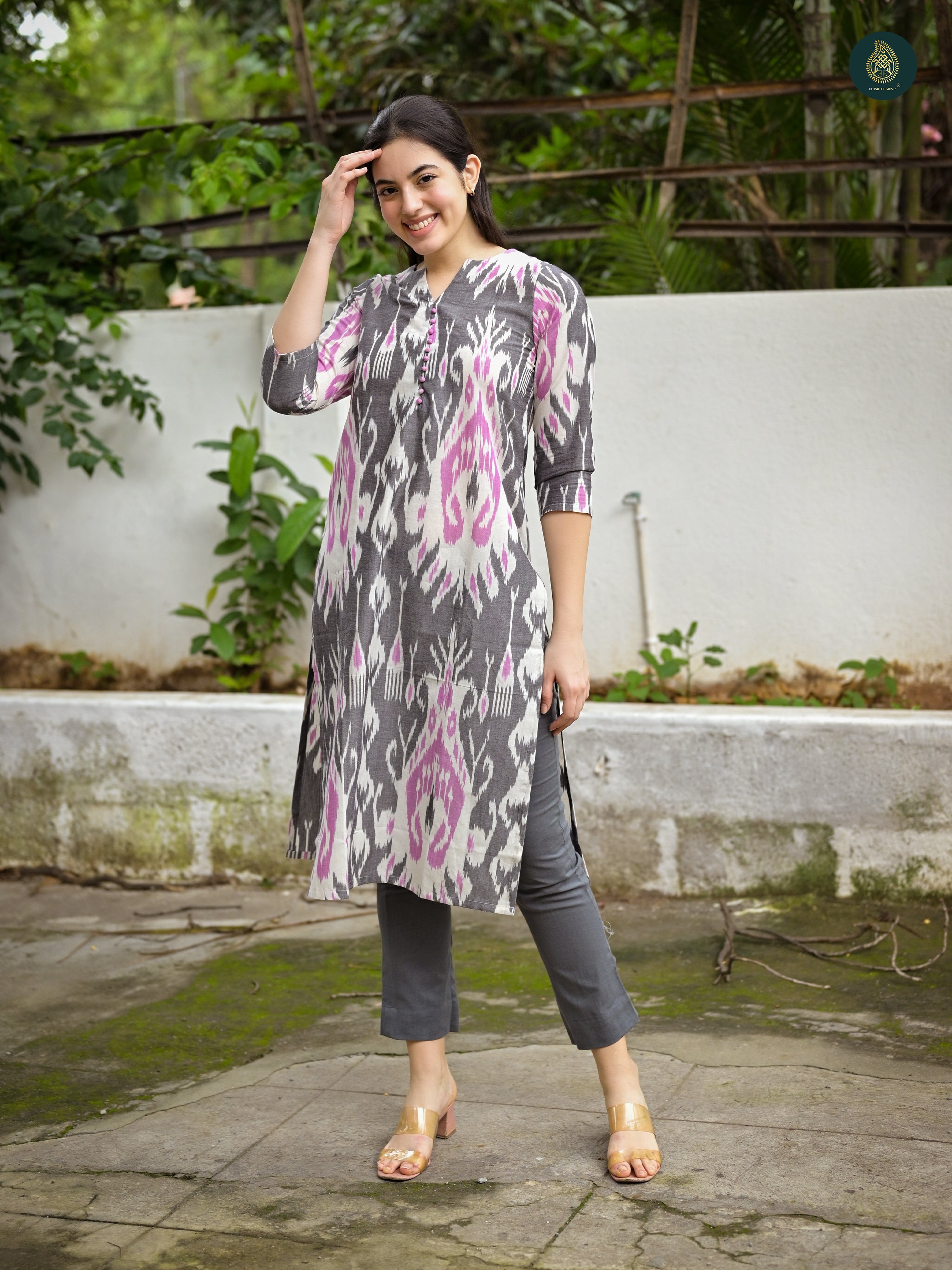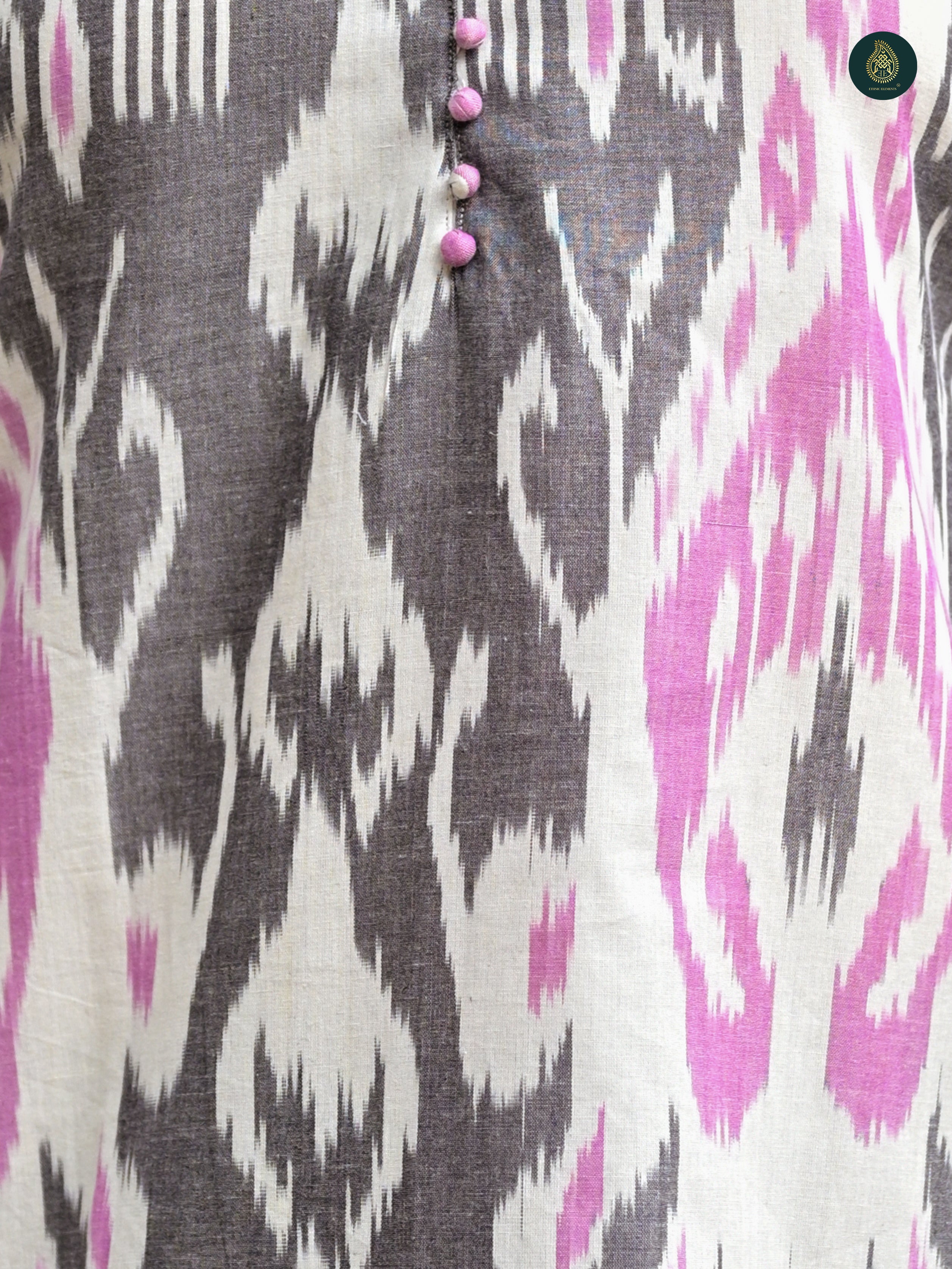 Stitched 2pc Uzbek Ikkat Suit Set - Polpy Grey Kurta