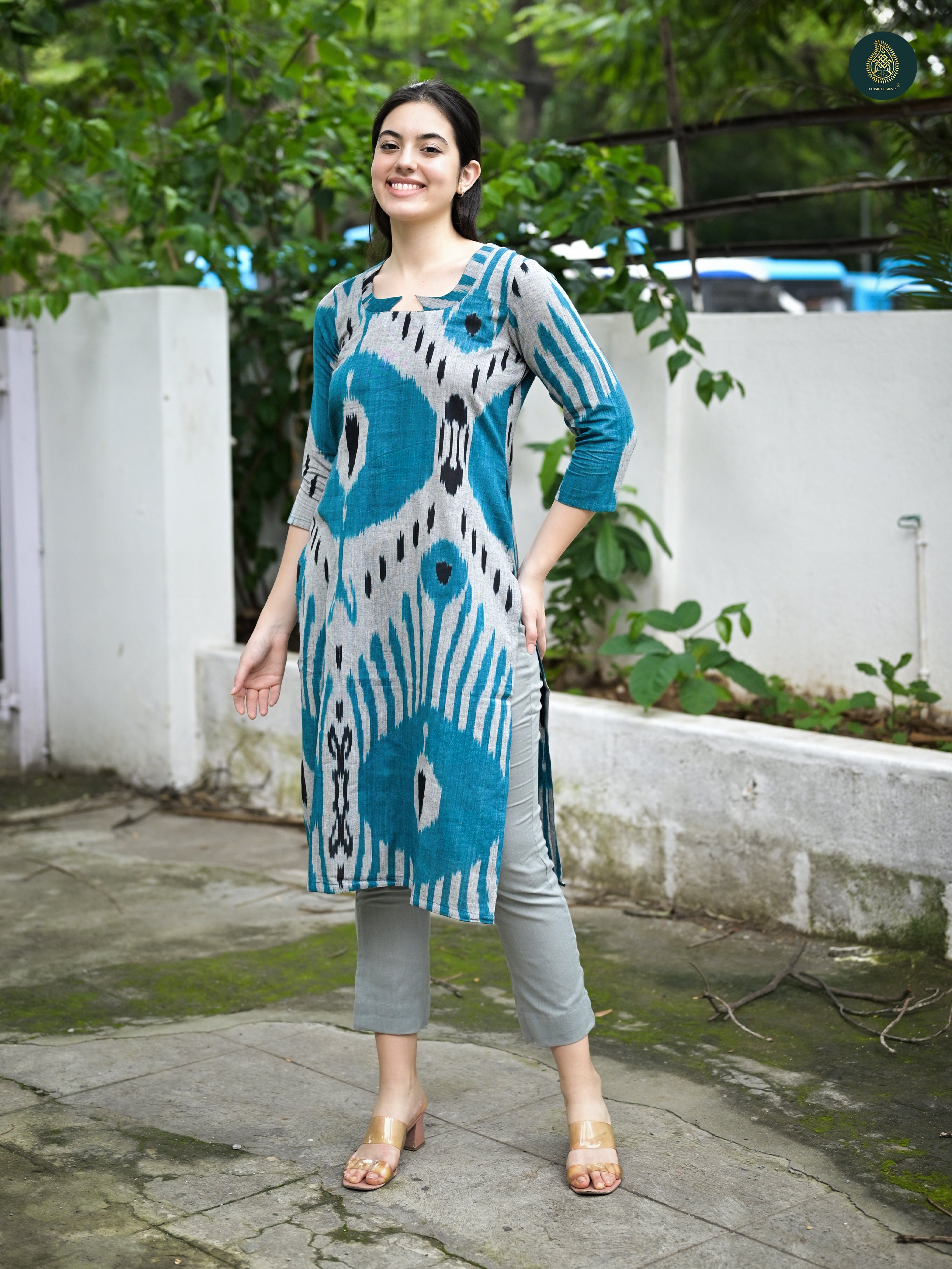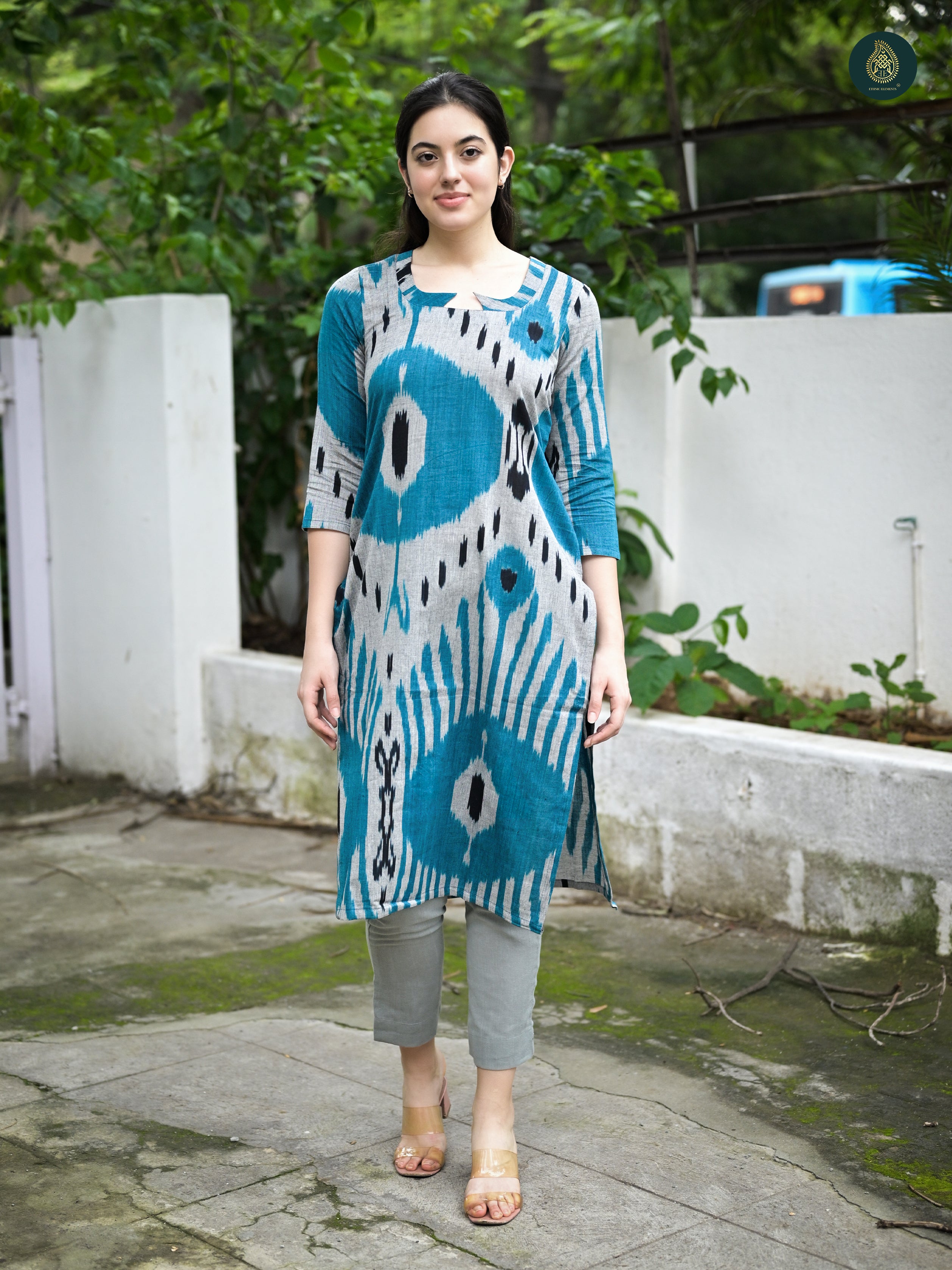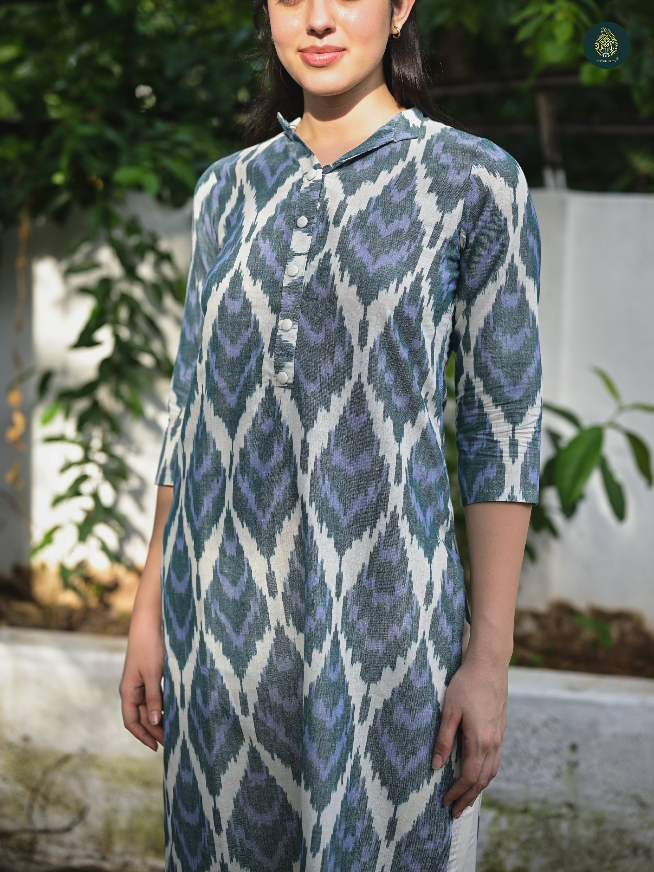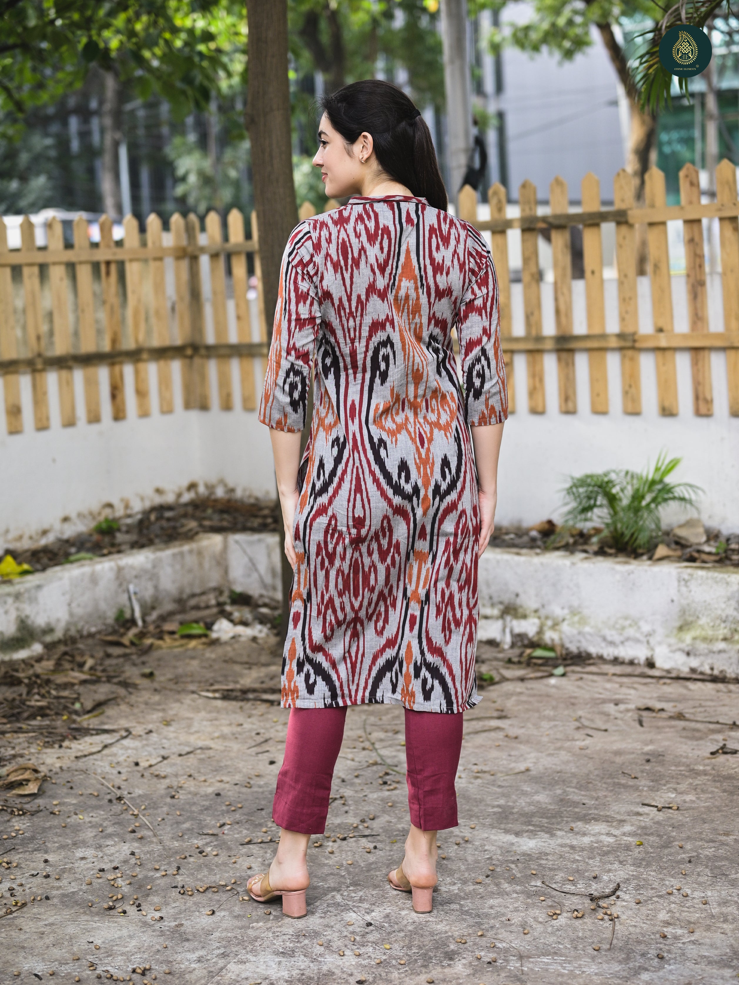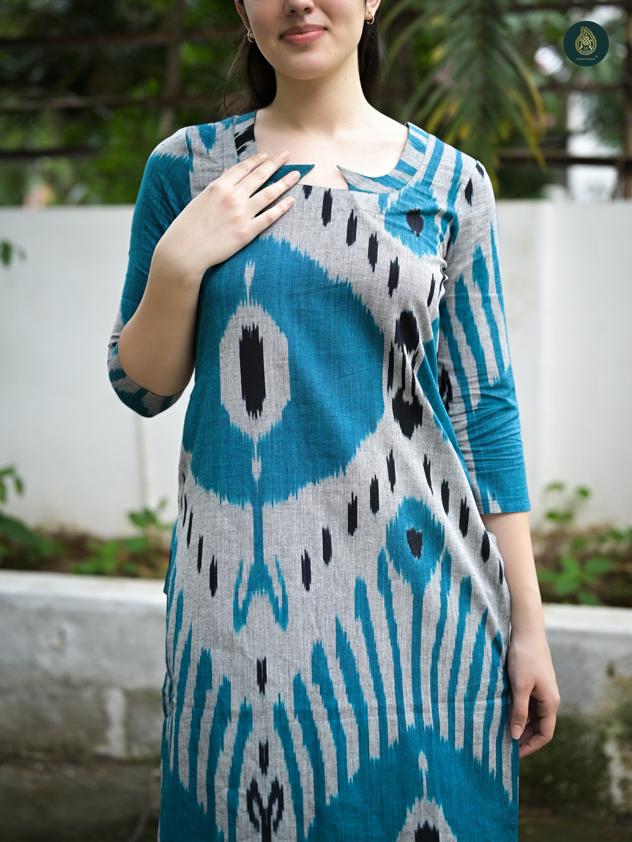 Stitched 2pc Uzbek Ikkat Suit Set - Polpy Grey Kurta