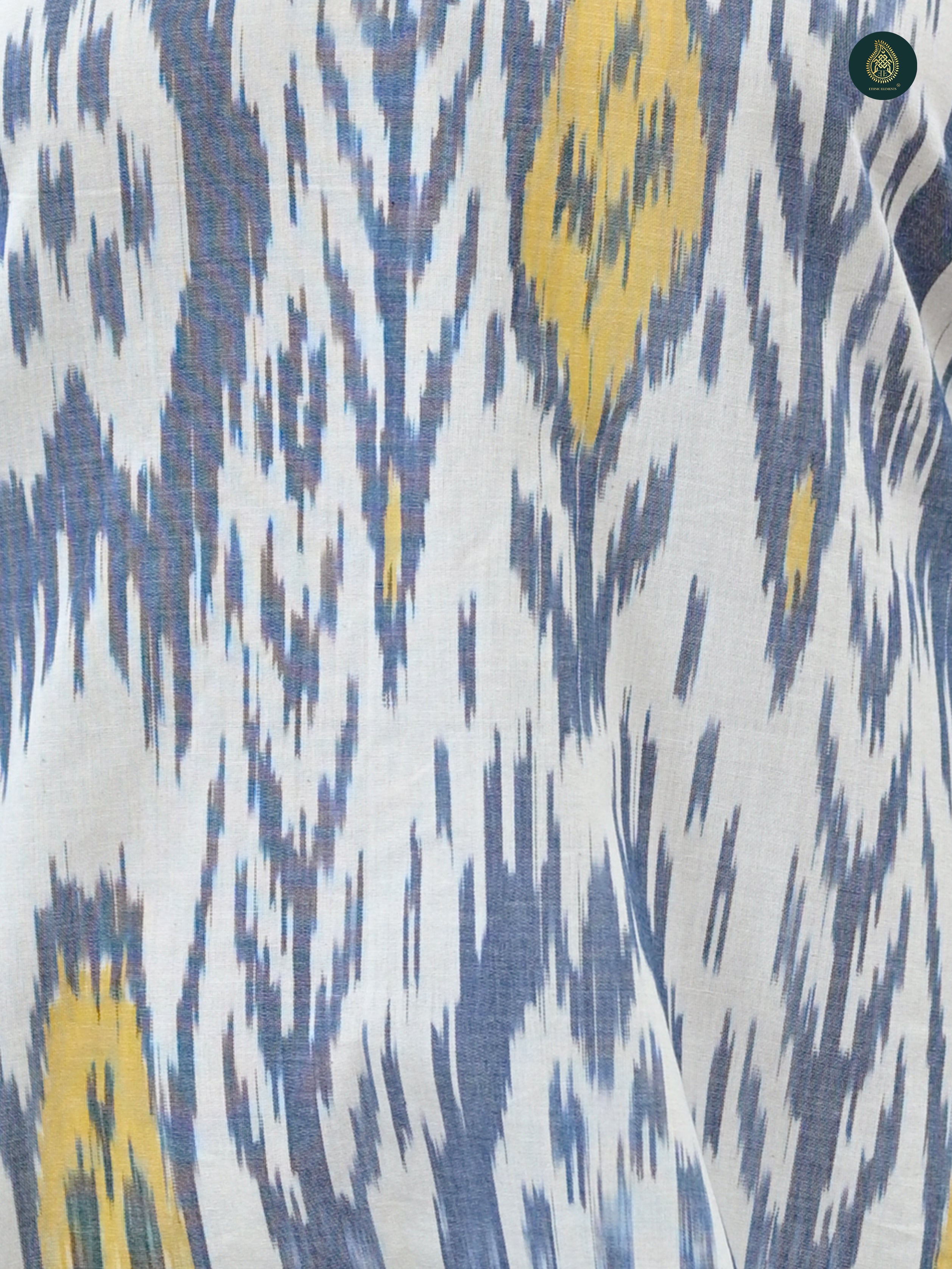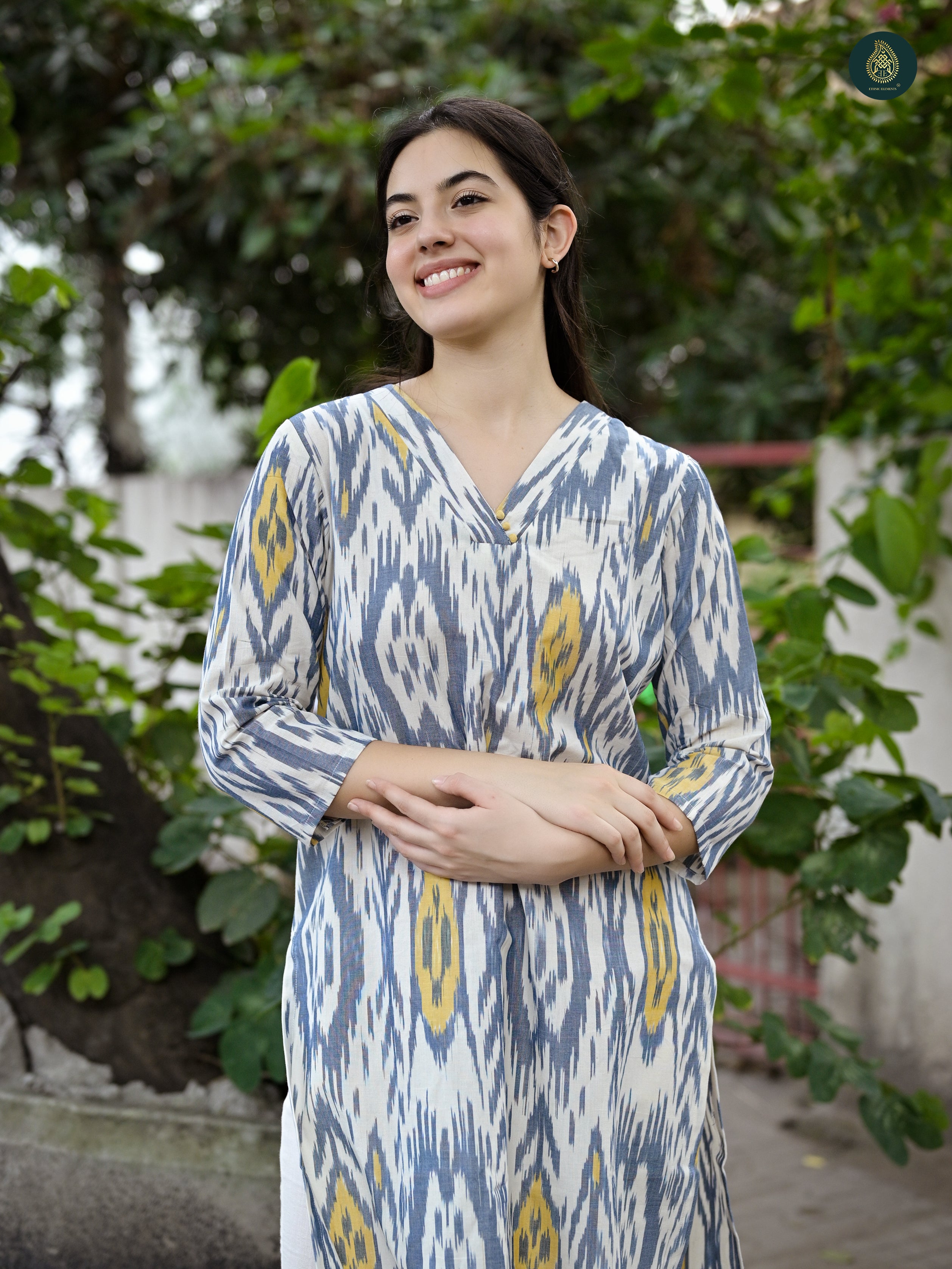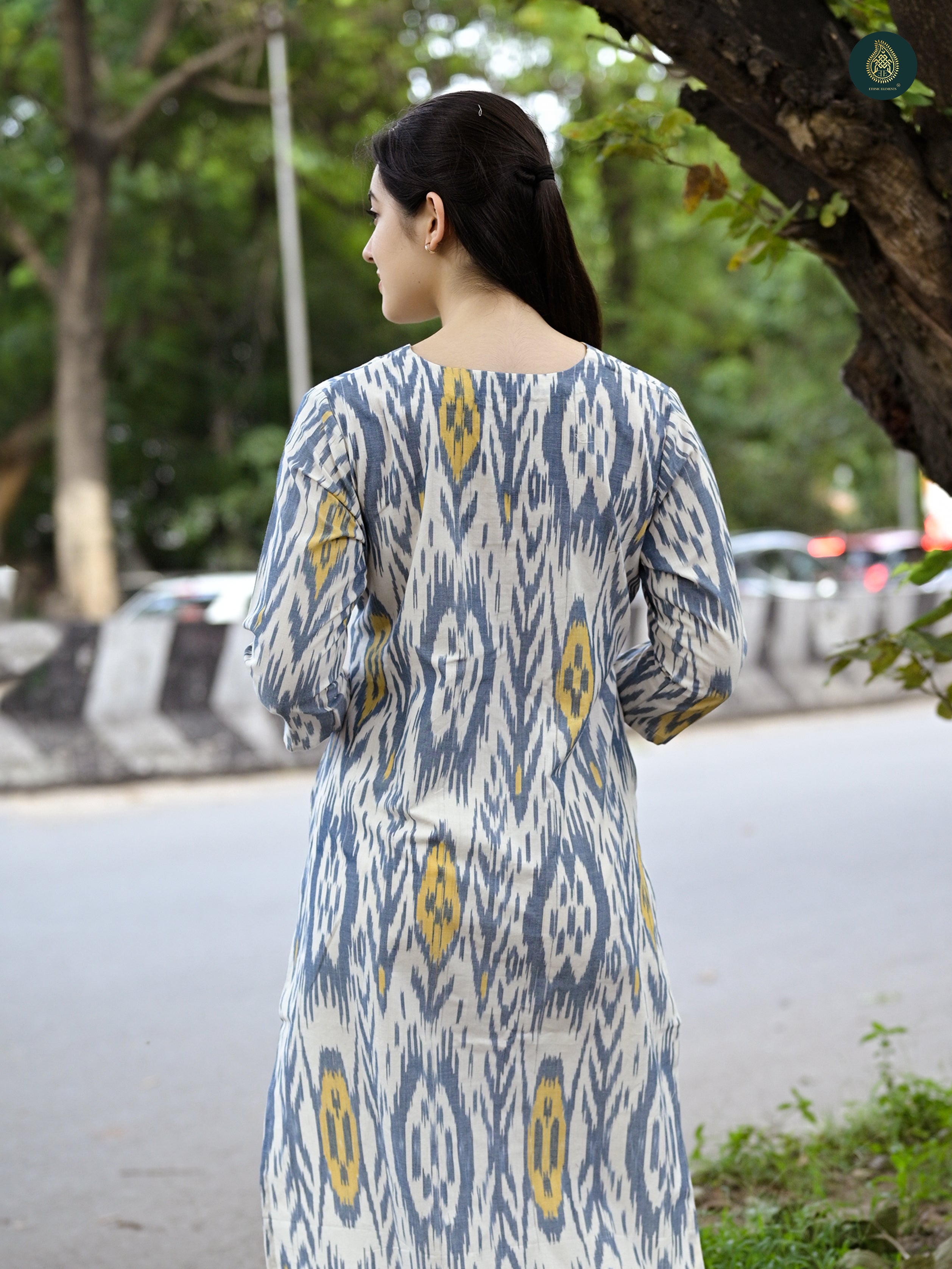Stitched 2pc Uzbek Ikkat Suit Set - Creamy Grey