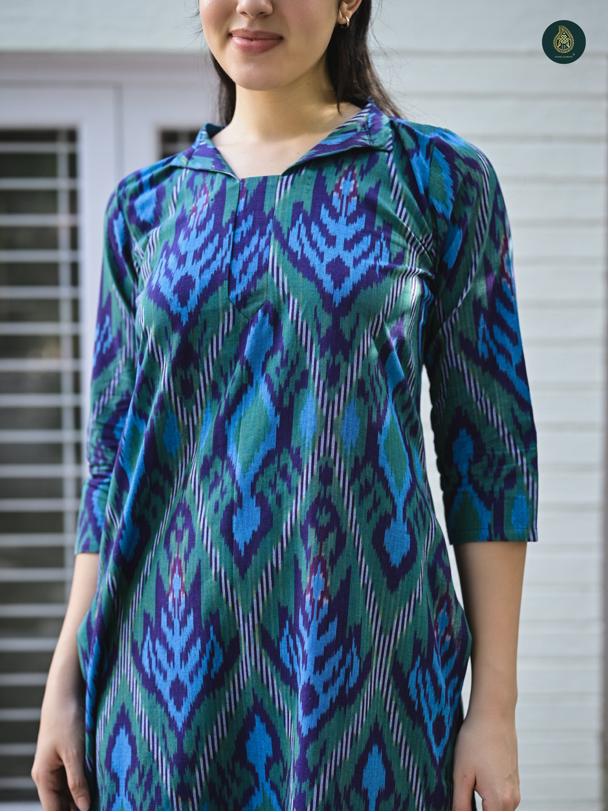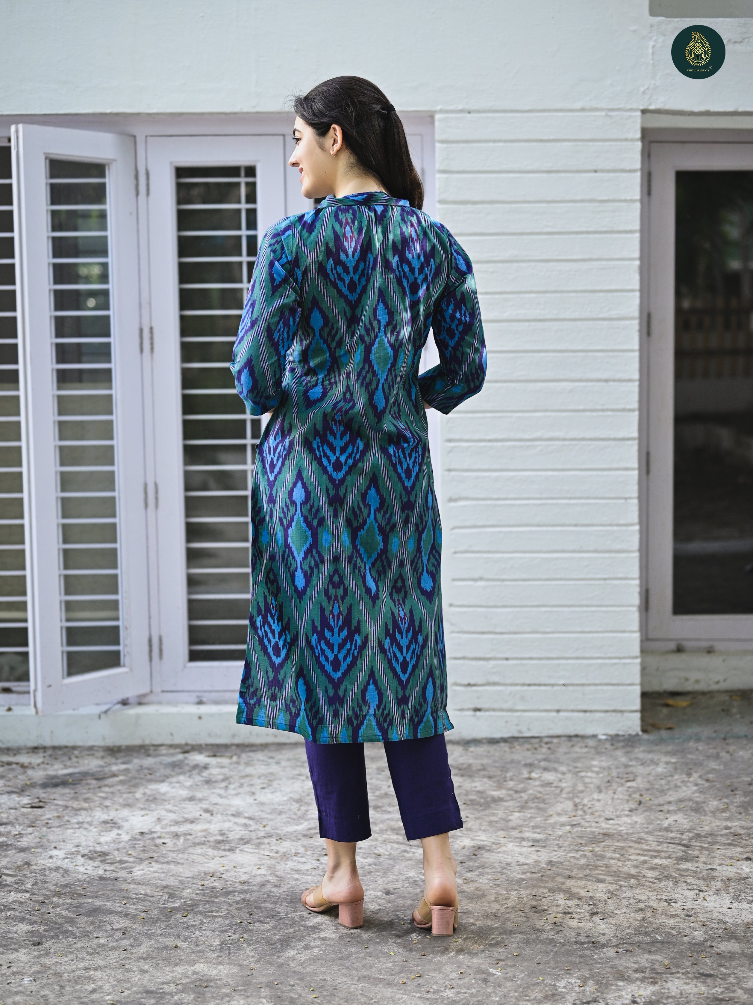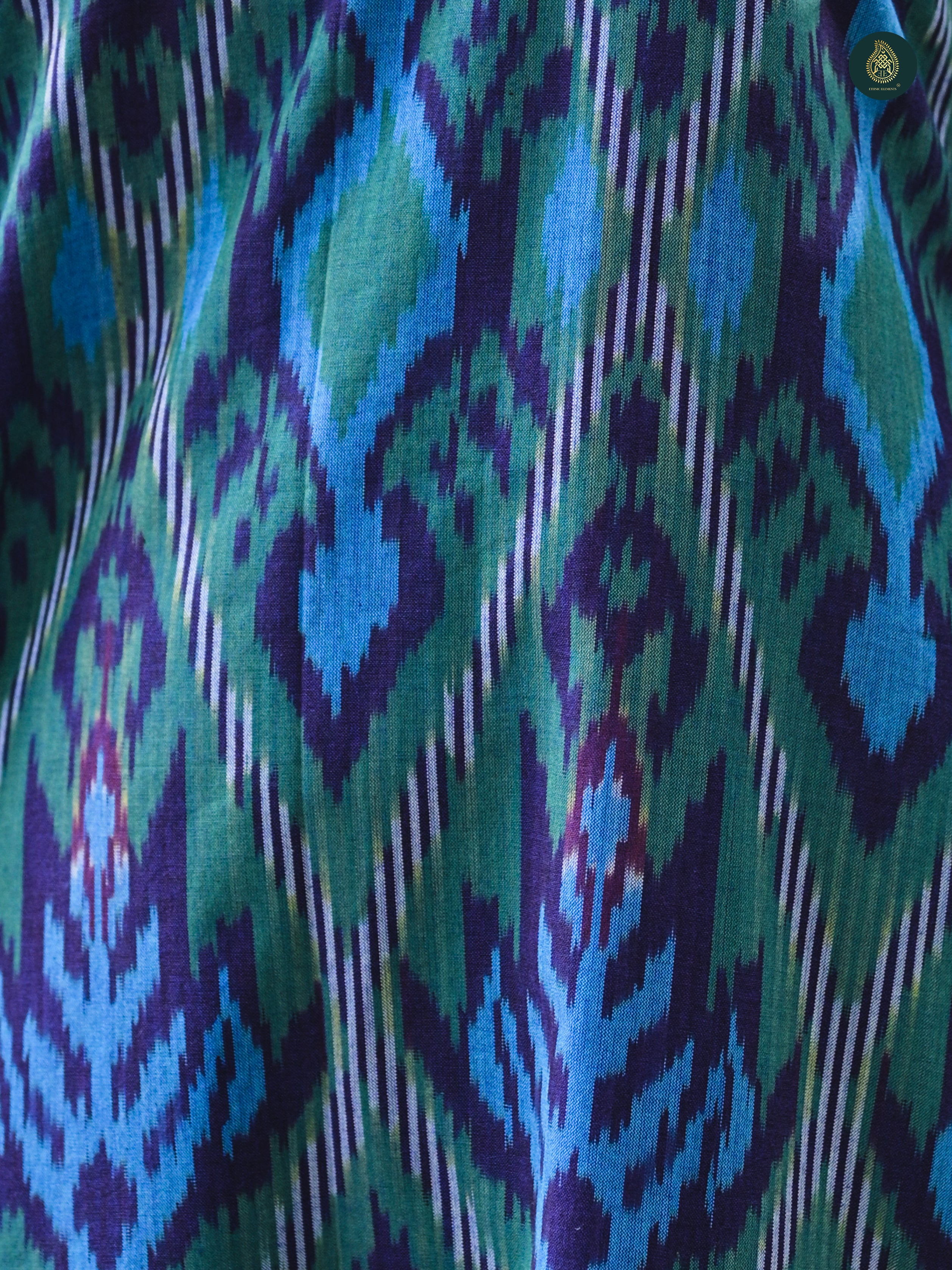 Stitched 2pc Uzbek Ikkat Suit Set - Sea Green