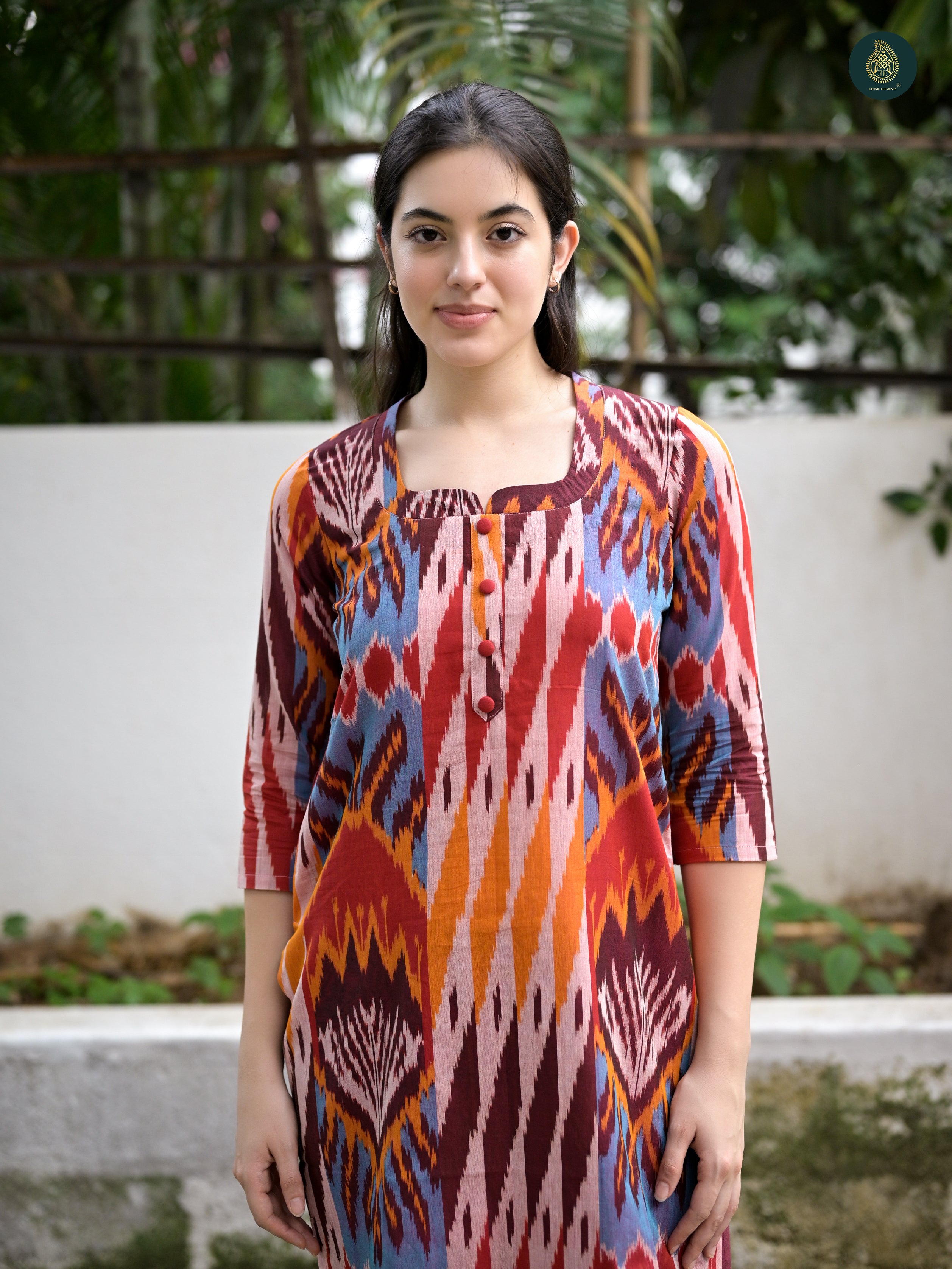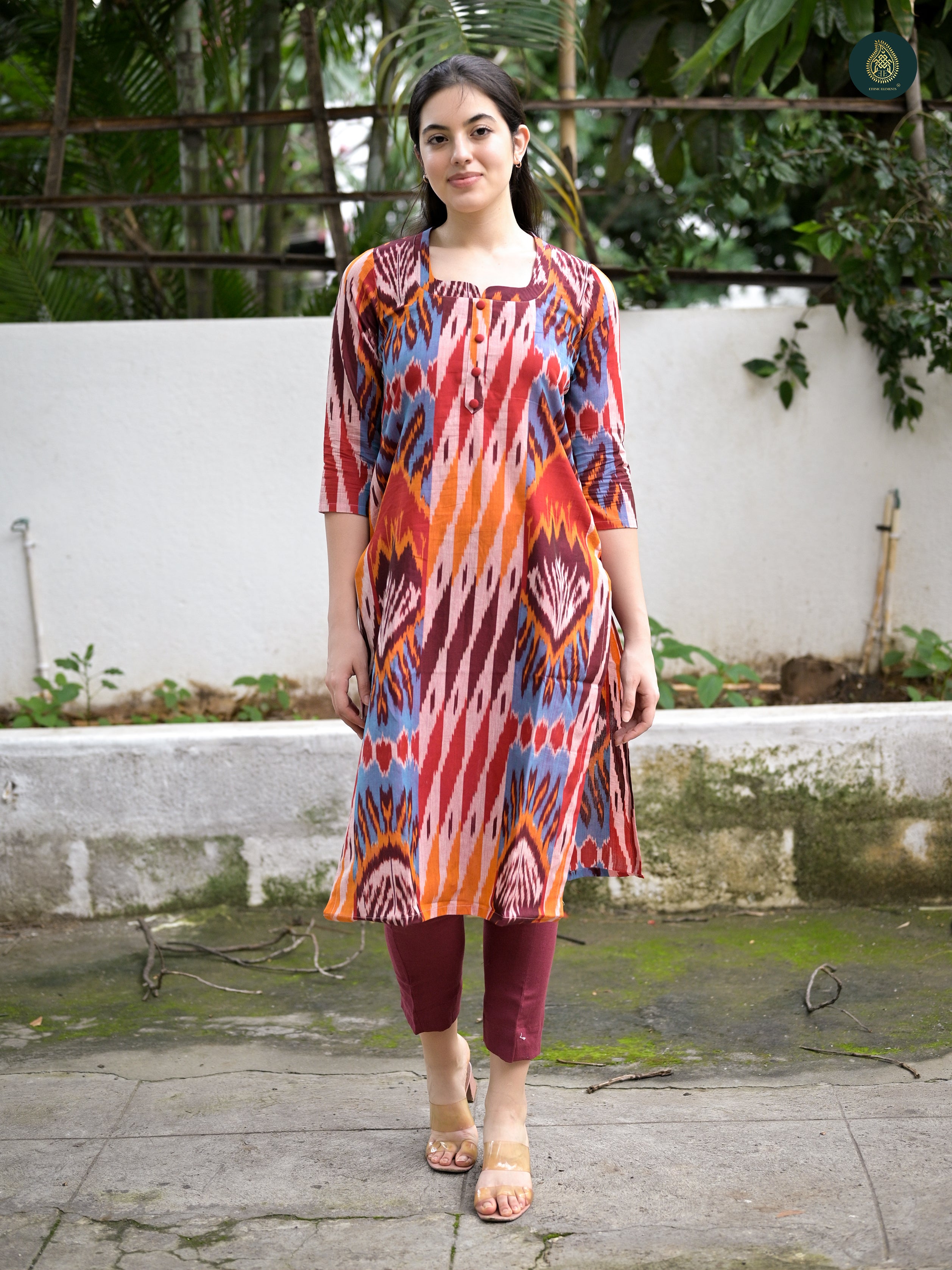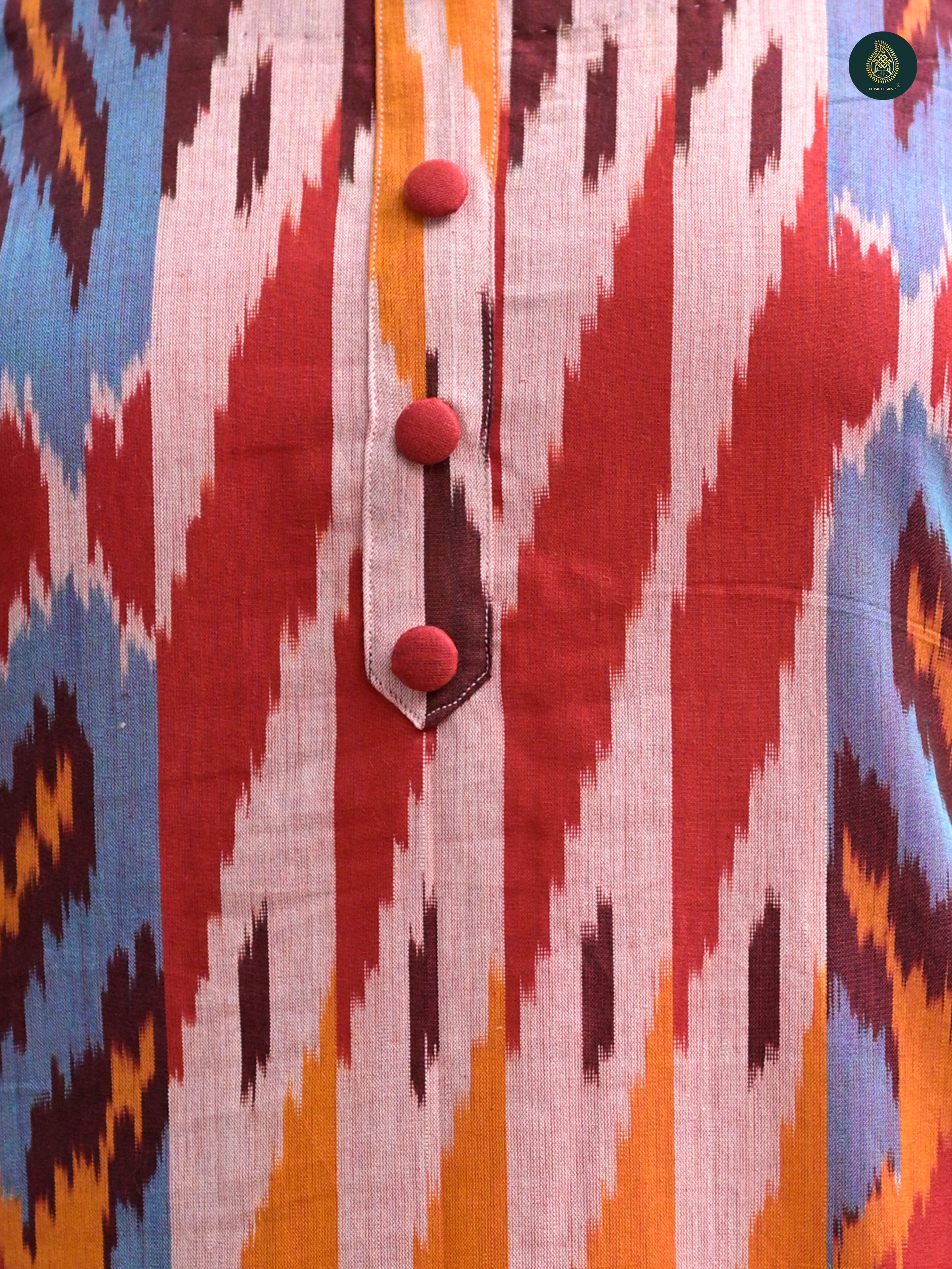 Stitched 2pc Uzbek Ikkat Suit Set - Red