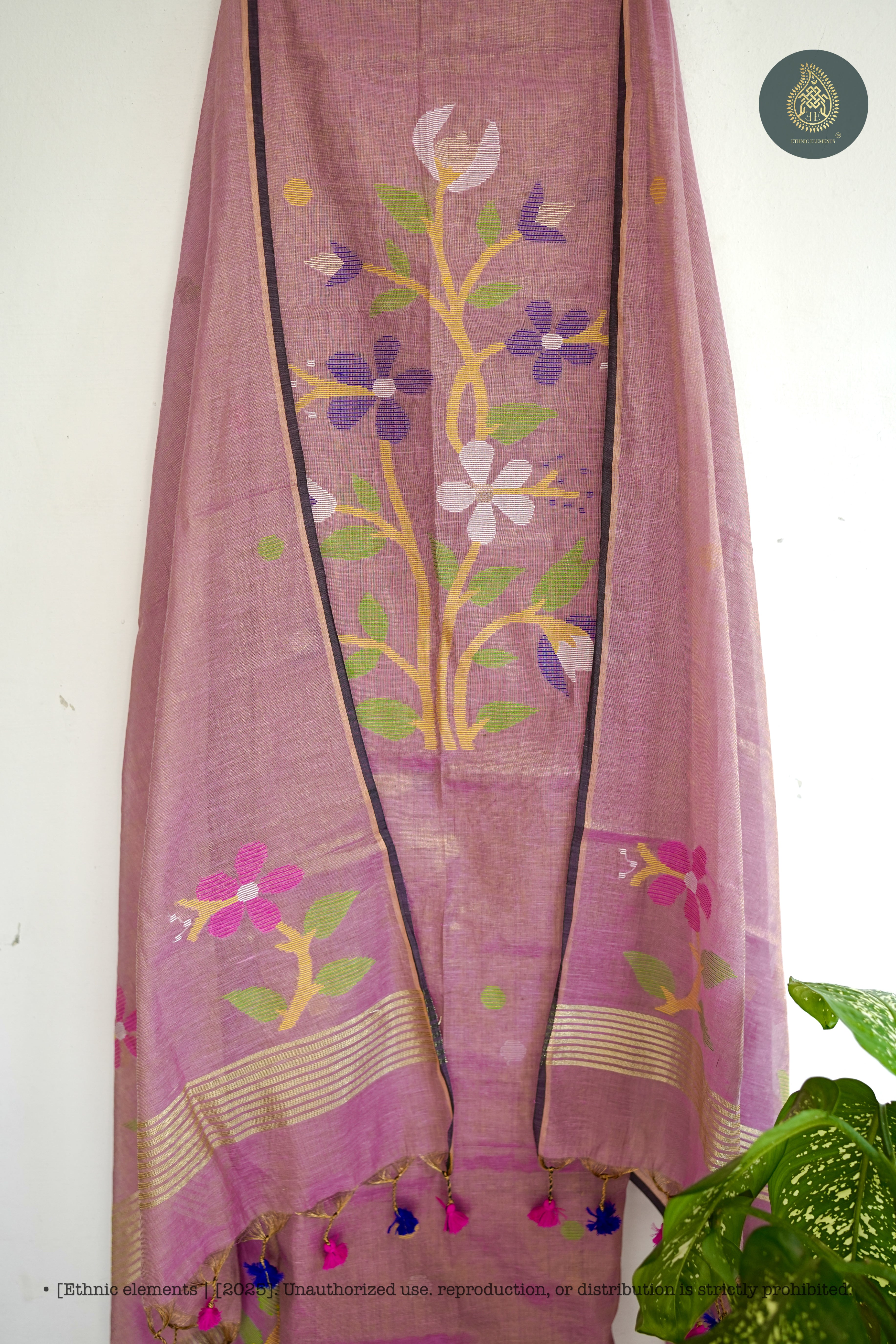 Tissue Jamdani Suit Set – Pink Aura Weaves