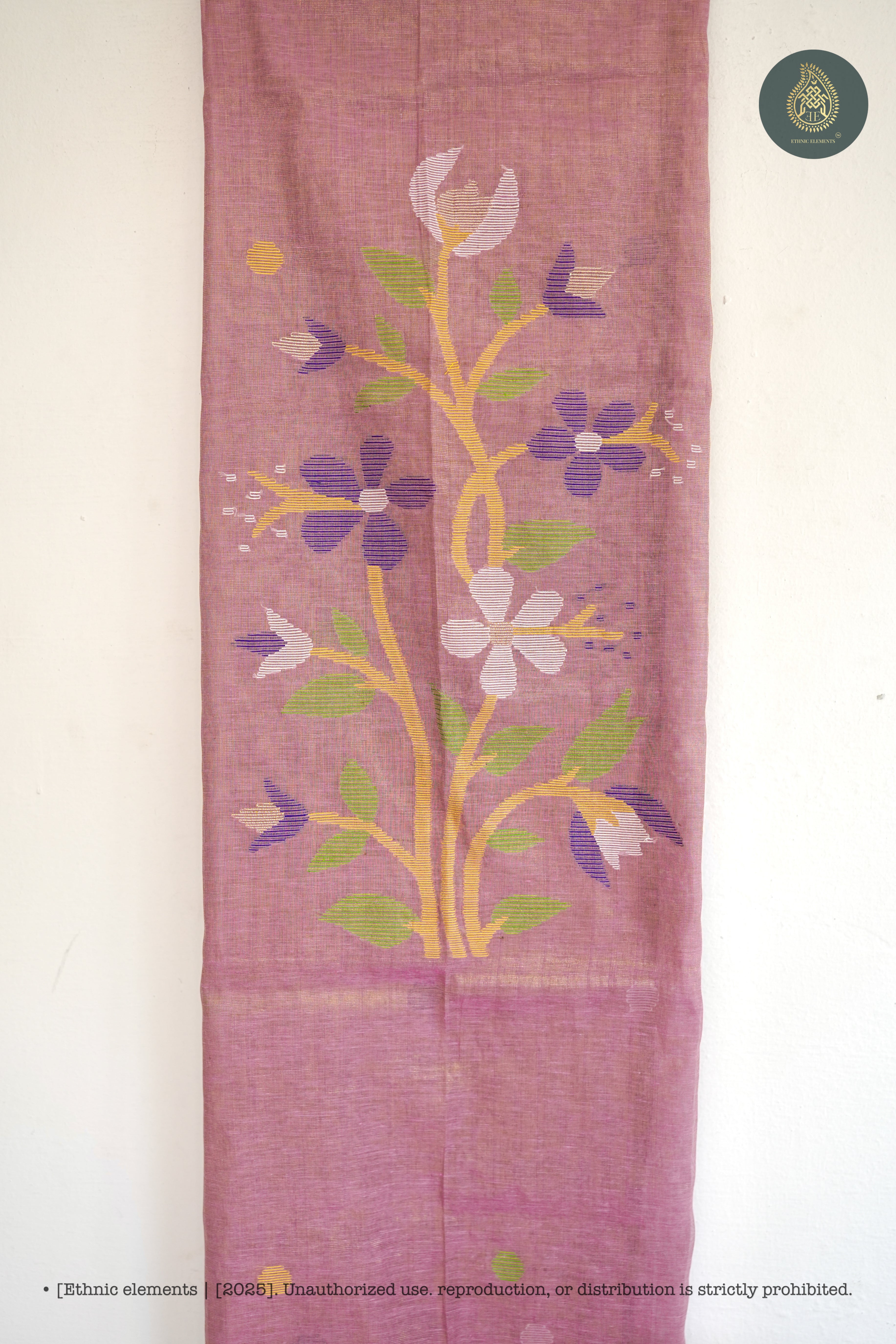 Jamdani Resham Muslin Silk Suit Set with Sequin Weaving – Midnight Amethyst