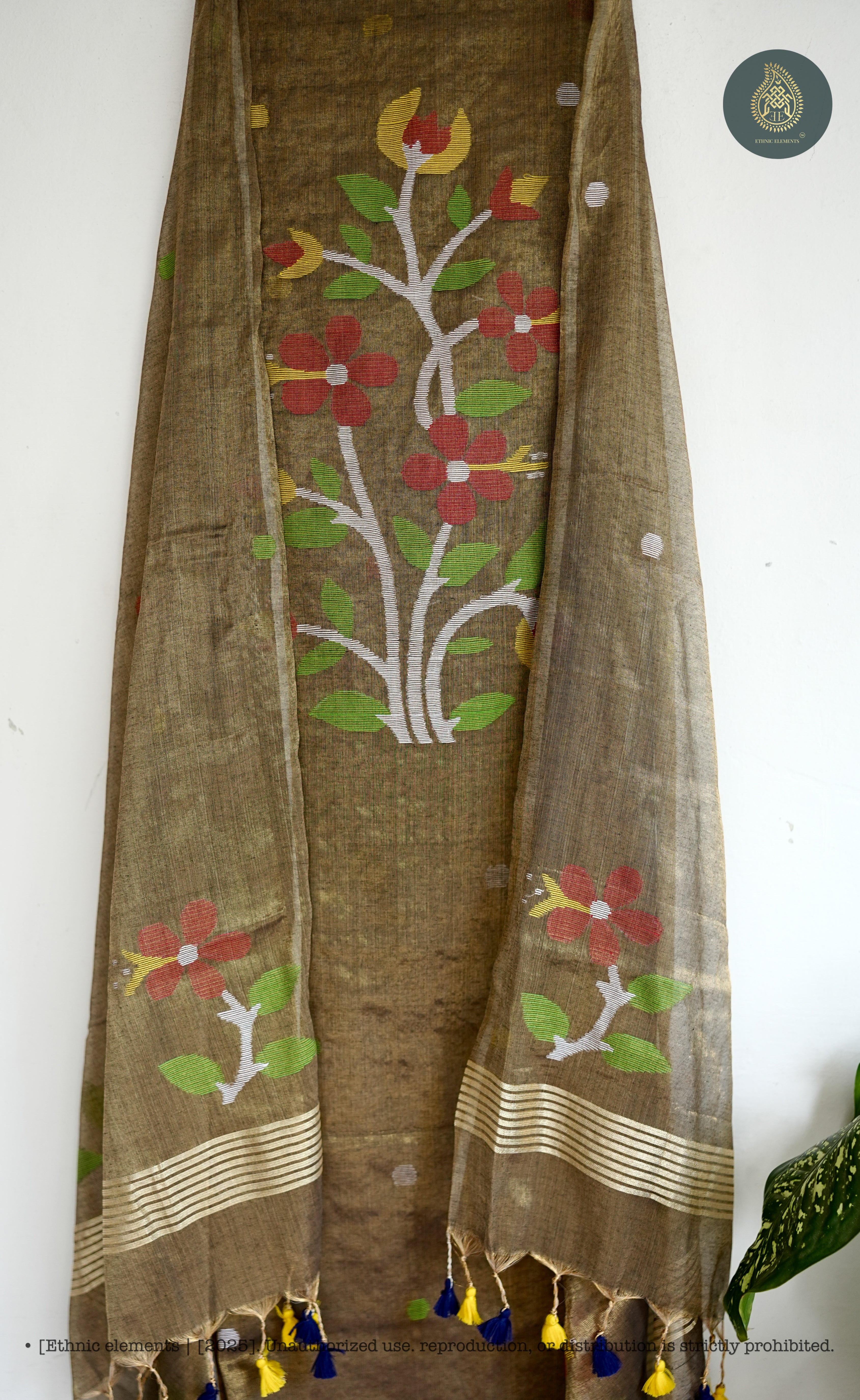 Jamdani Resham Muslin Silk Suit Set with Sequin Weaving – Royal Flame