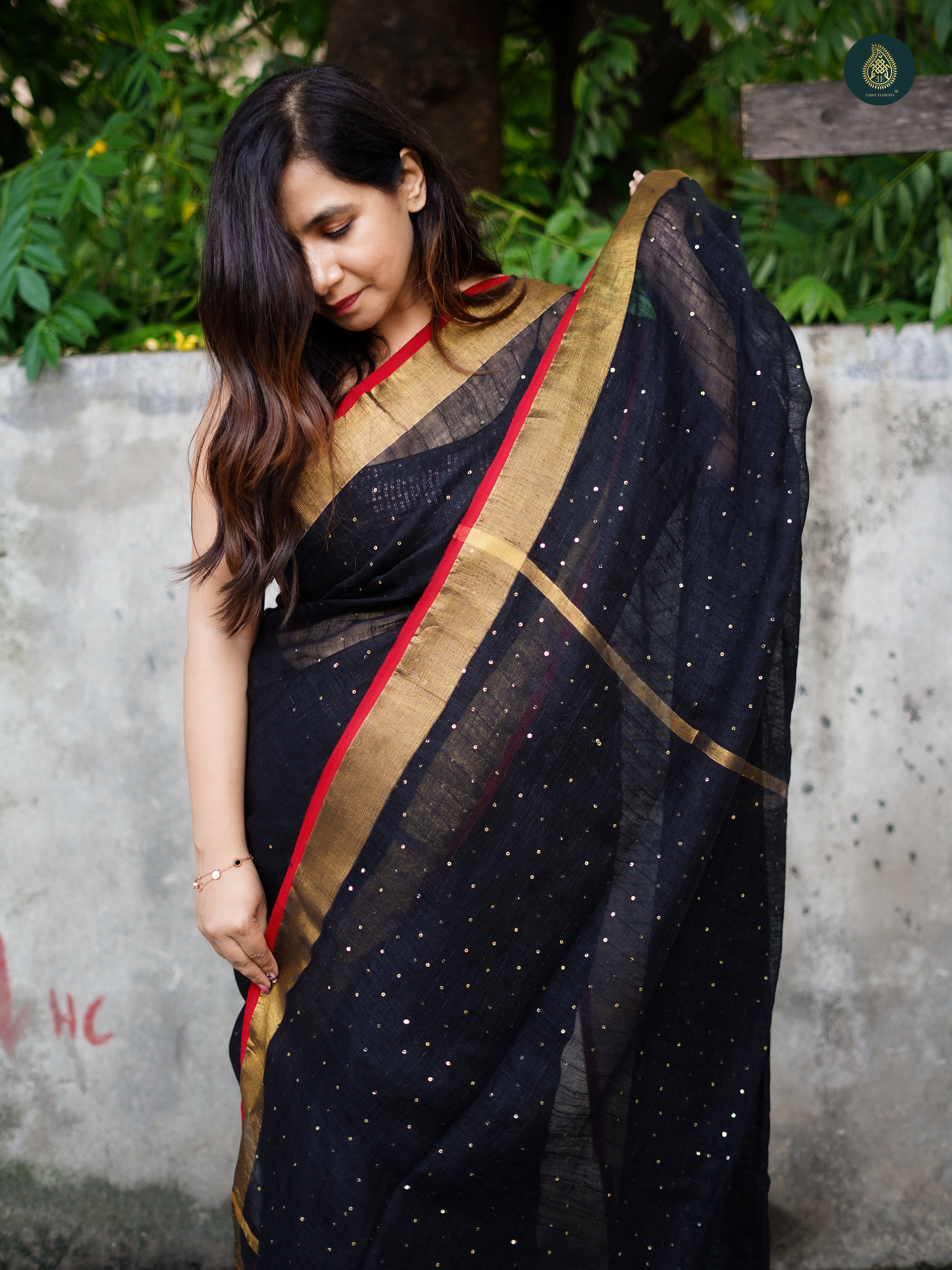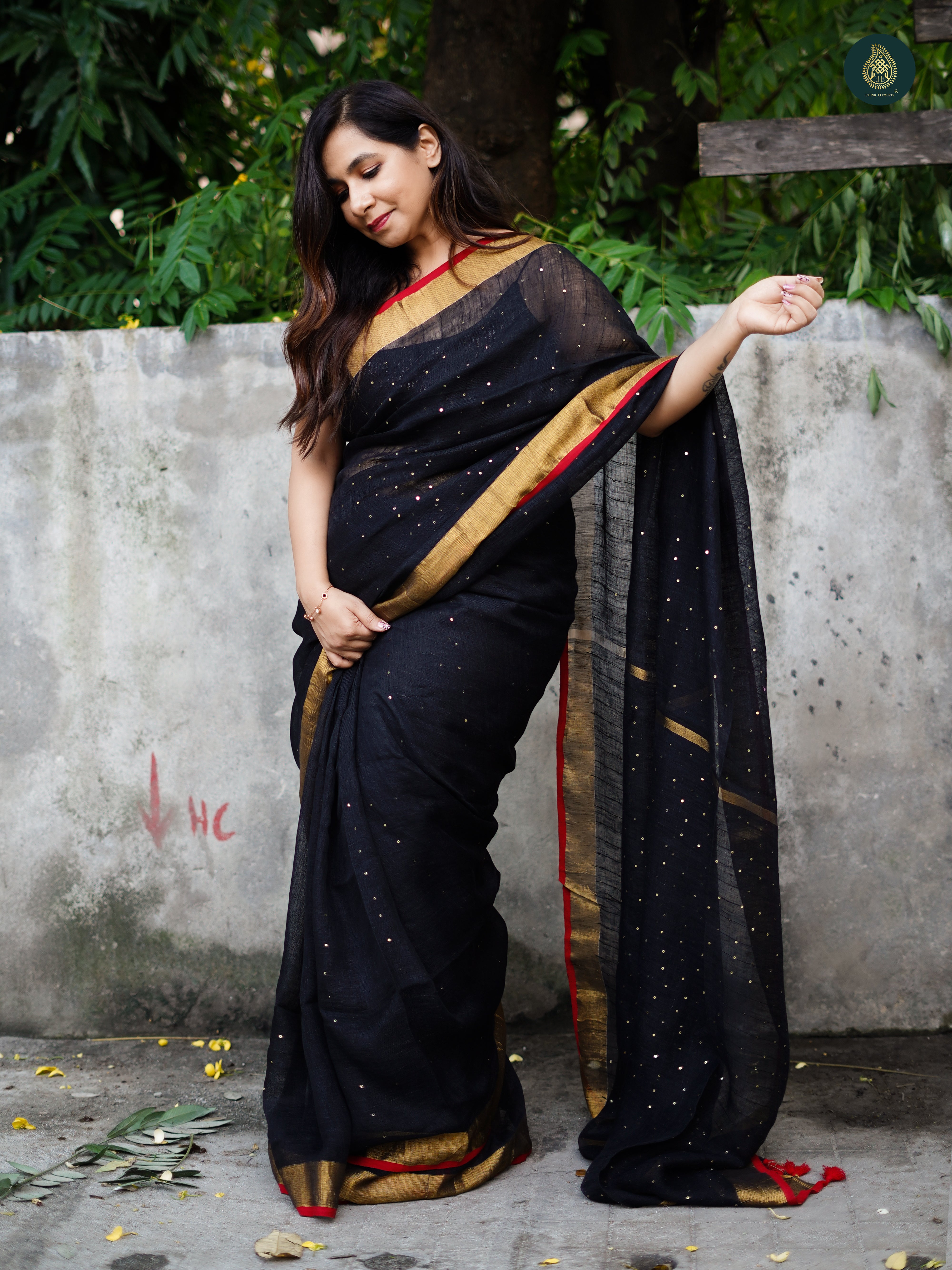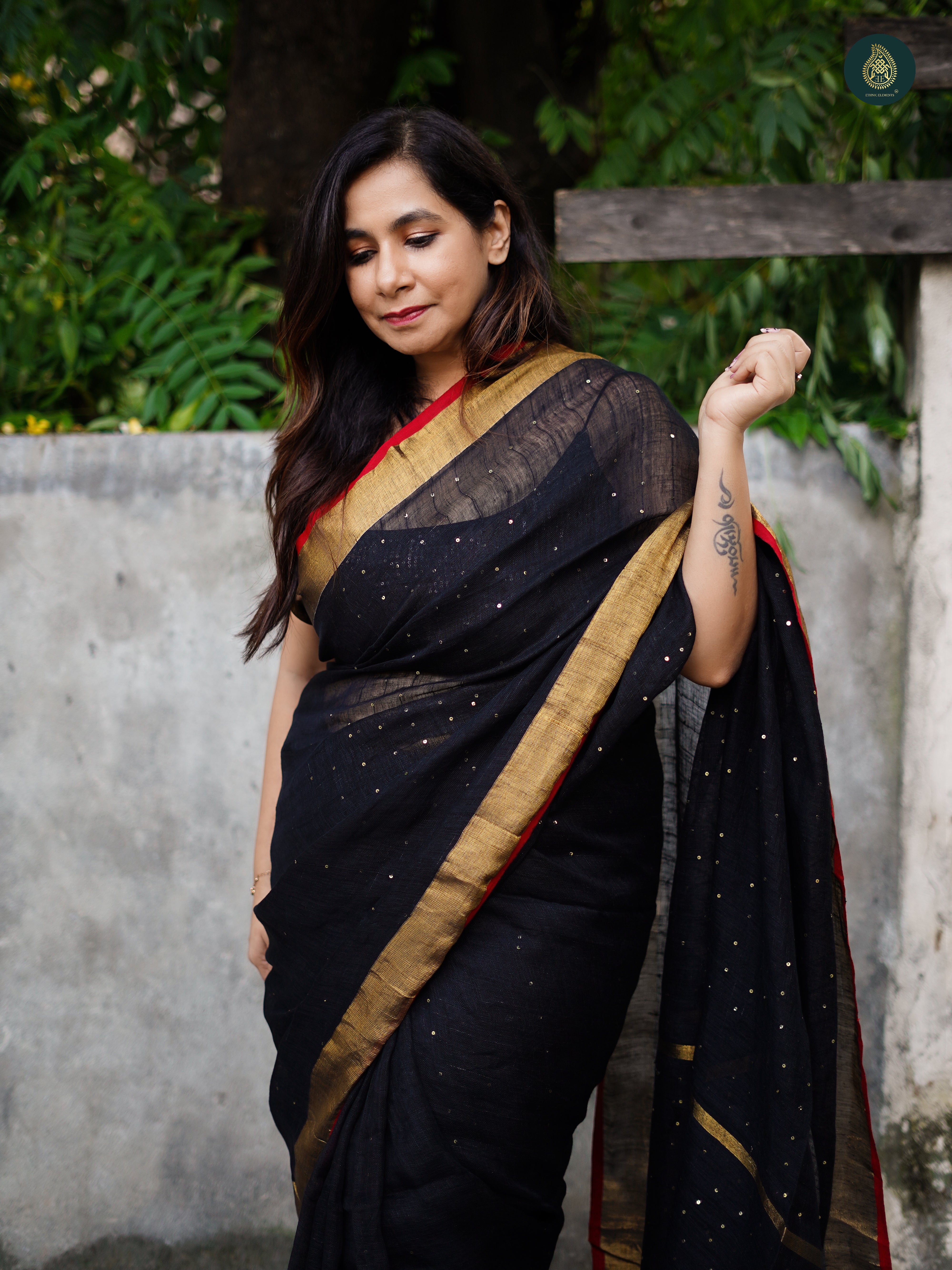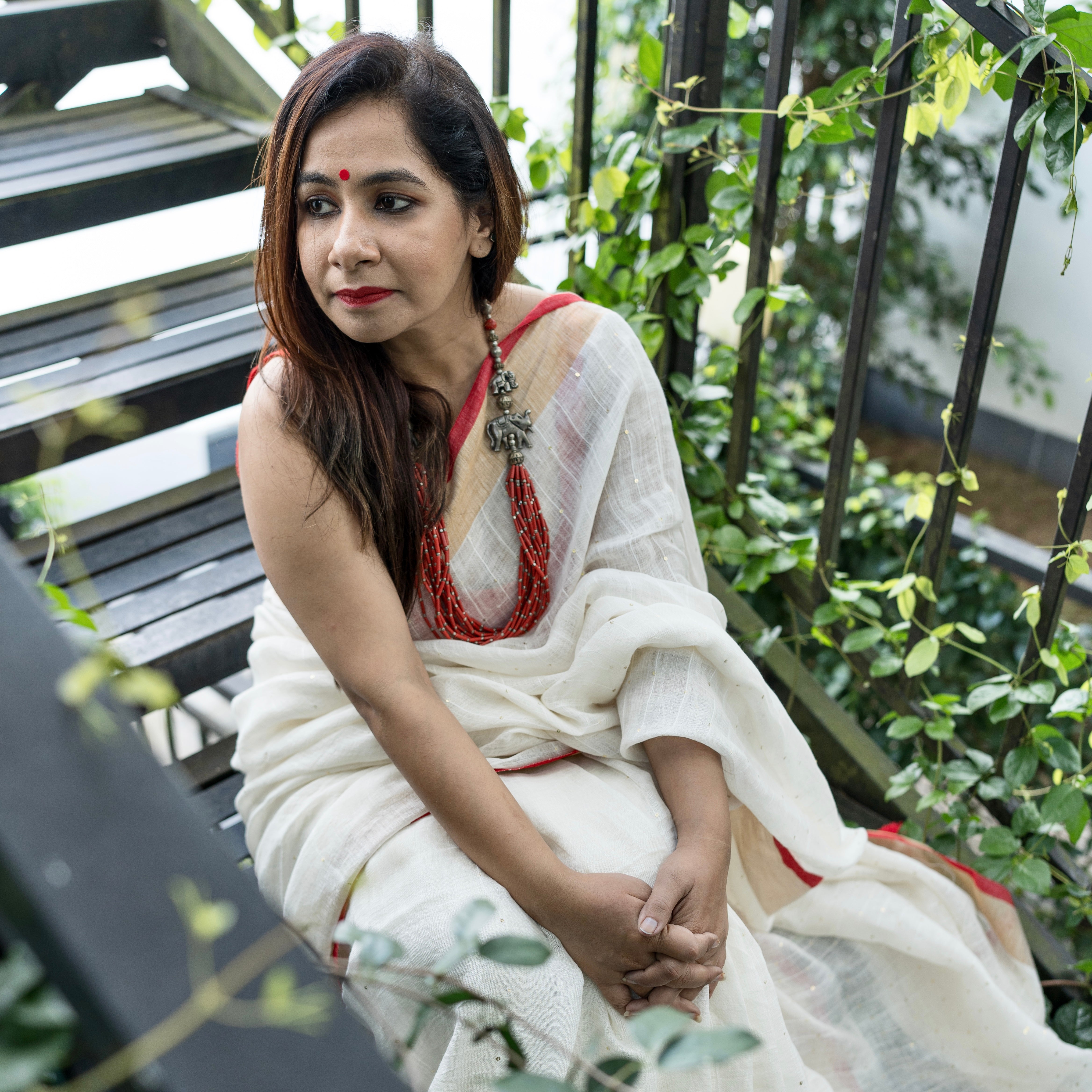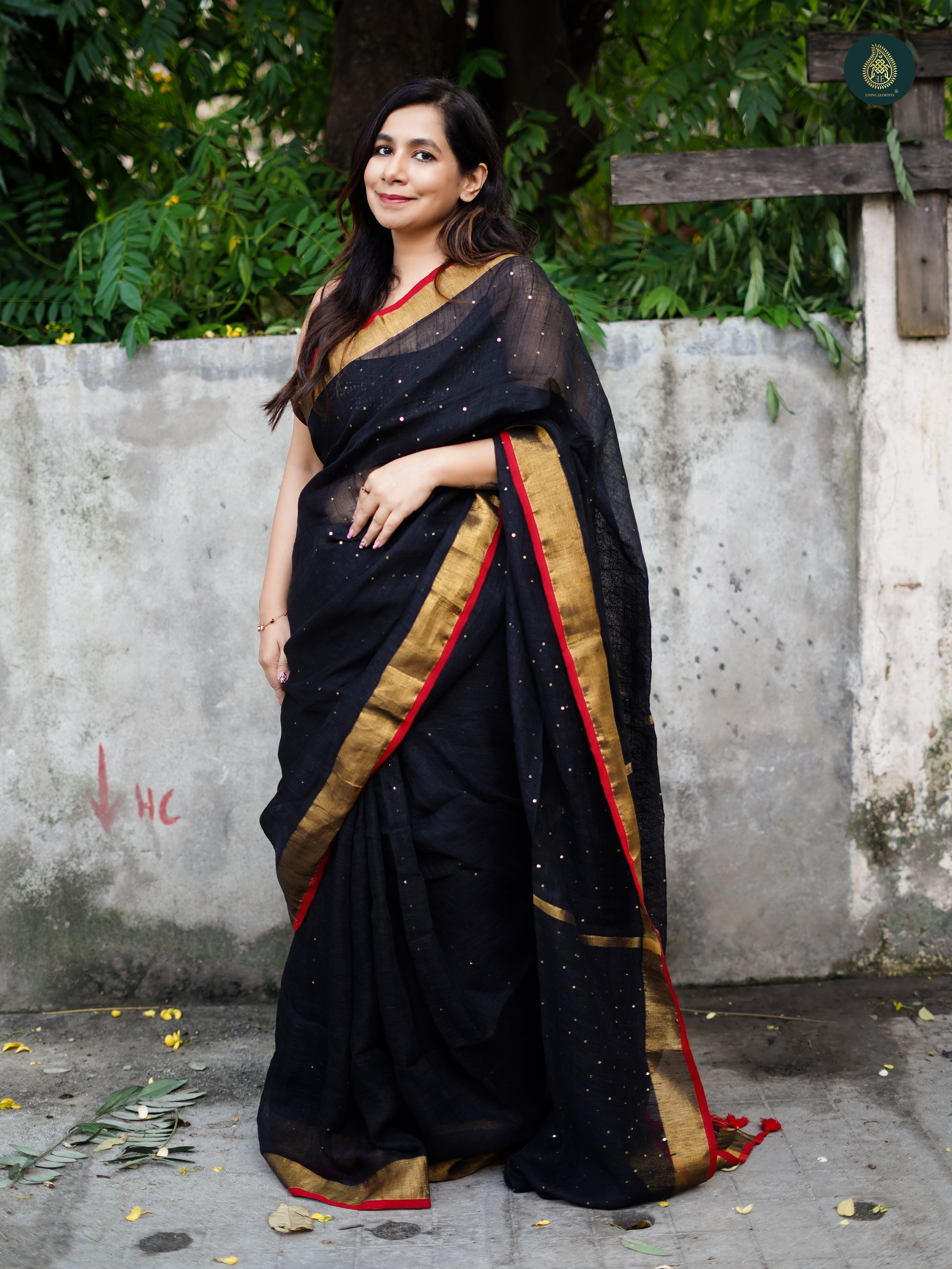 Handwoven Linen Jamdani Saree – Baavli Baarish