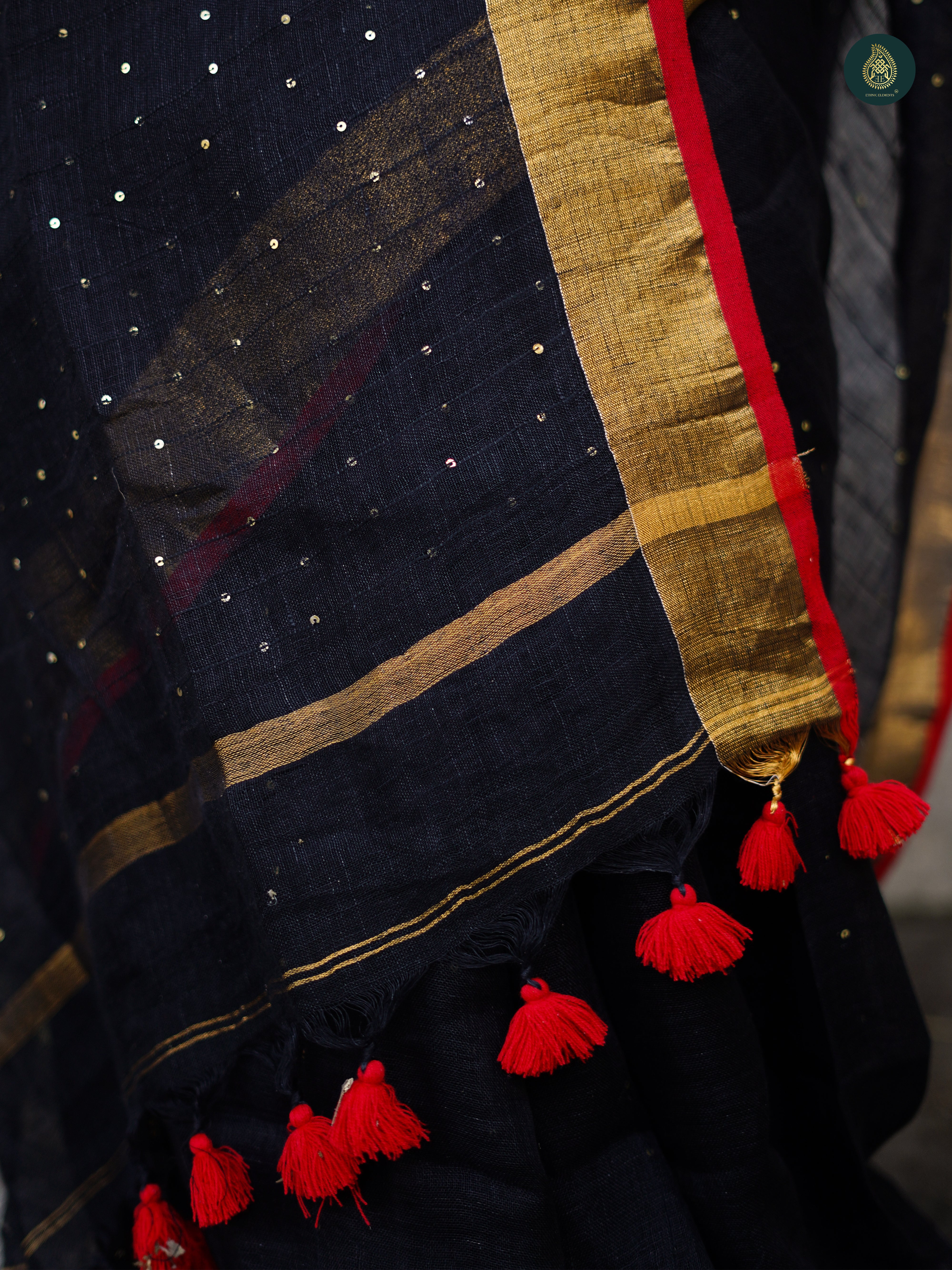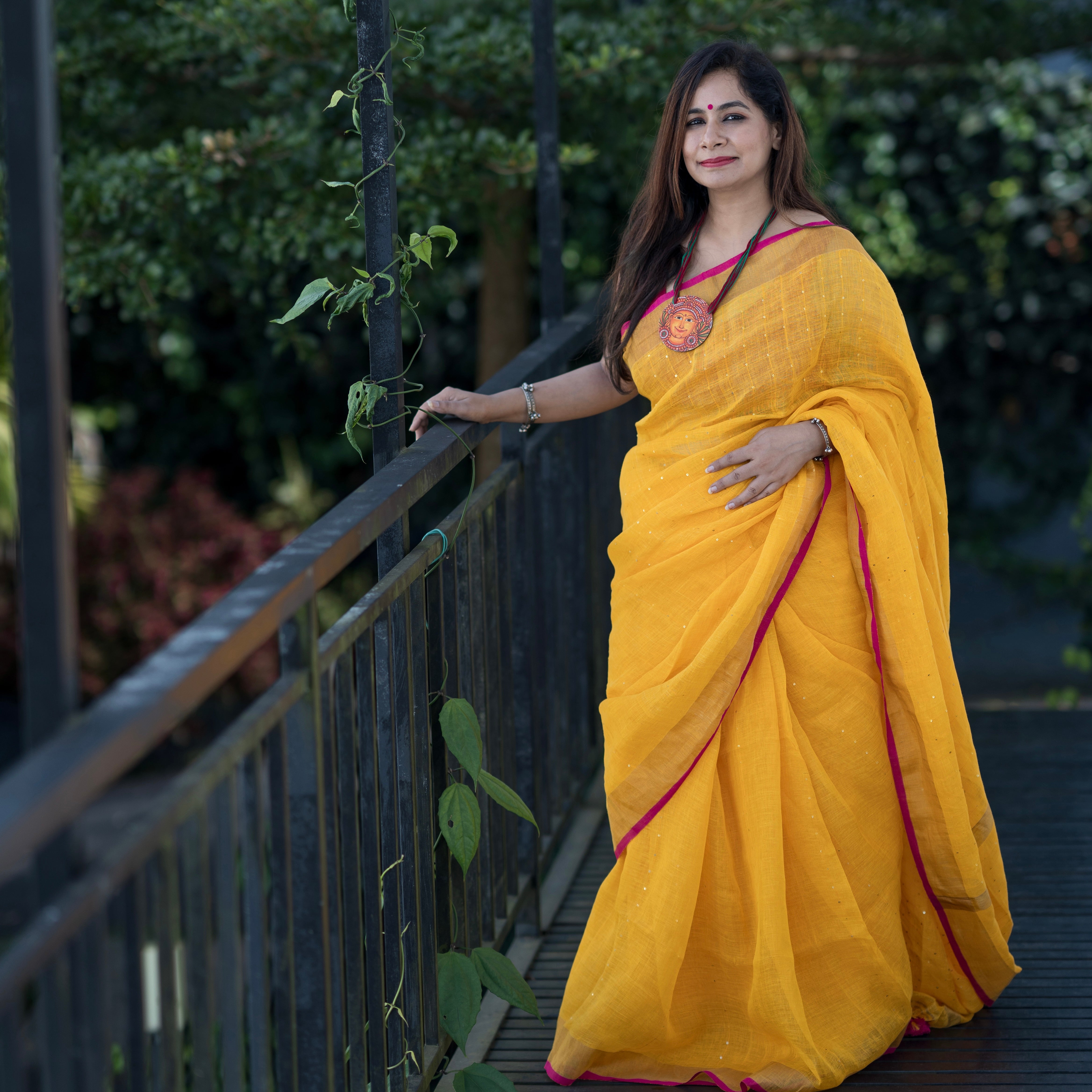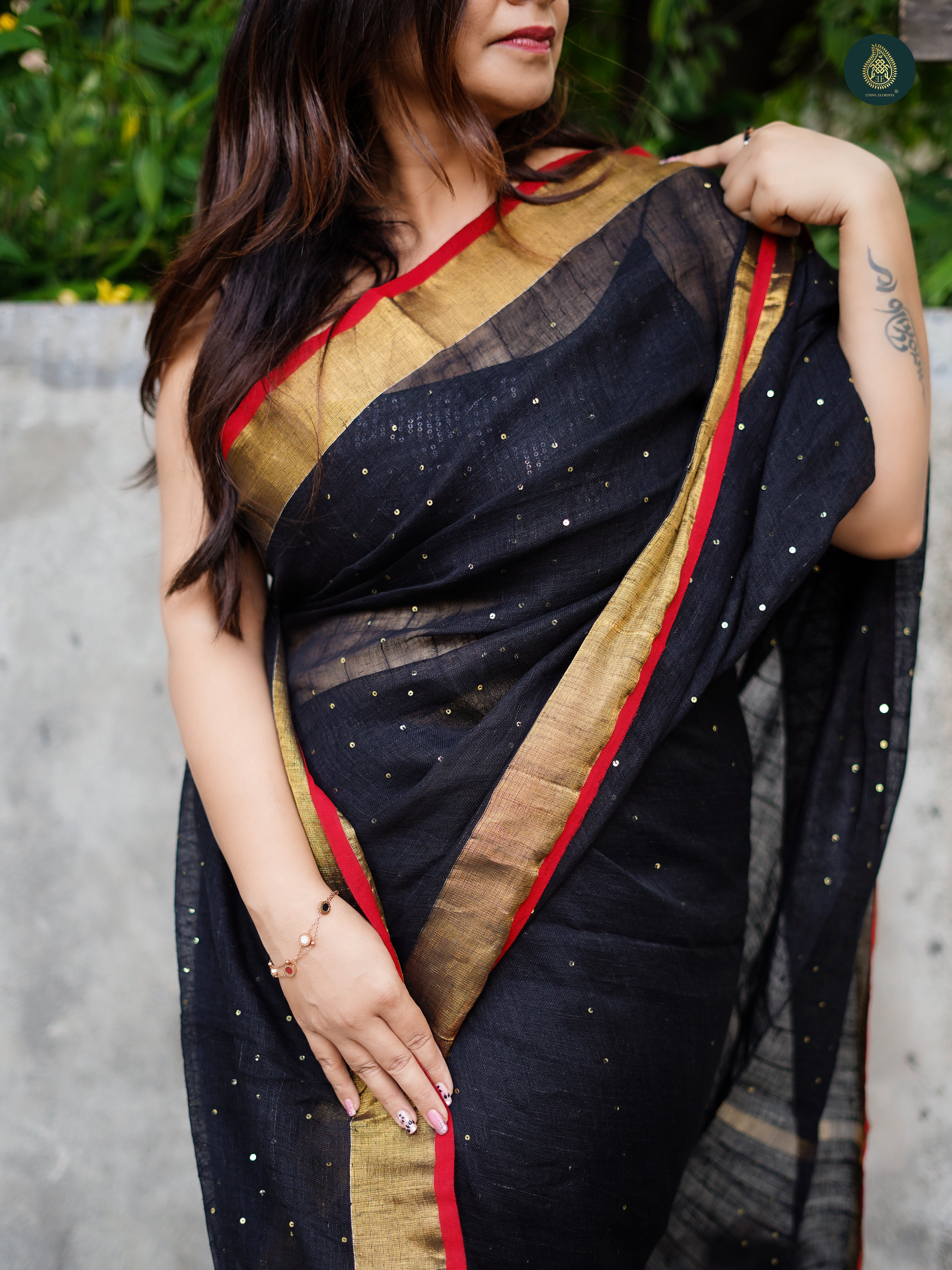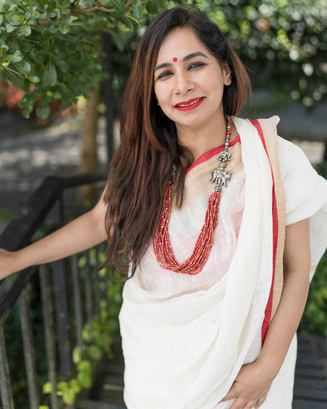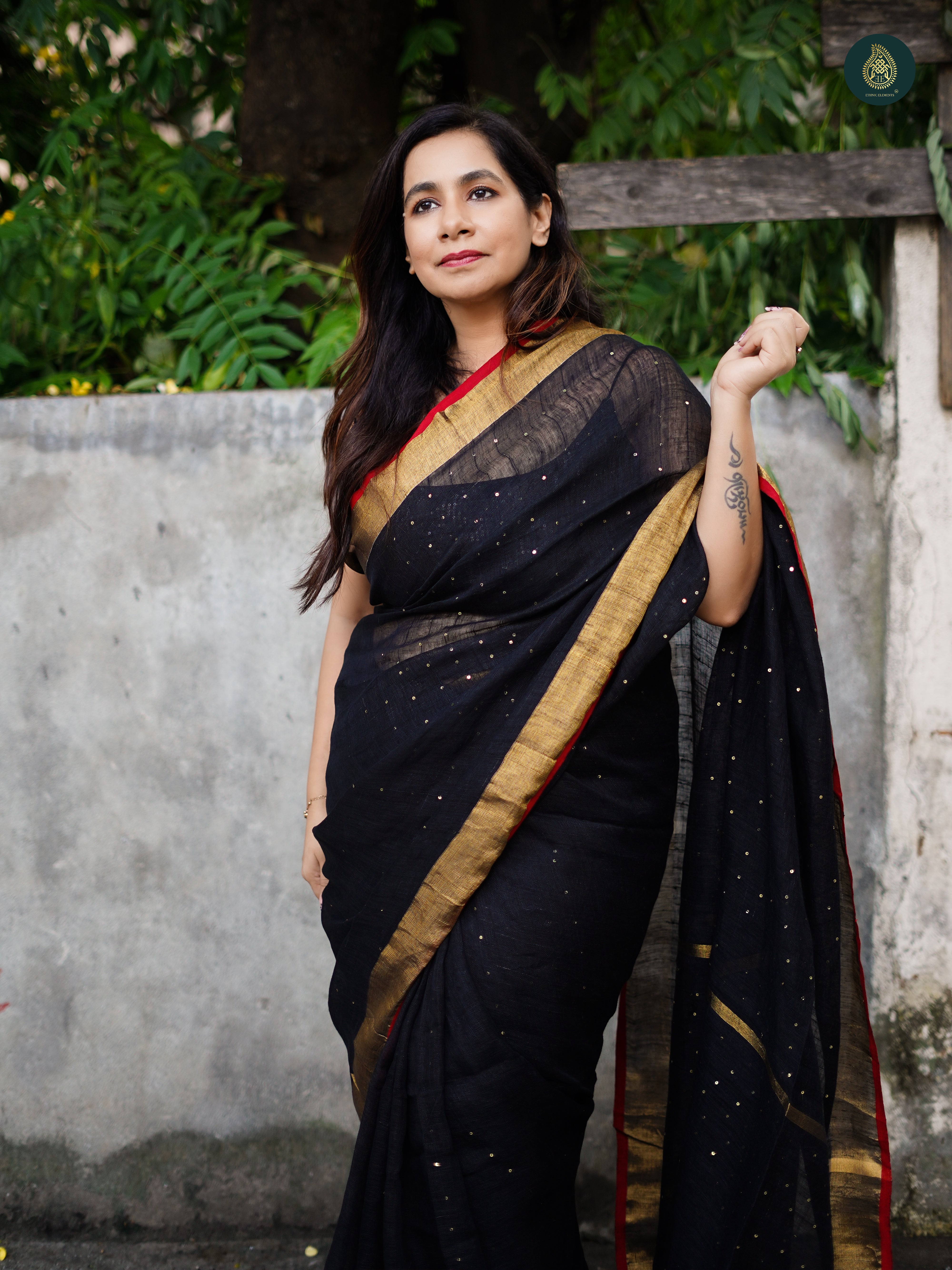 Handwoven Linen Jamdani Saree – Baavli Baarish