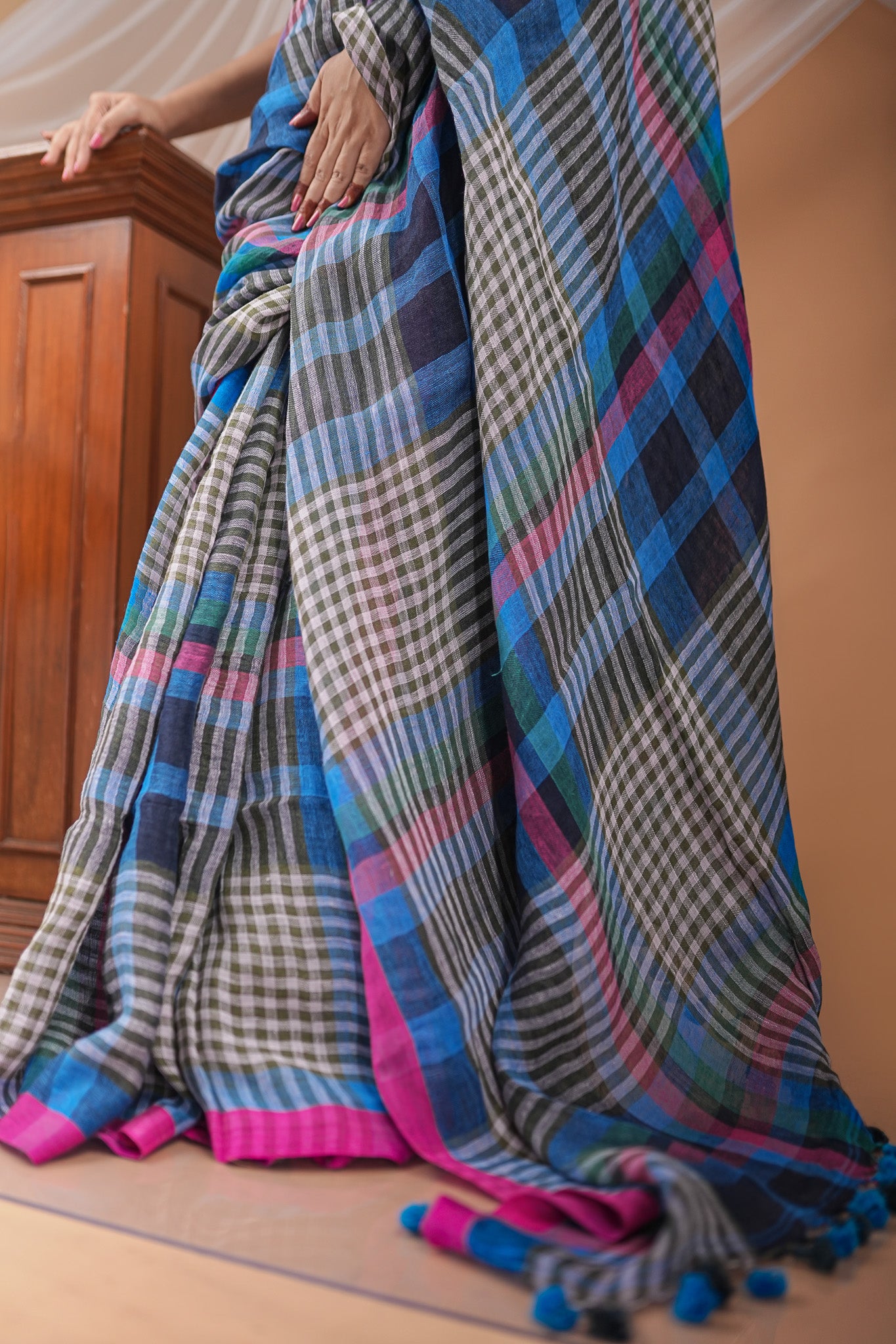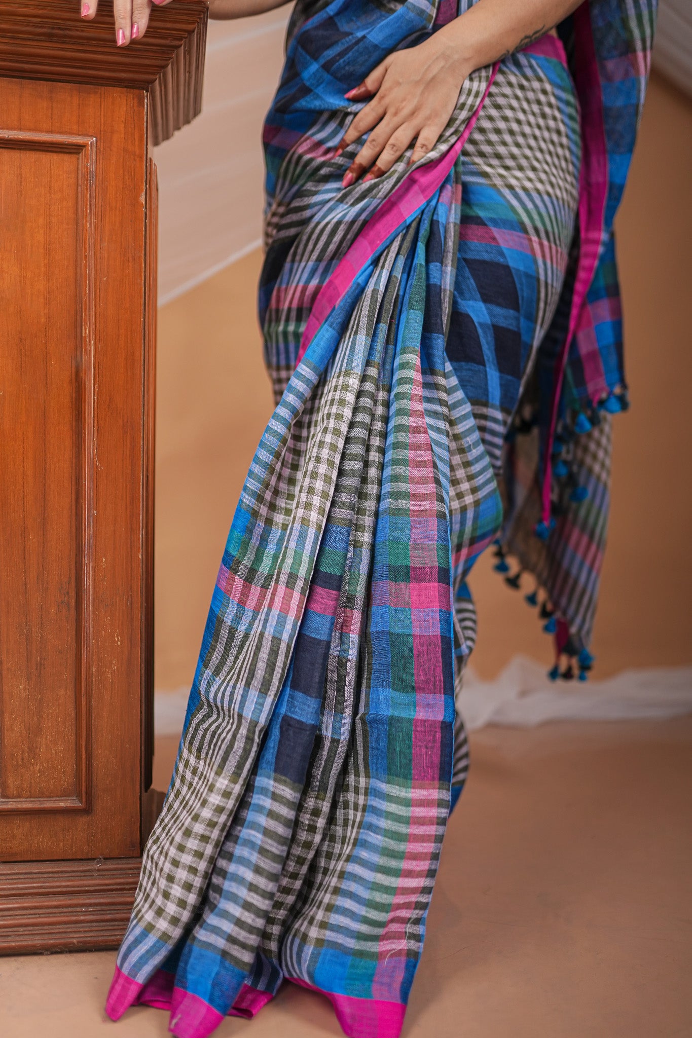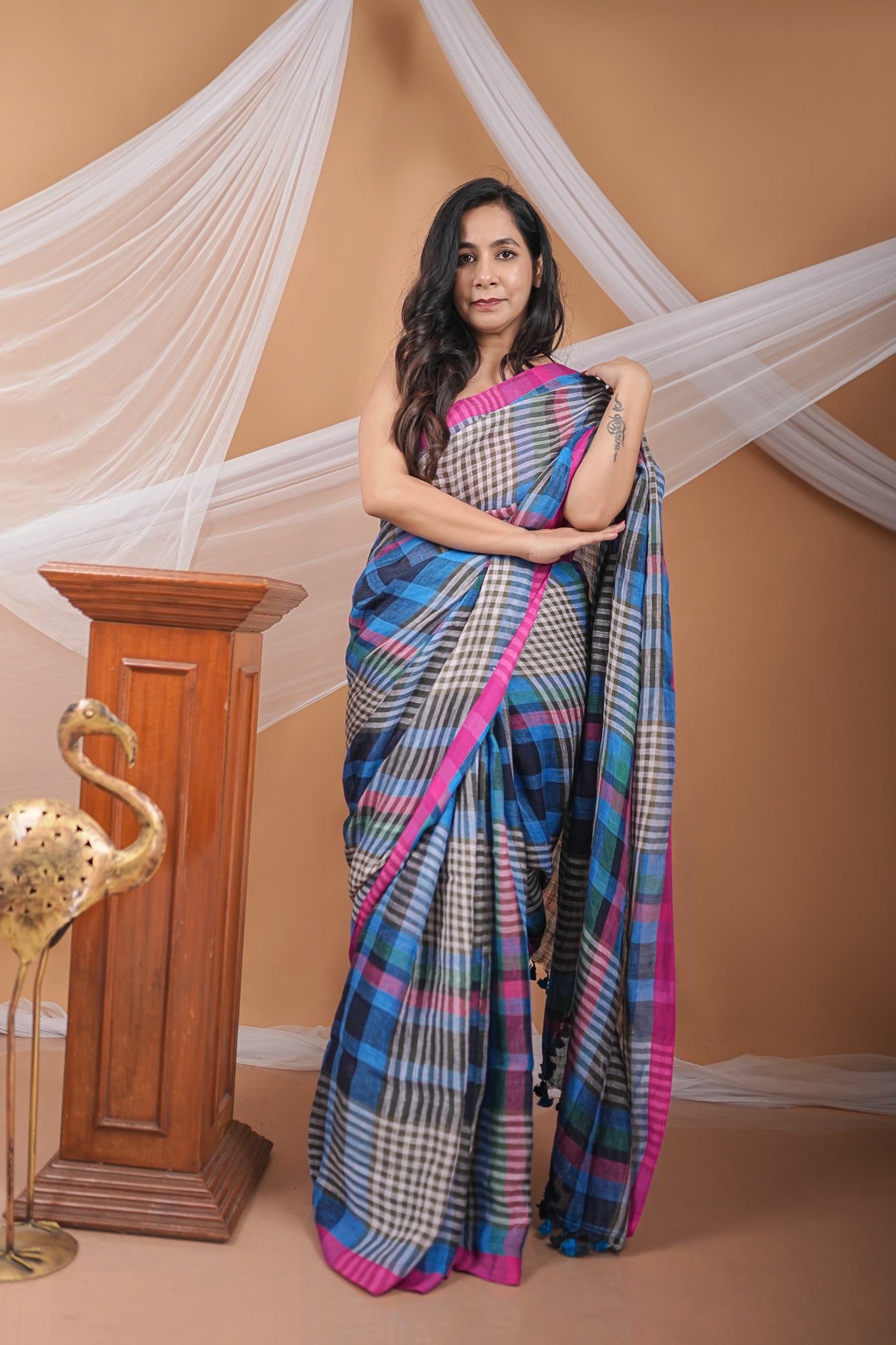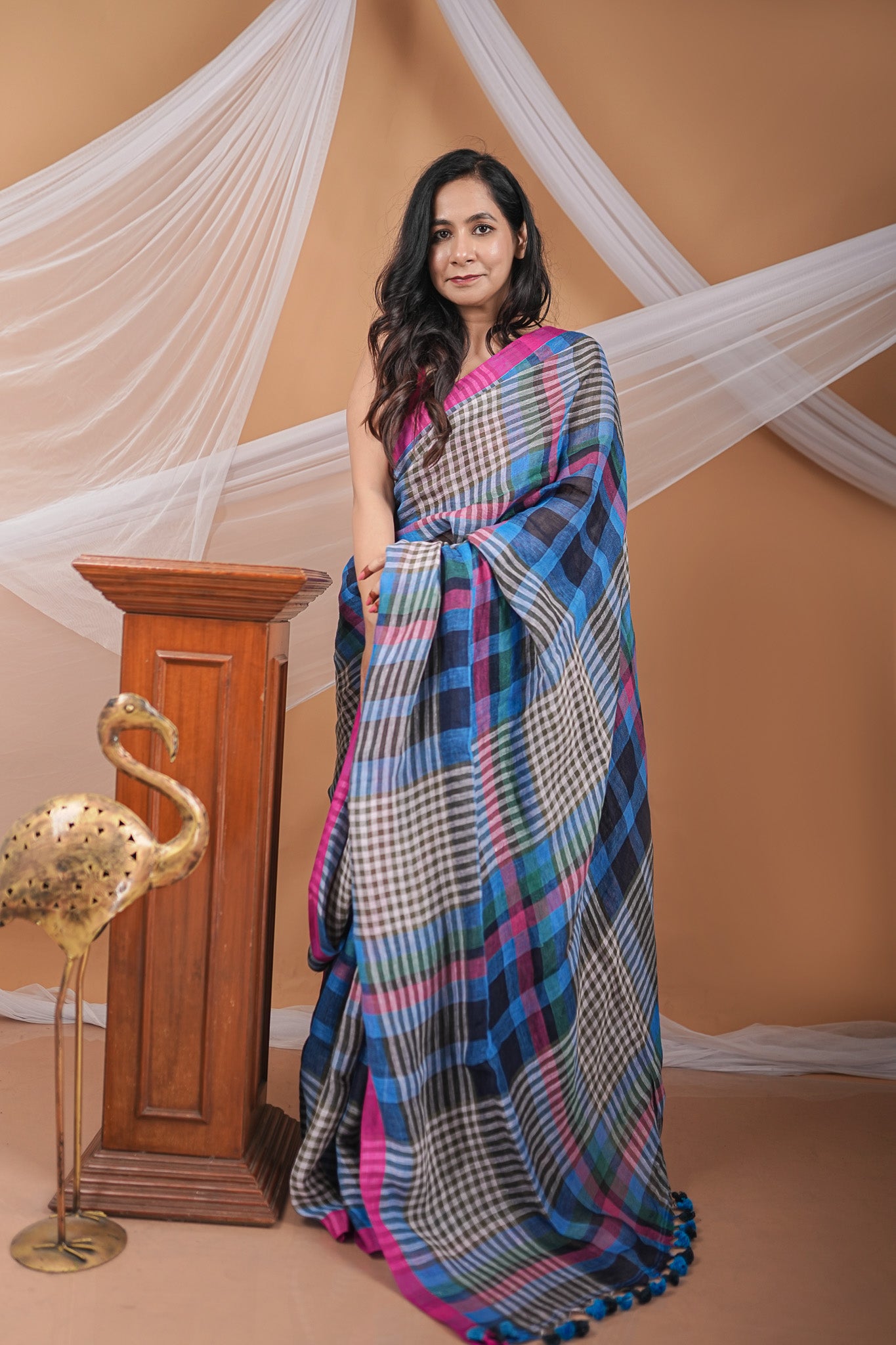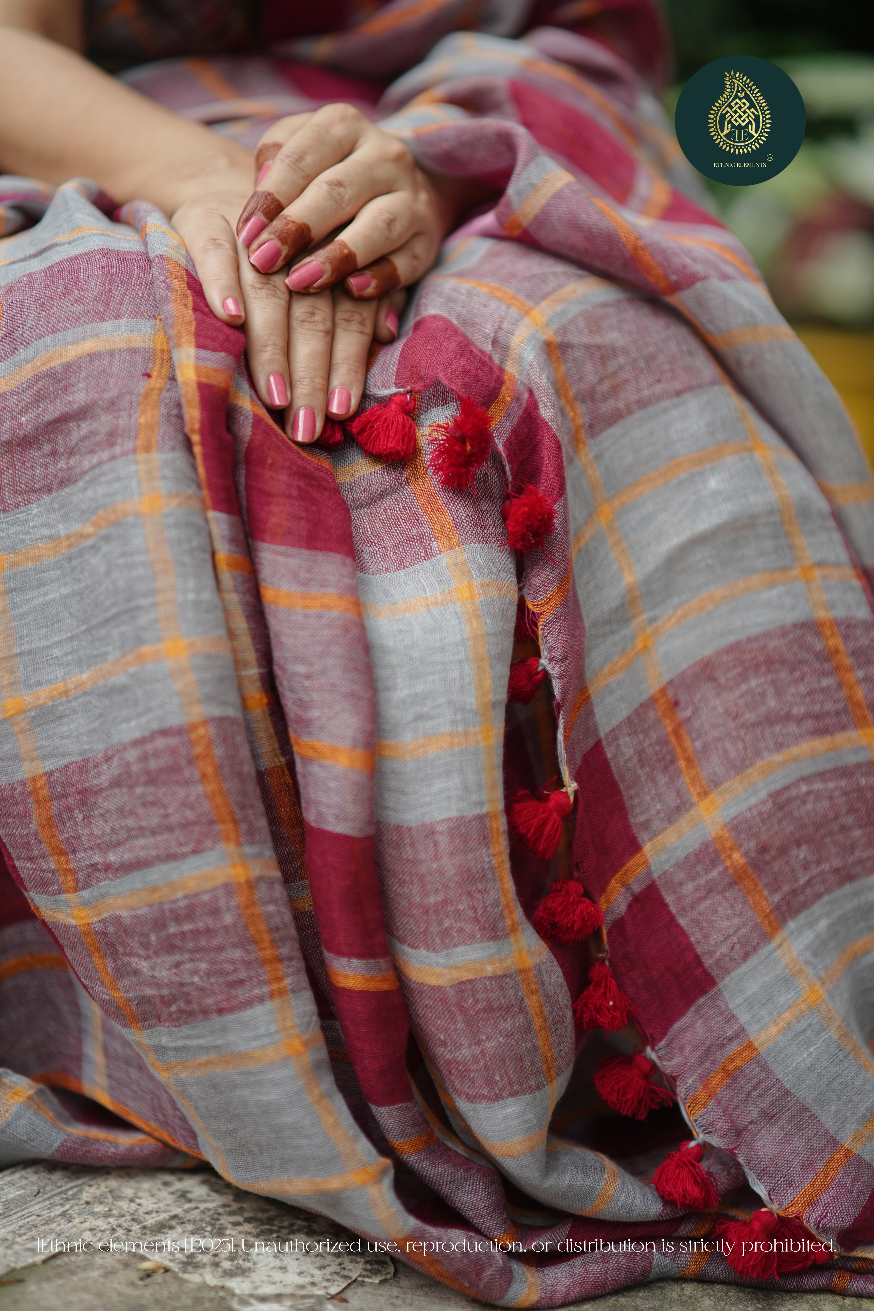 Handwoven Linen Jamdani Checked Saree – Raatrani Blush