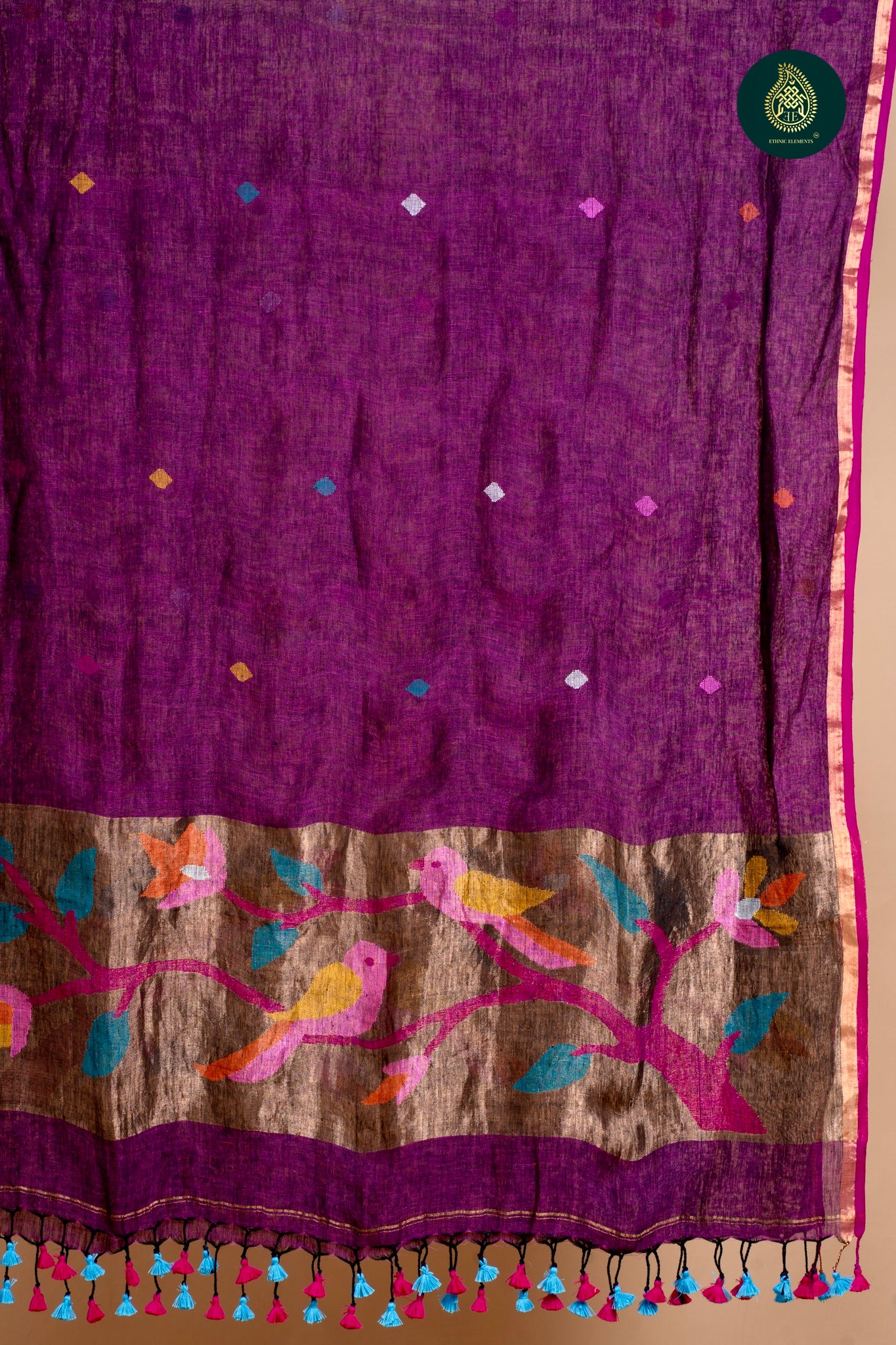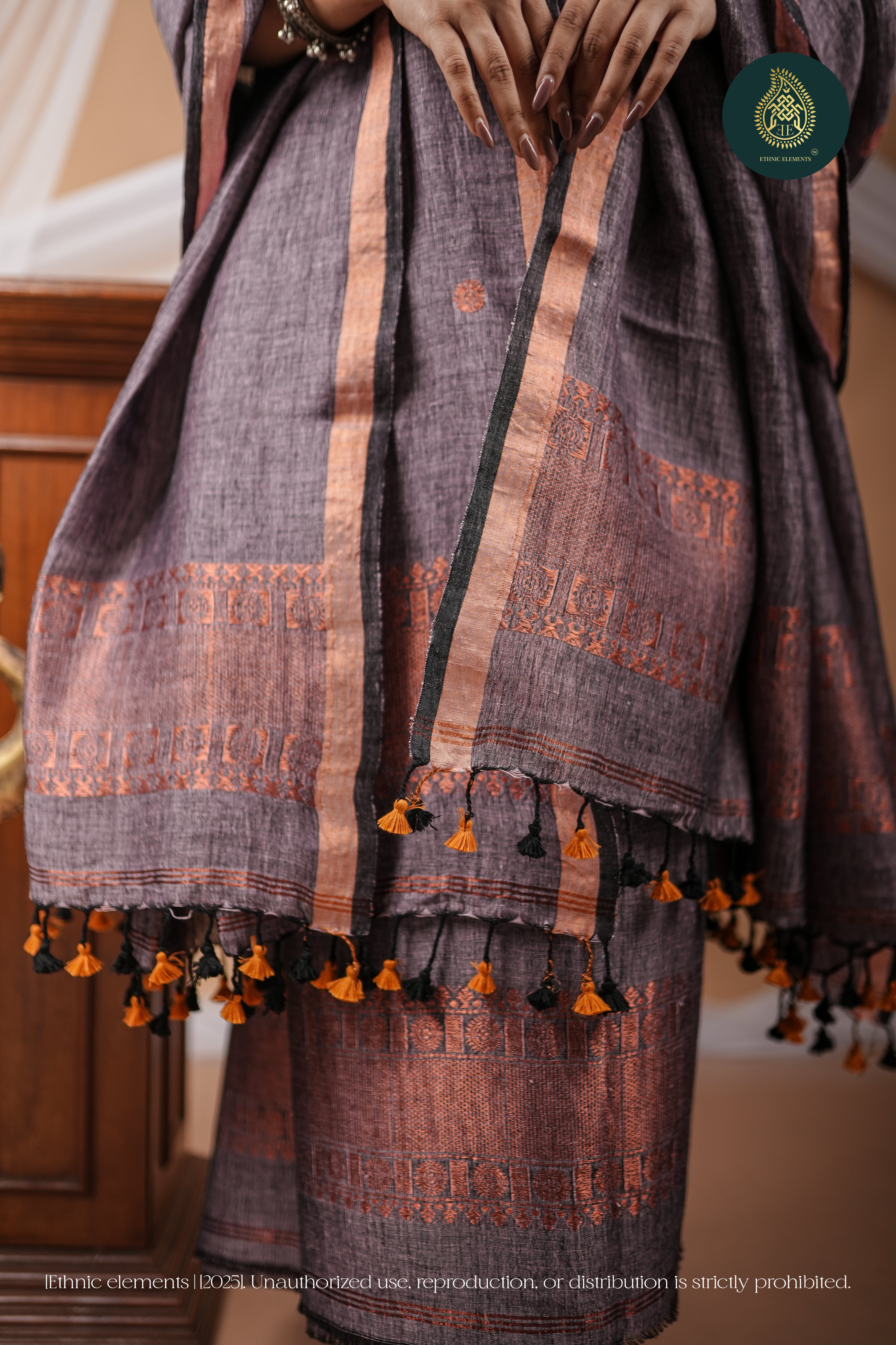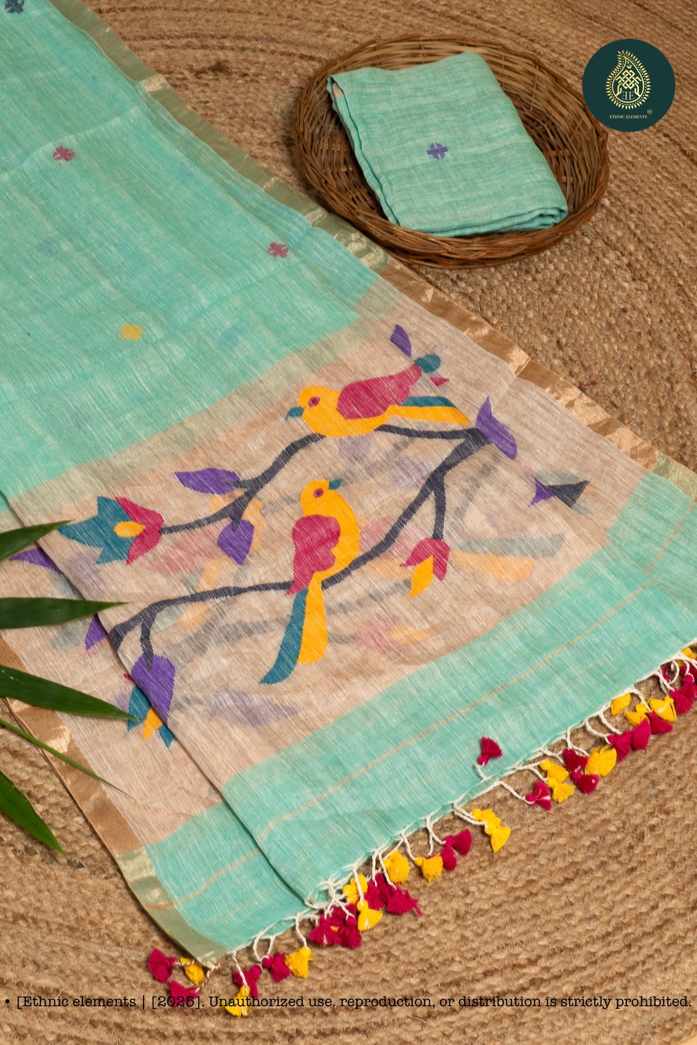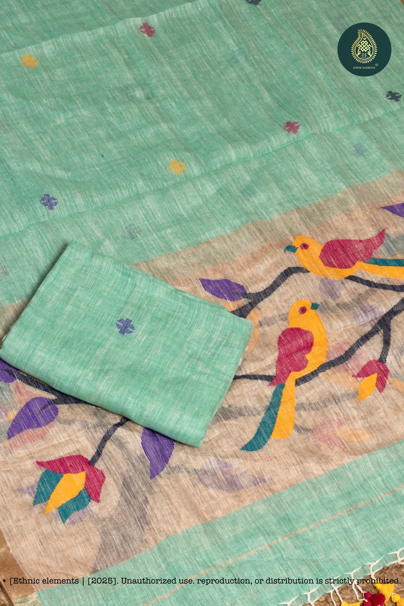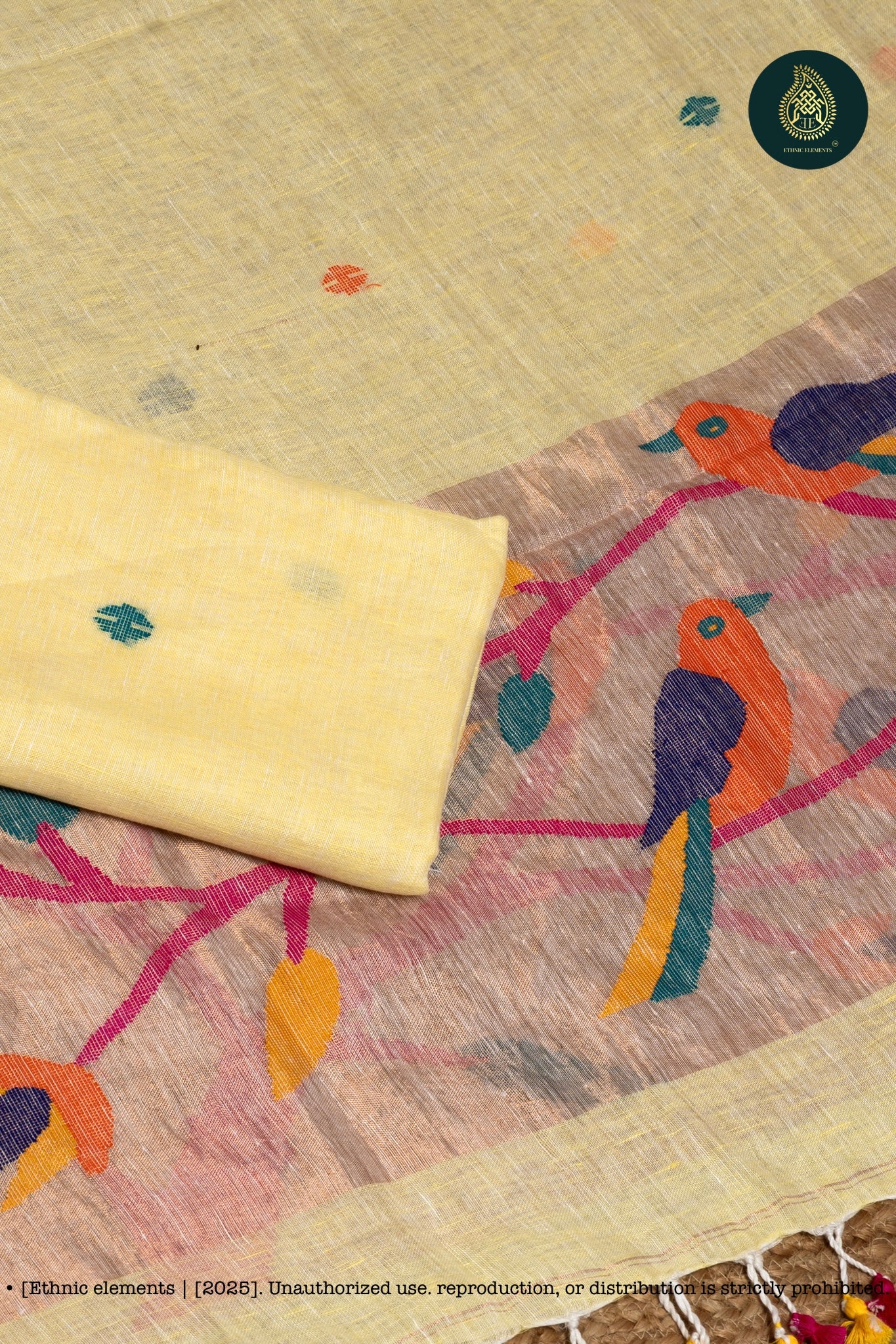 Woven from pure Bengal linen, our Jamdani suits are 100% handmade on traditional wooden looms by skilled artisans. Lightweight, breathable, and timeless — each piece is crafted with care using the finest linen threads, sourced authentically from Bengal’s weaving communities.