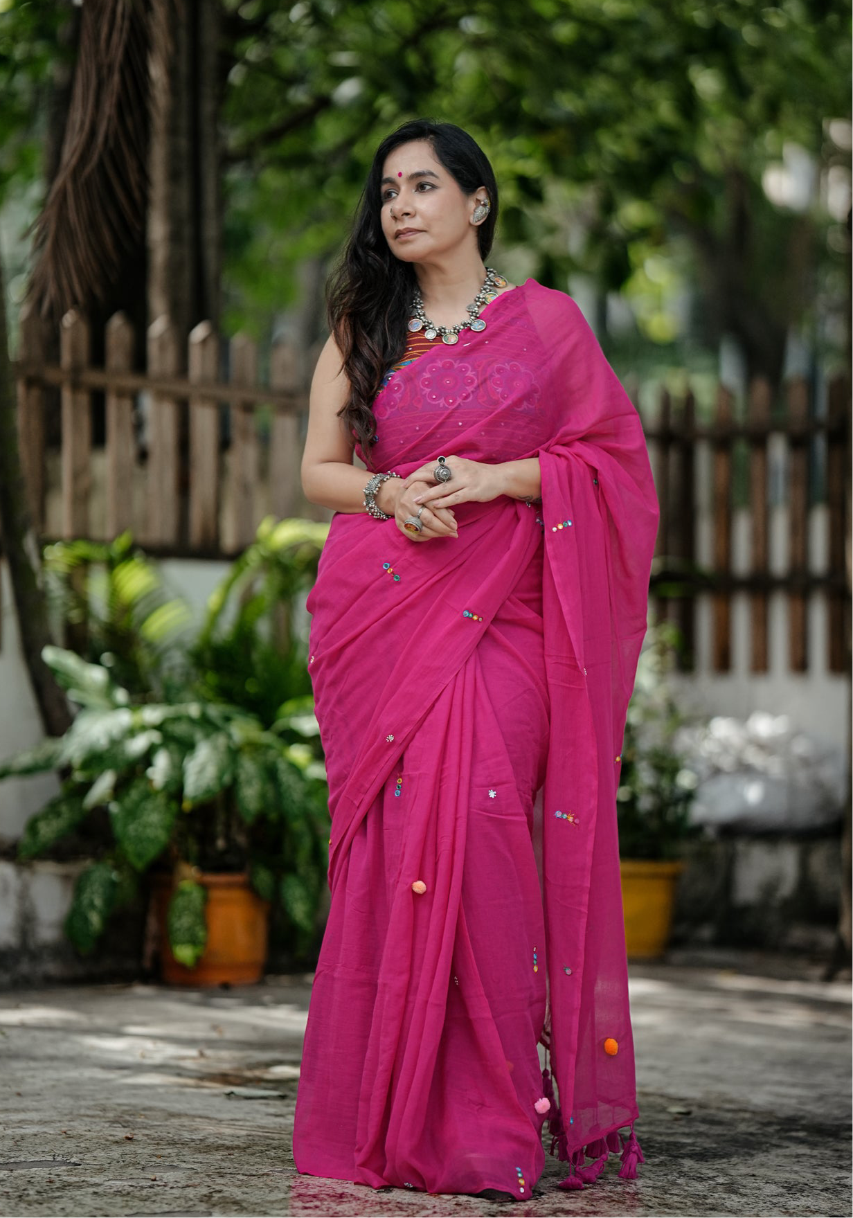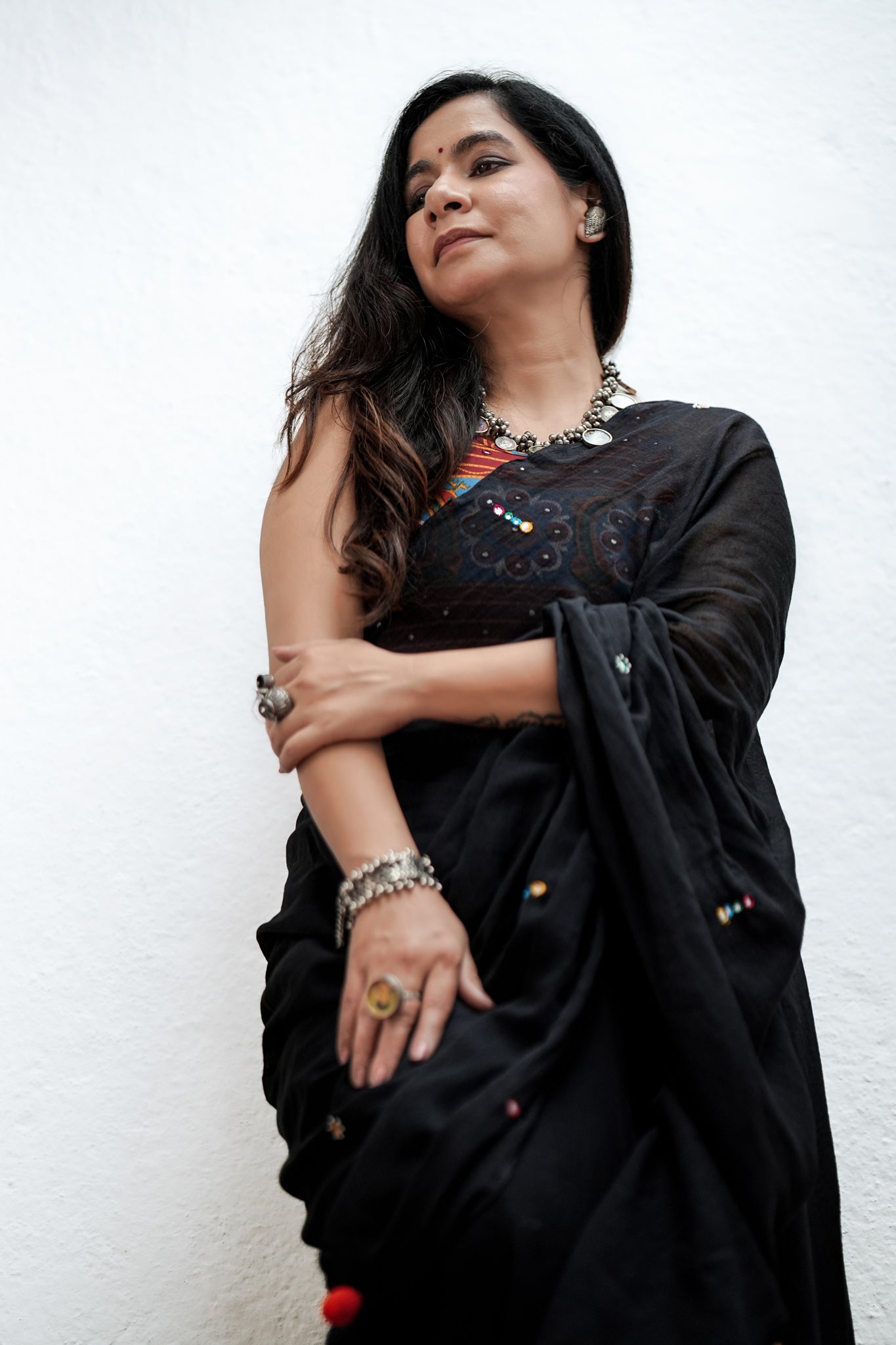 Mul Cotton Saree – Kaali Gulab Mehfil