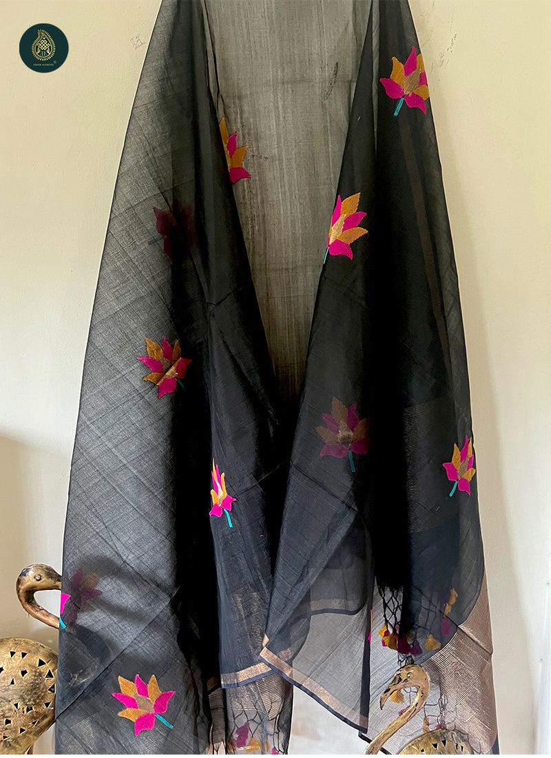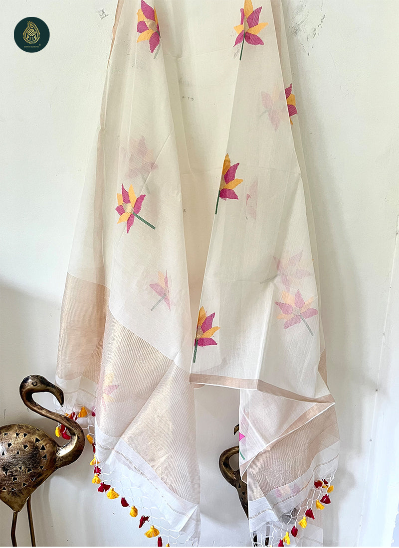 Handwoven Organic Jamdani Dupattas with Bird Print, directly sourced from weavers.