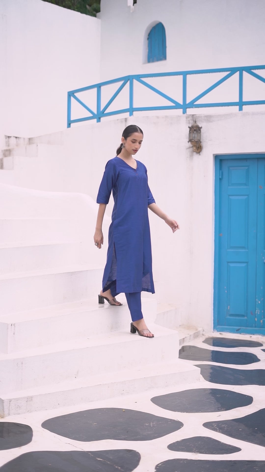 Style guide - Complement our Royal Blue Kurta set with a traditional dupatta—select from our timeless elegance of Kalamkari, the exquisite Ajrakh, the earthy Dabu, the artisanal Bhujodi handblock, or the delicate sheen of Chanderi and Maheshwari for the sophisticated look