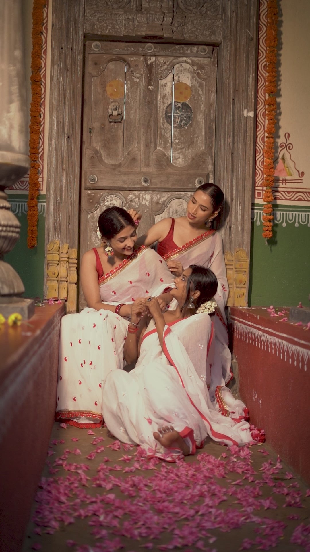 Drape your saree in a traditional Bengali style, pair it with a statement blouse, and complete the look with temple jewelry and a classic red bindi for a perfect Pujo ensemble