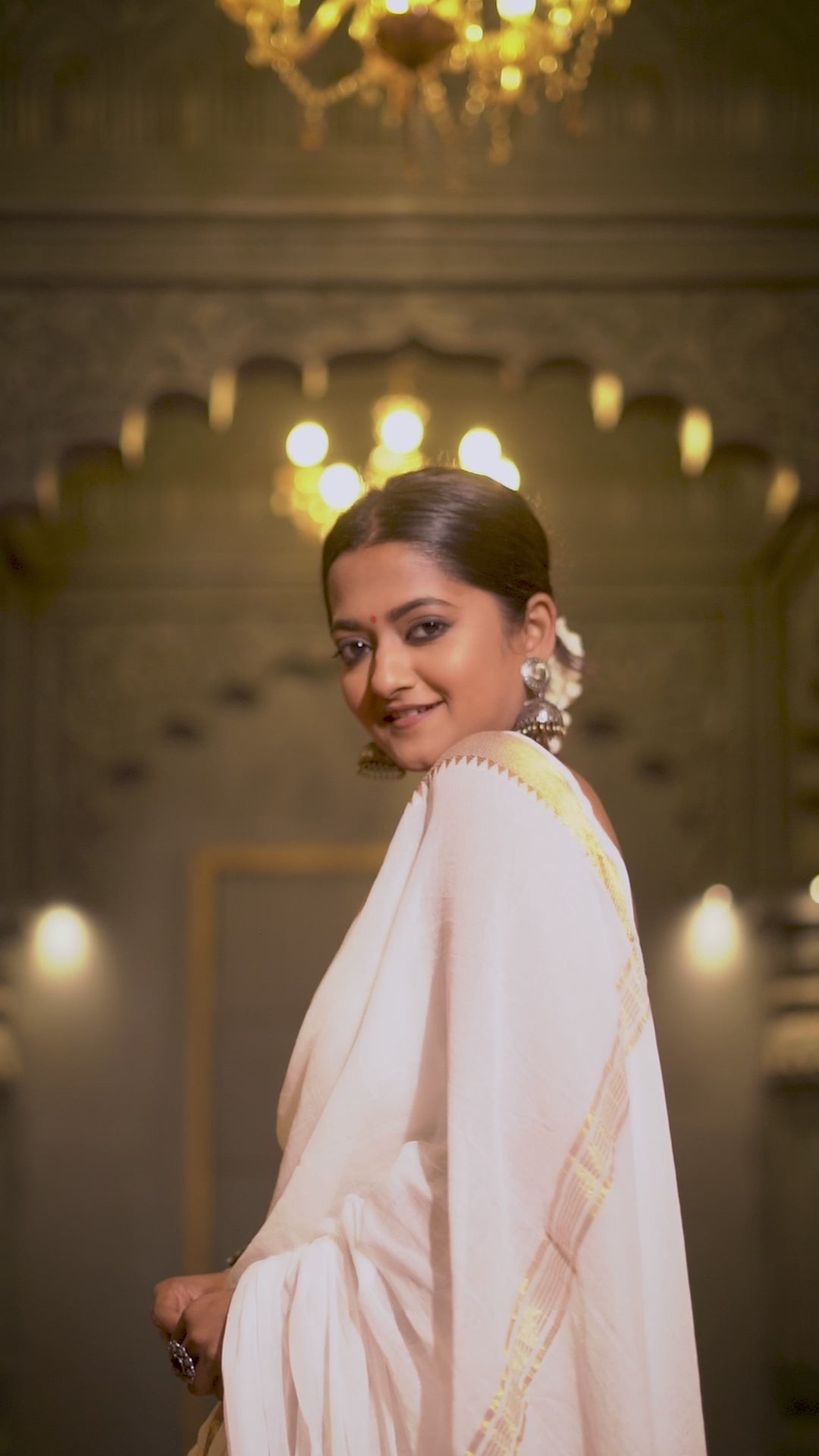 Drape our Kerala Kasavu saree with simple pleats, pair it with gold jewelry, and add a fresh flower garland for an elegant, festive look