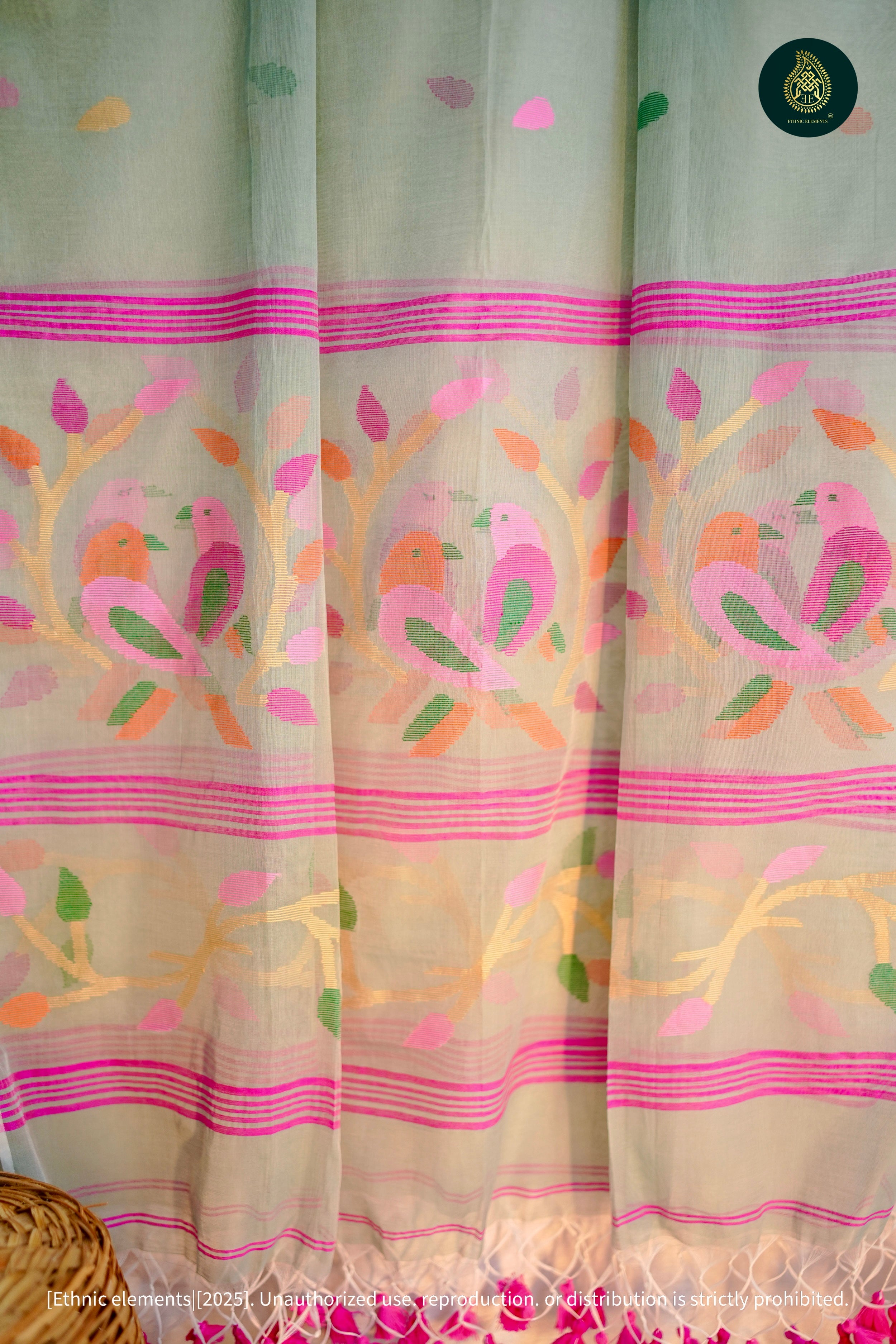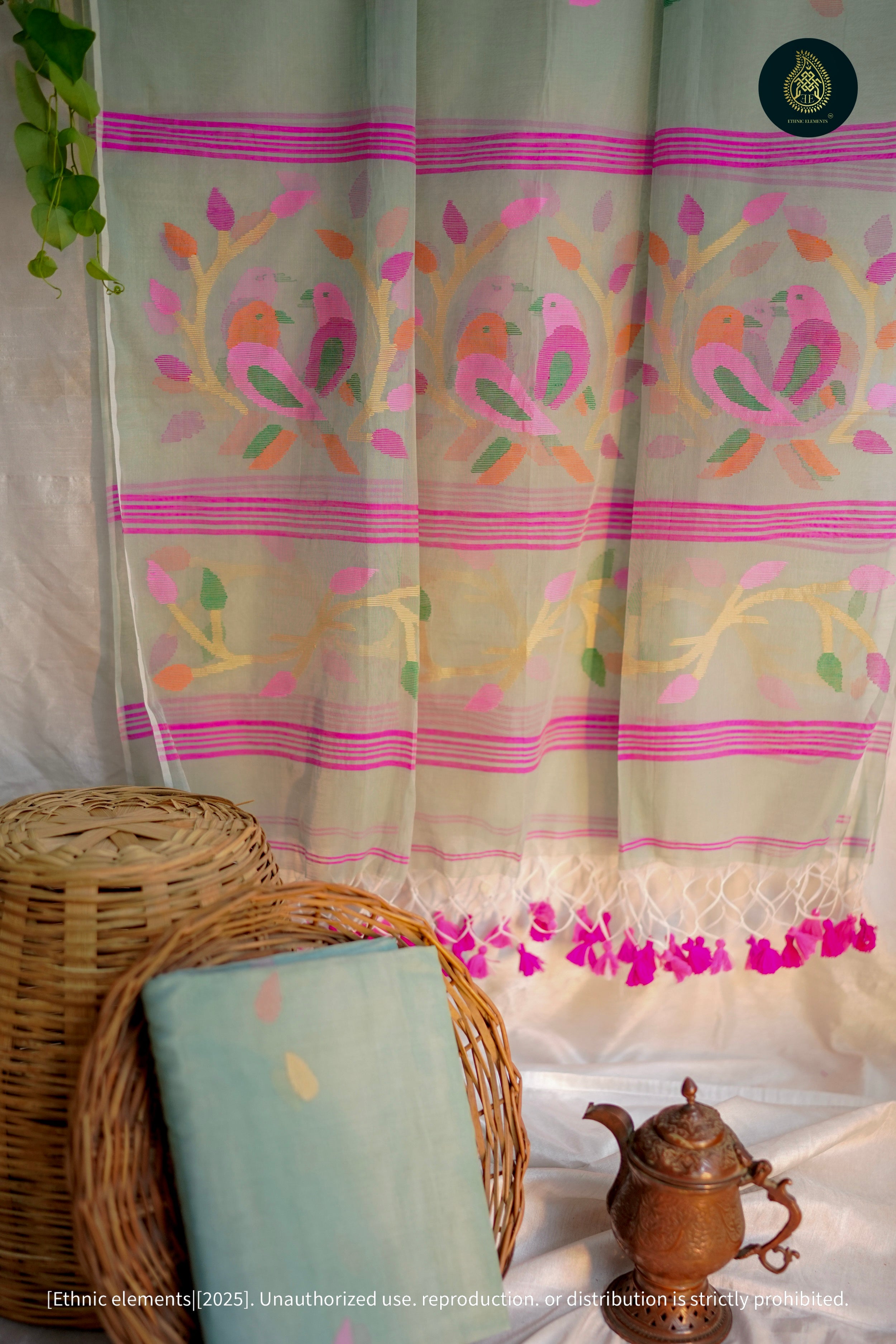 Komal Daali Resham Muslin Jamdani Kurta Dupatta Set - 2pc