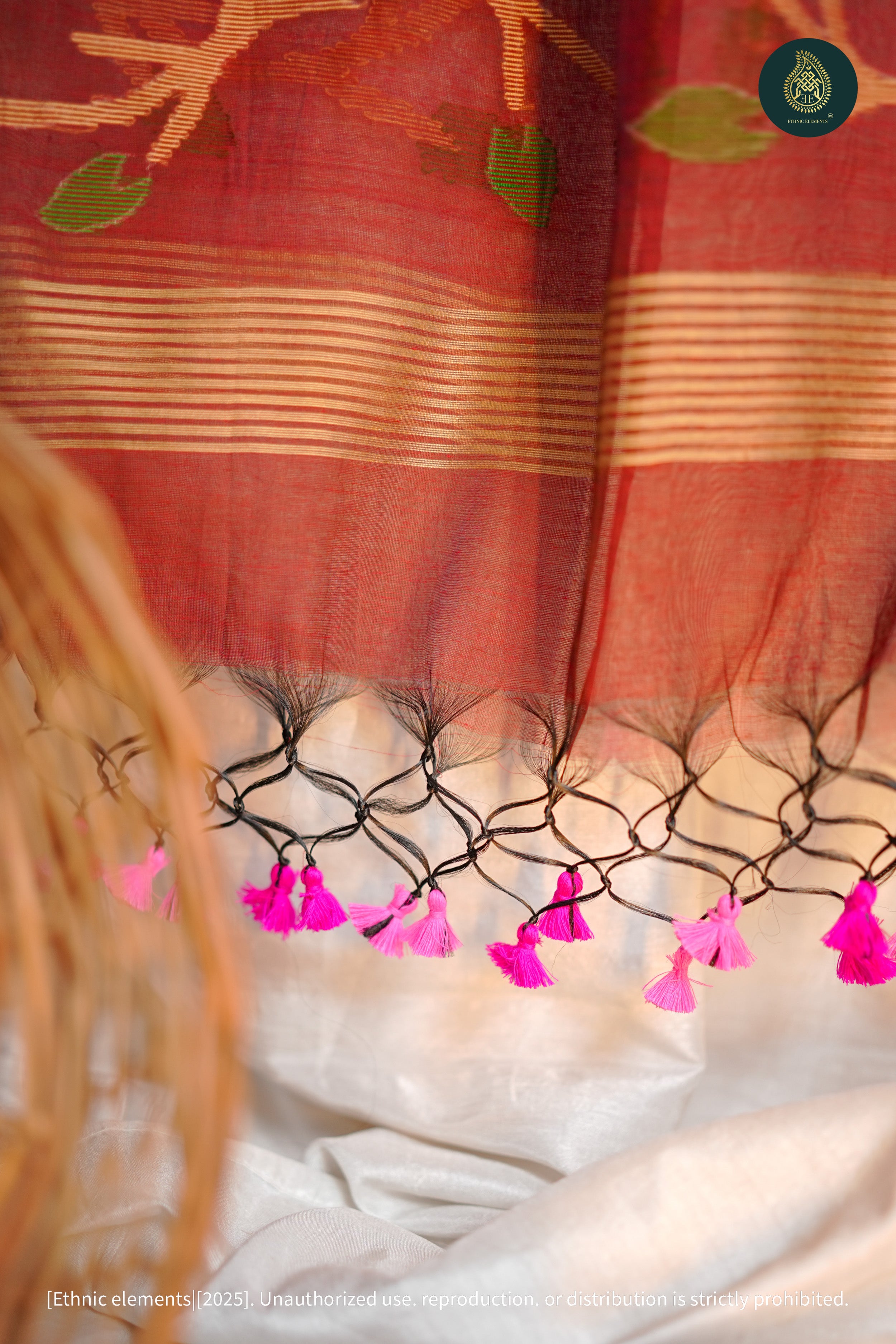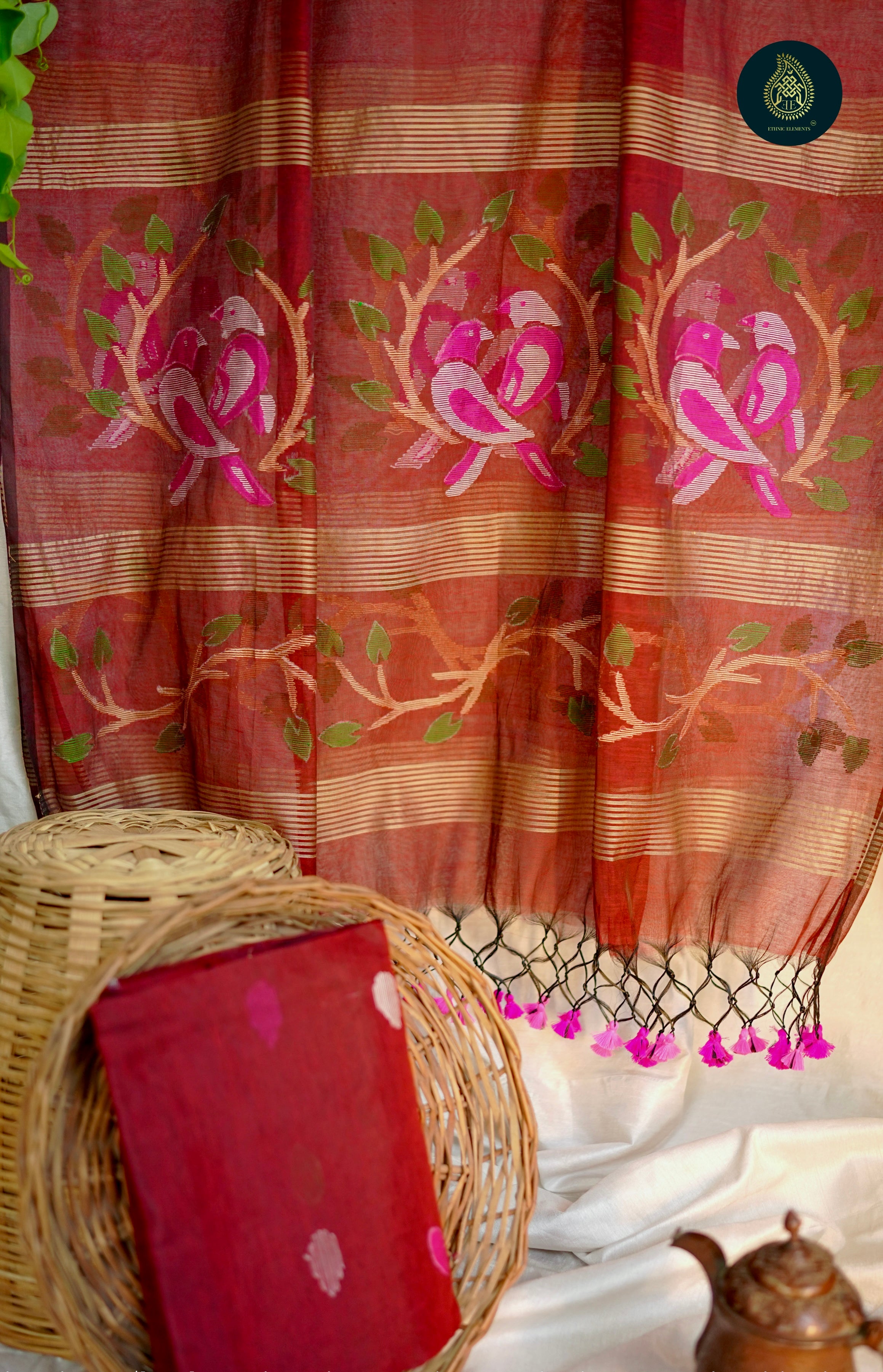 Surkh Daali Resham Muslin Jamdani Kurta Dupatta Set - 2pc