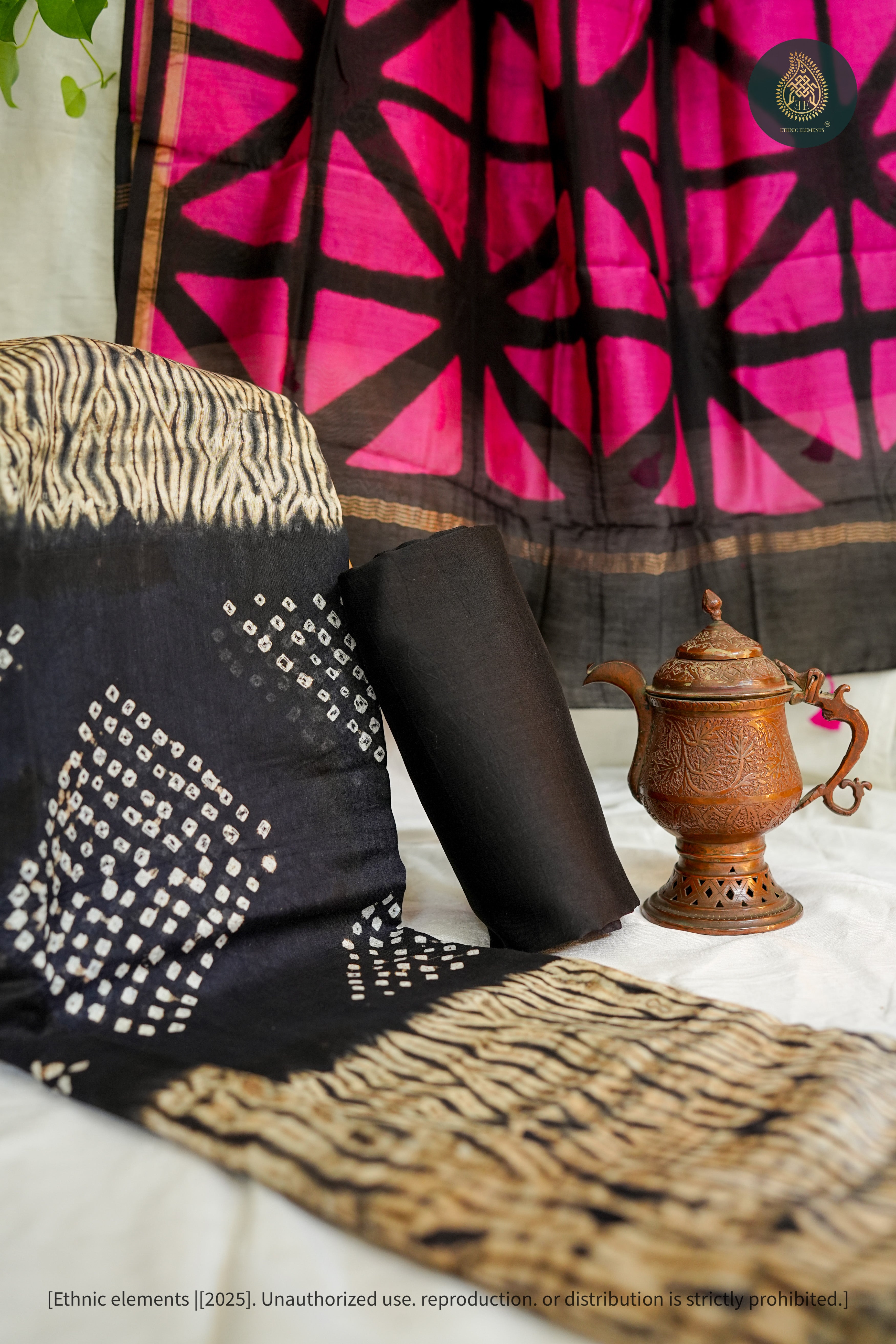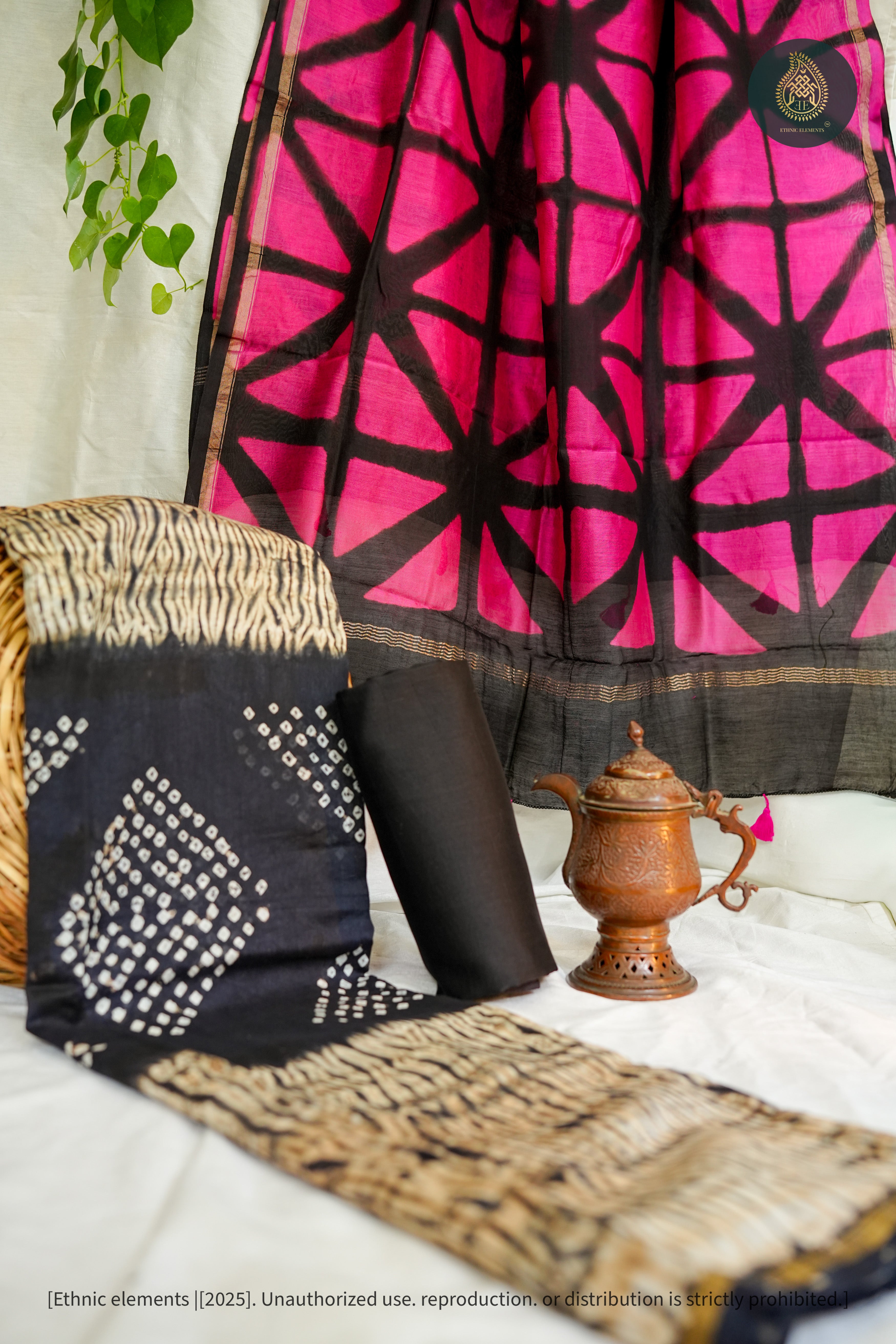 Kaali Shibori Viraasat Chanderi Suit Set 3Pc