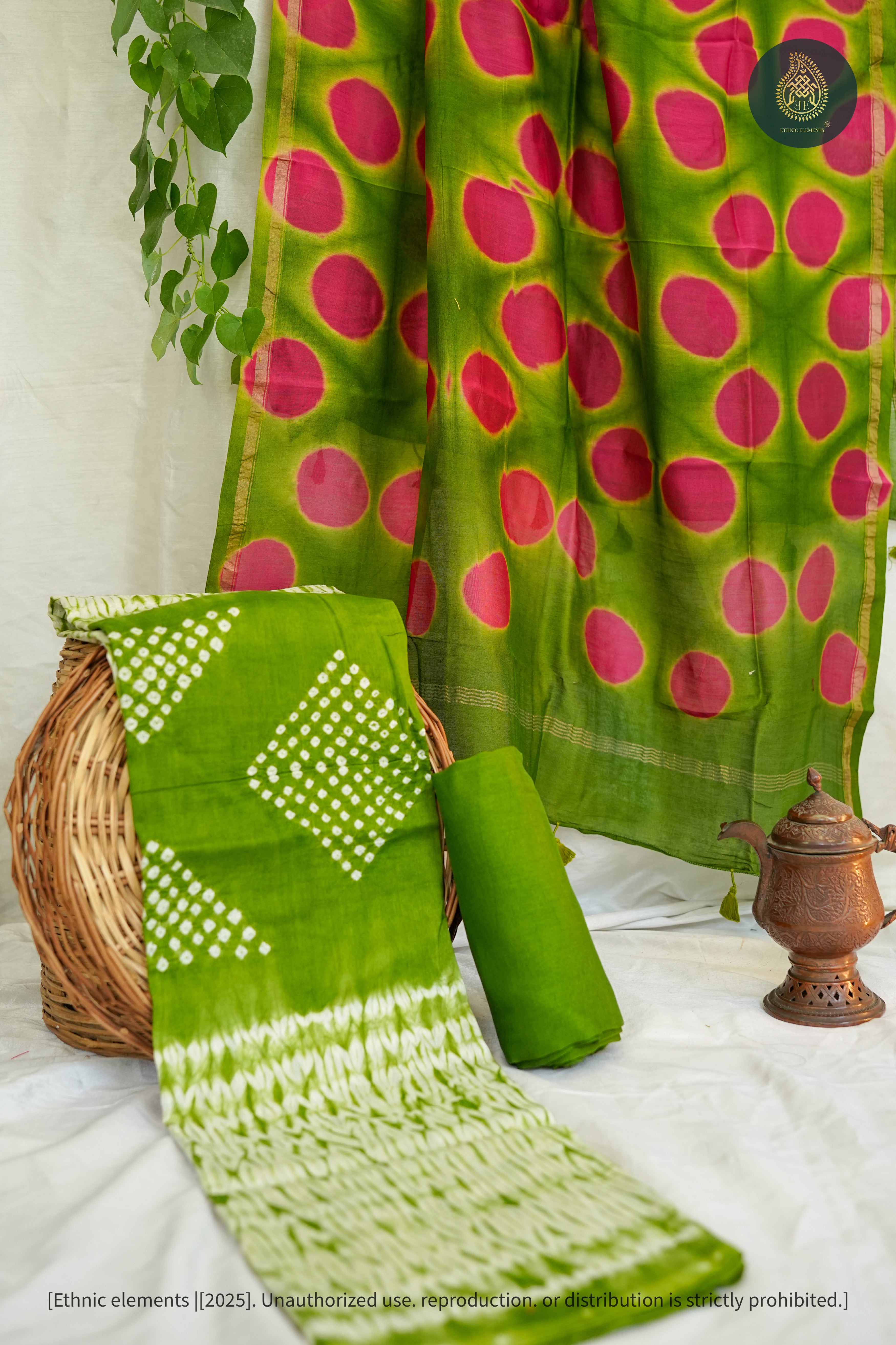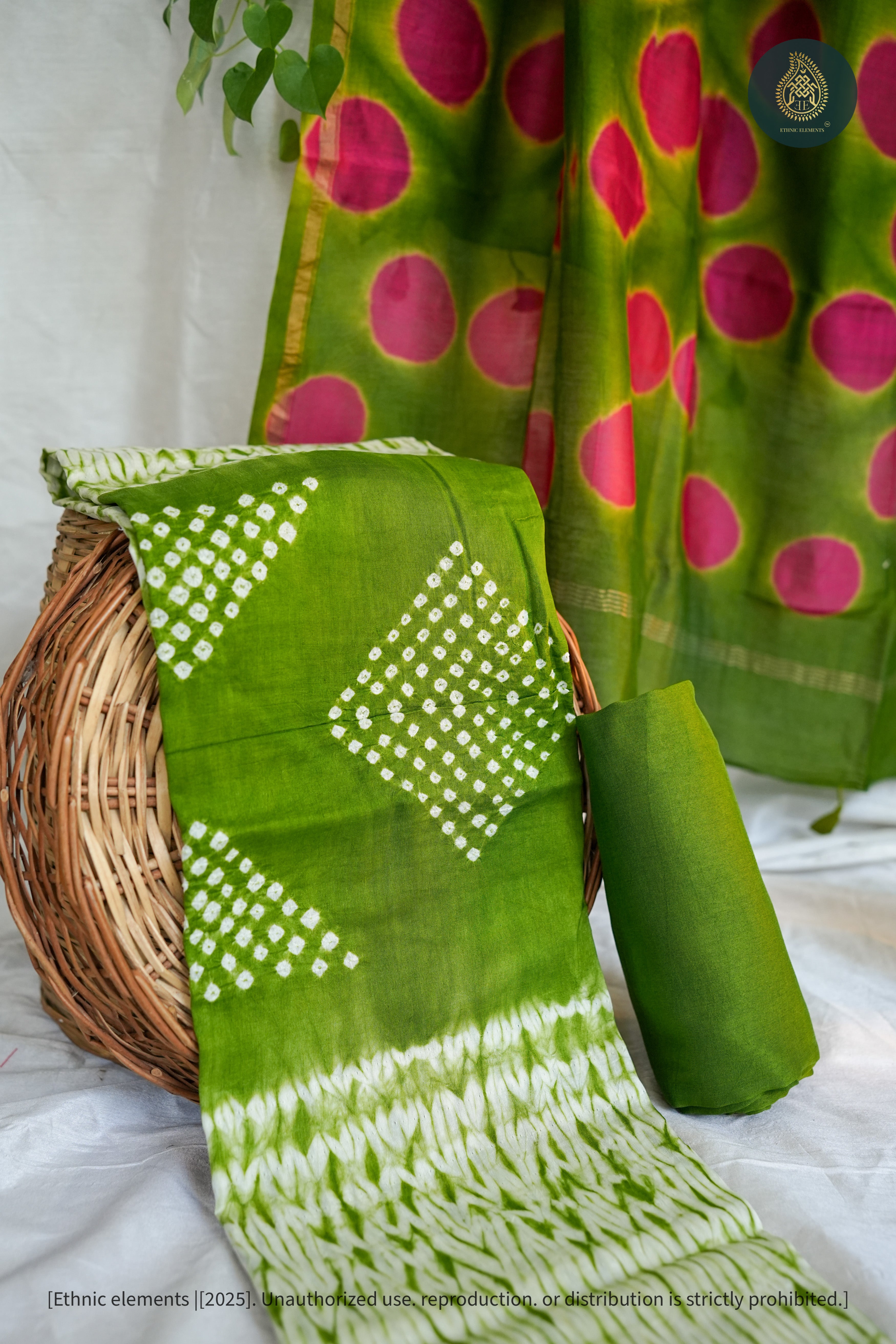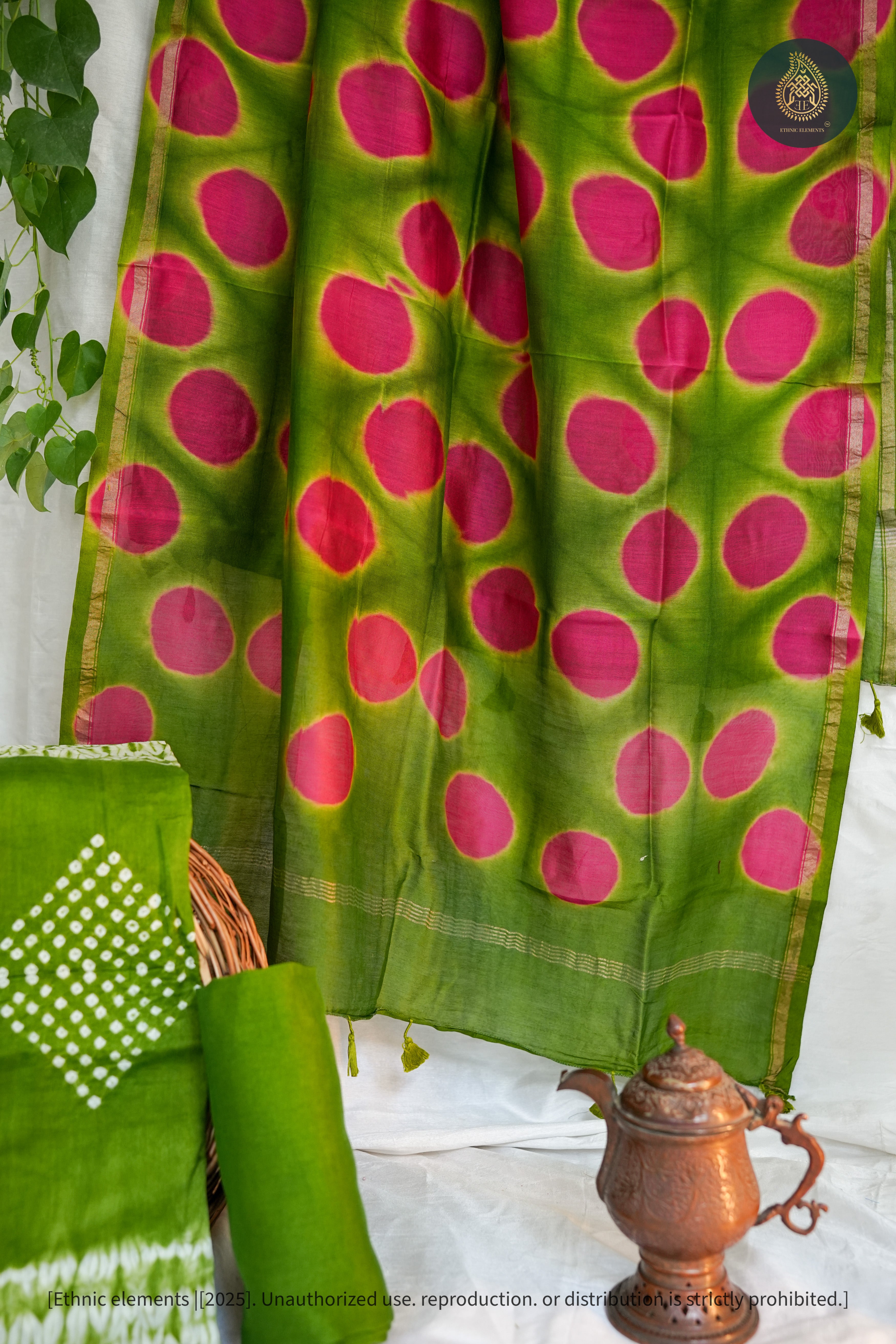 Hariyali Shibori Chanderi Suit Set 3Pc