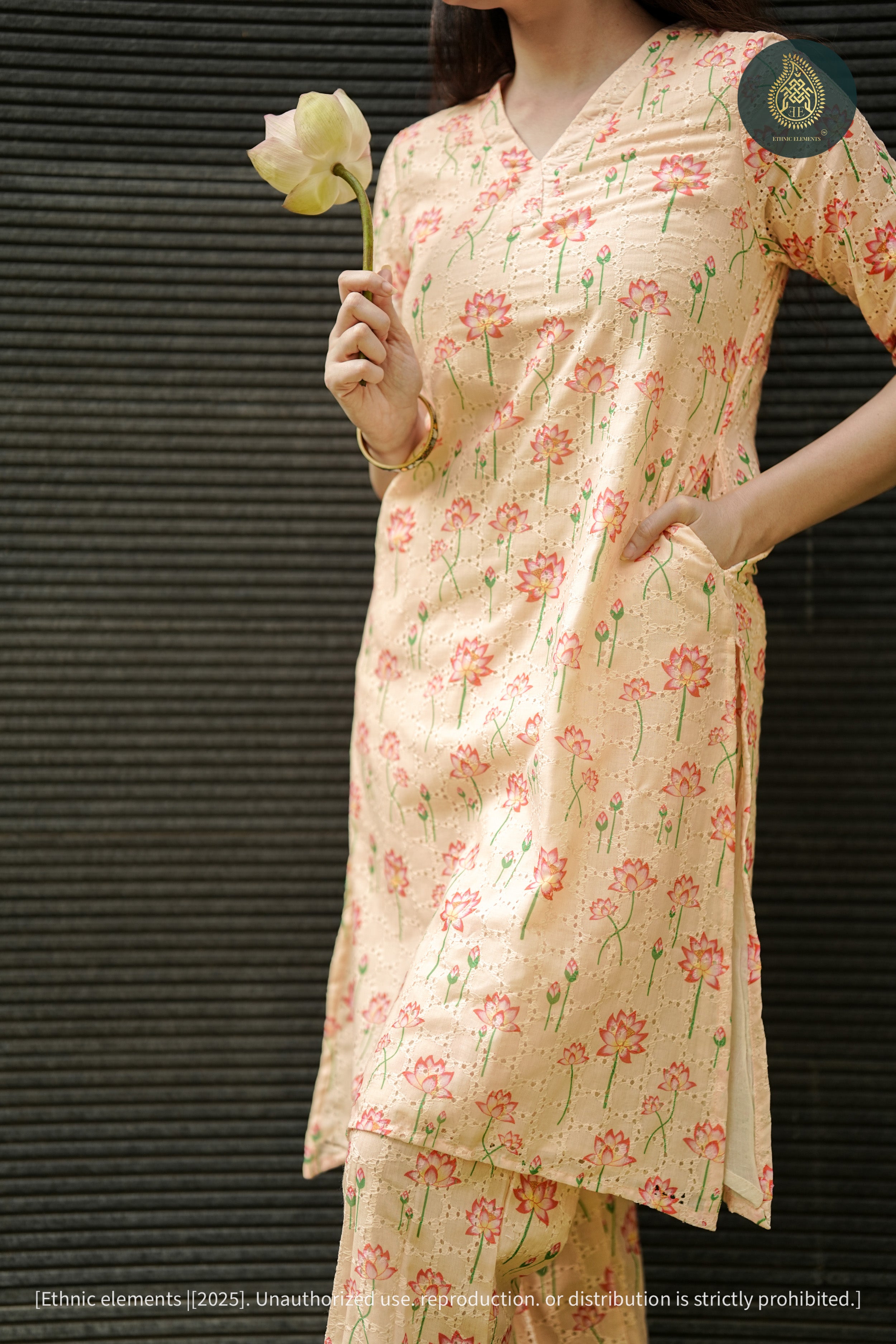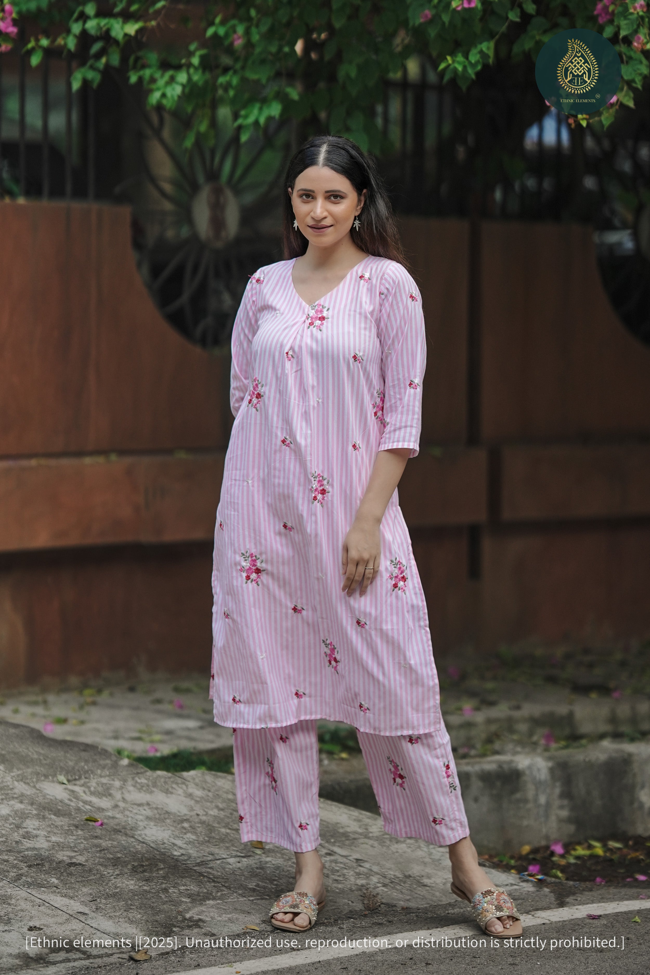 Fleur Rose Cord Set - Embrioded Cotton 2Pc Set