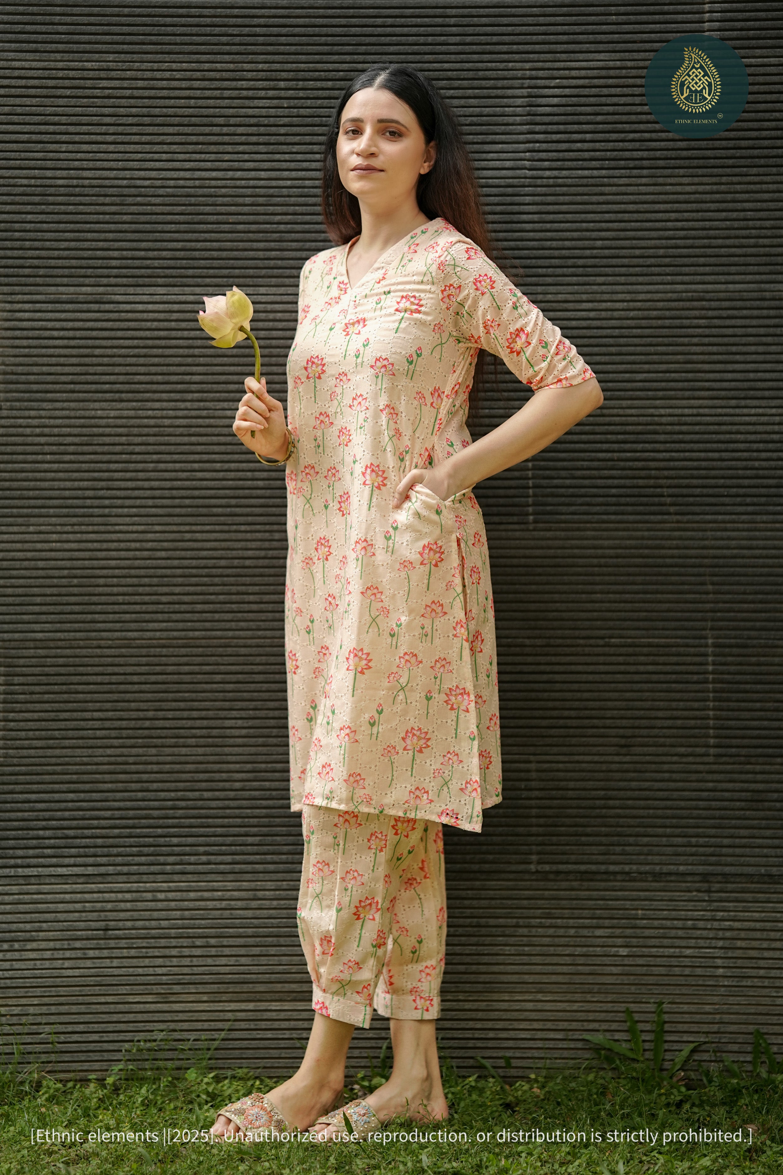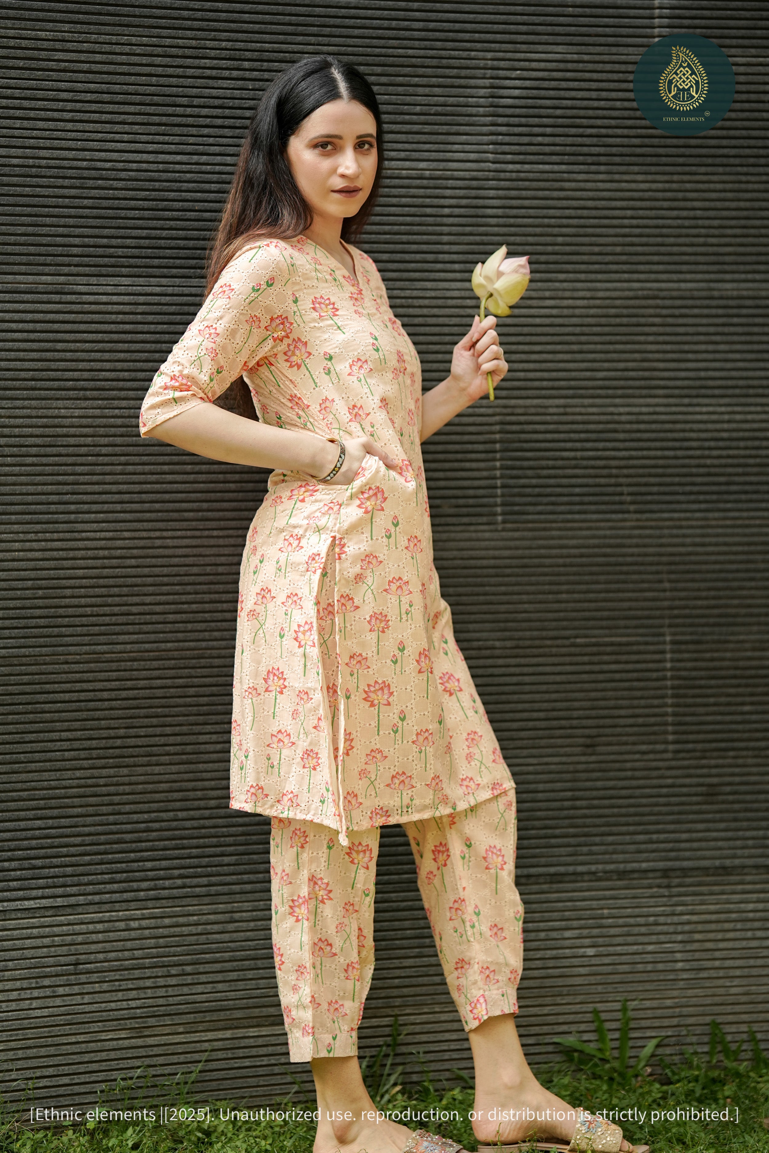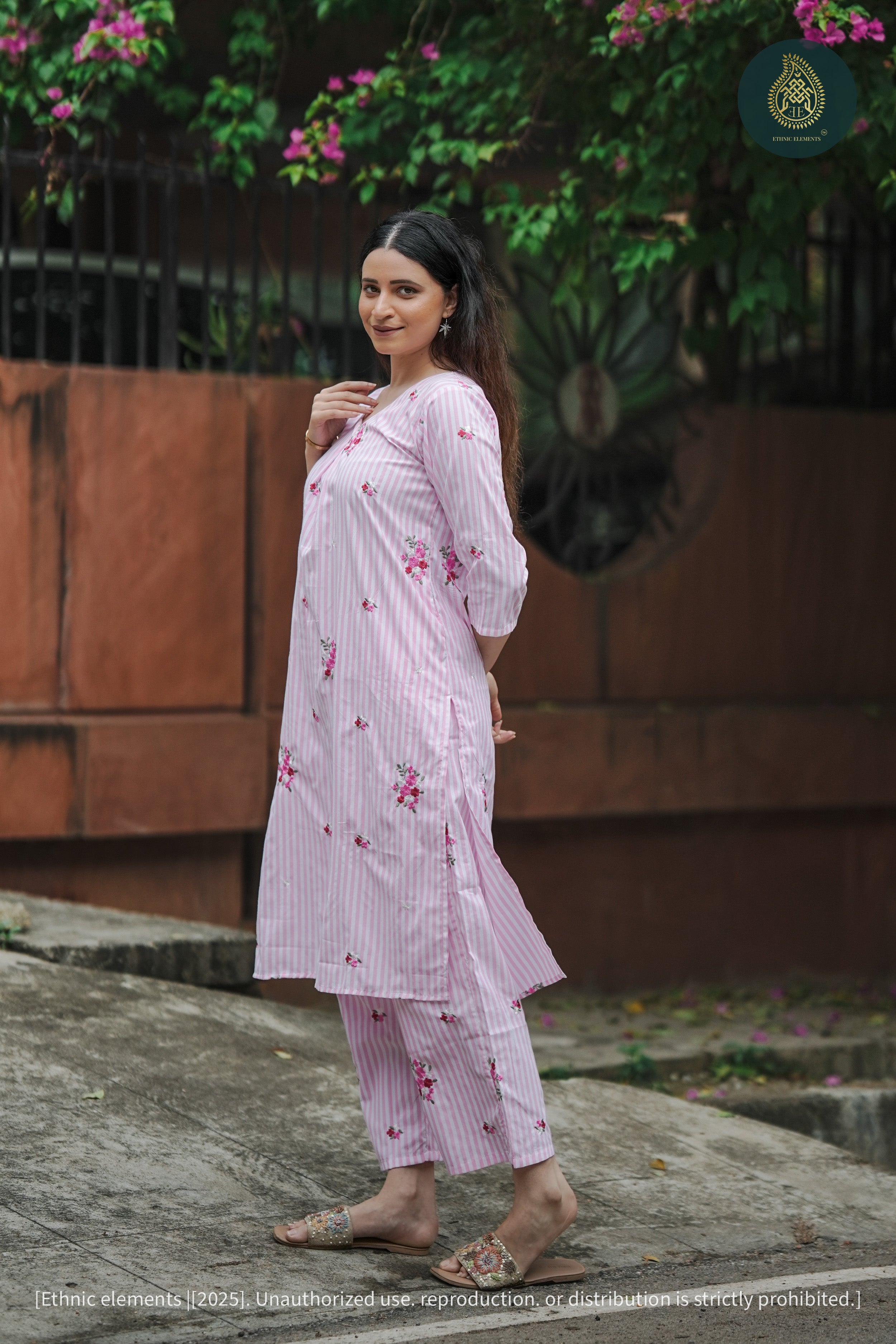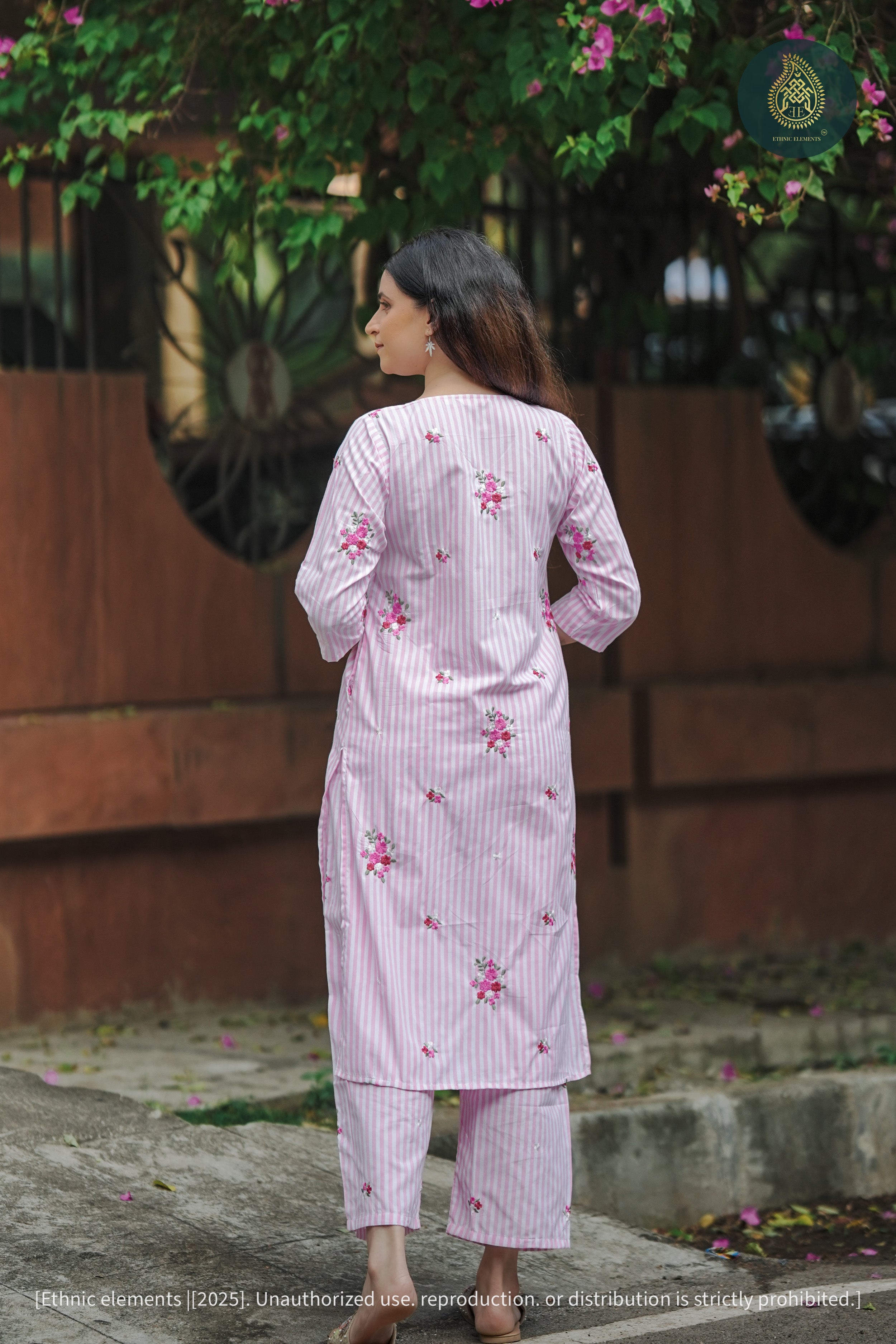 Stitched 2pc Cotton Suit Set – Blush Fern