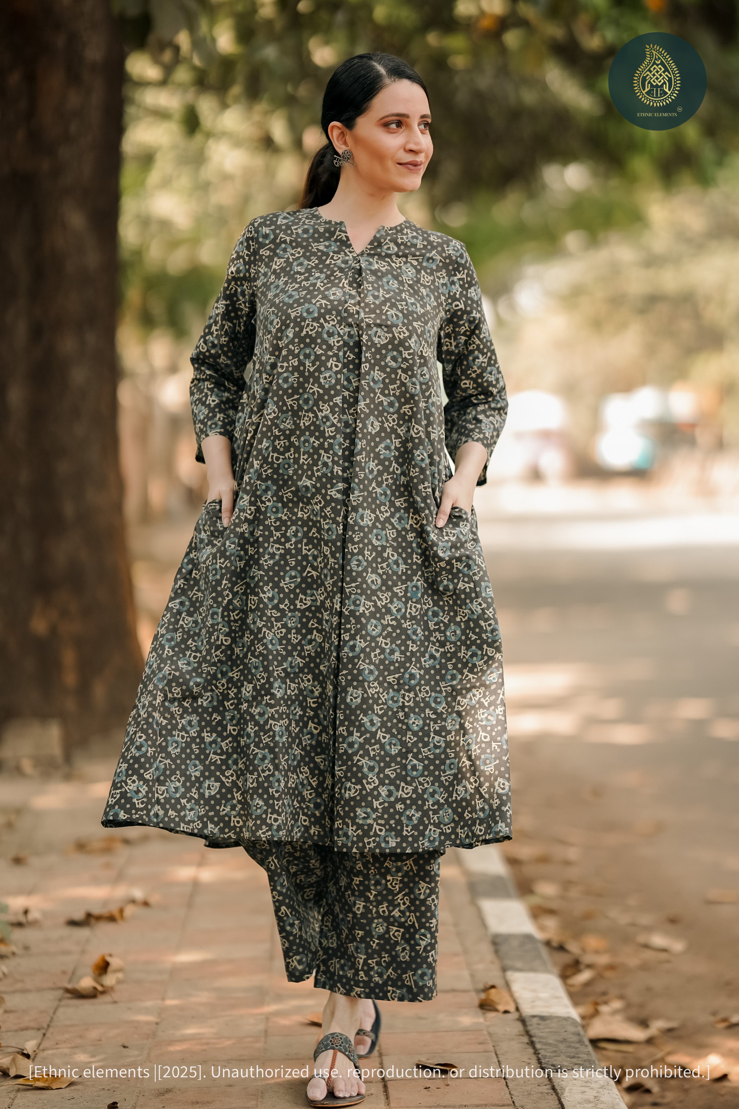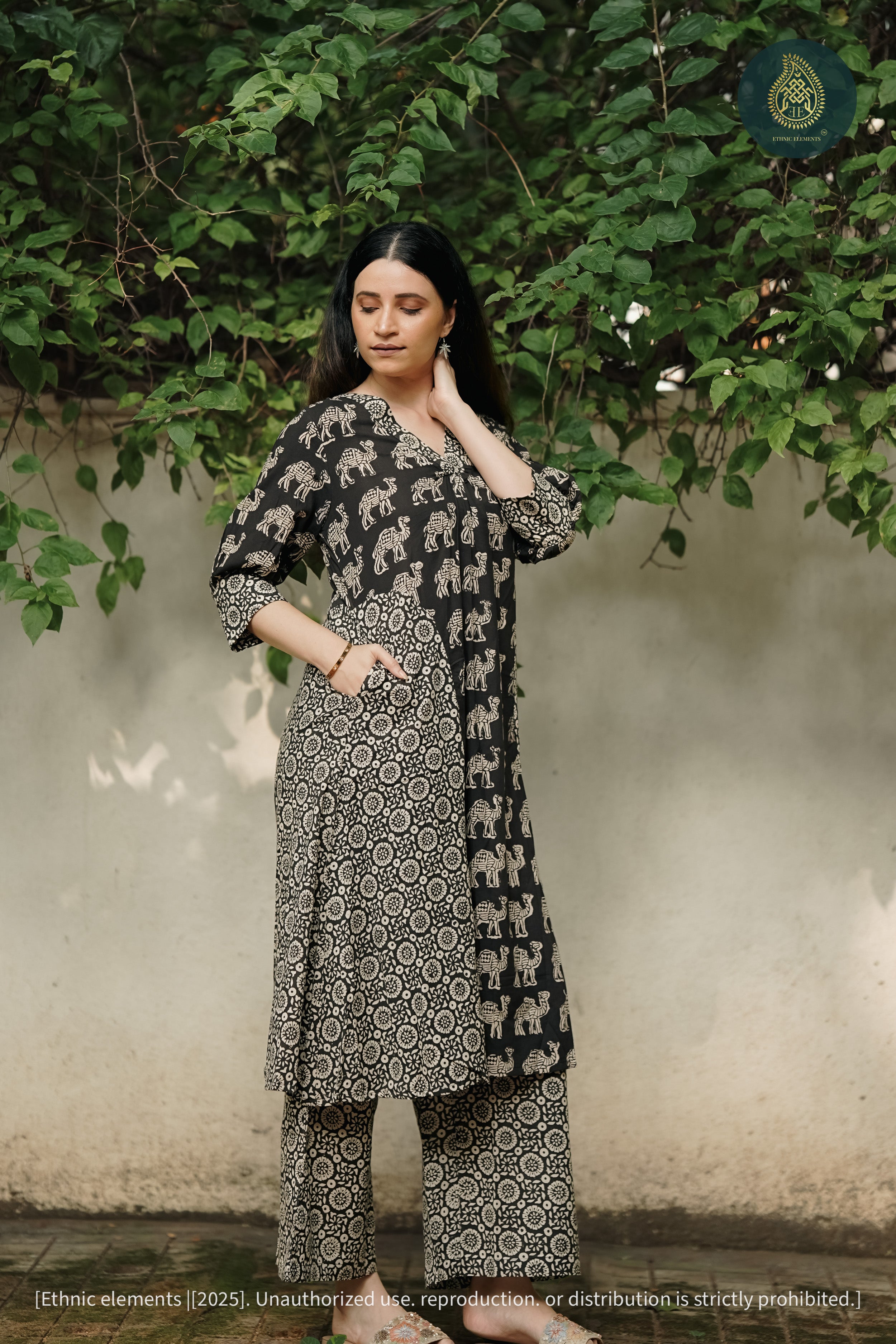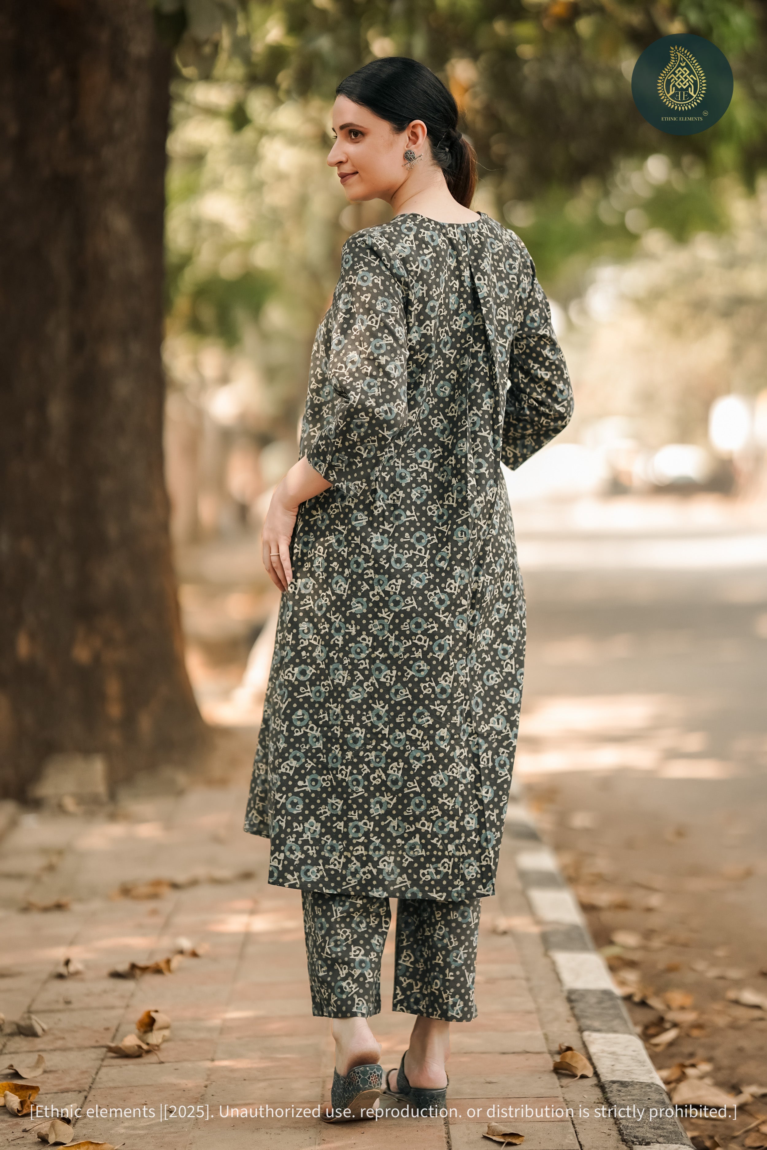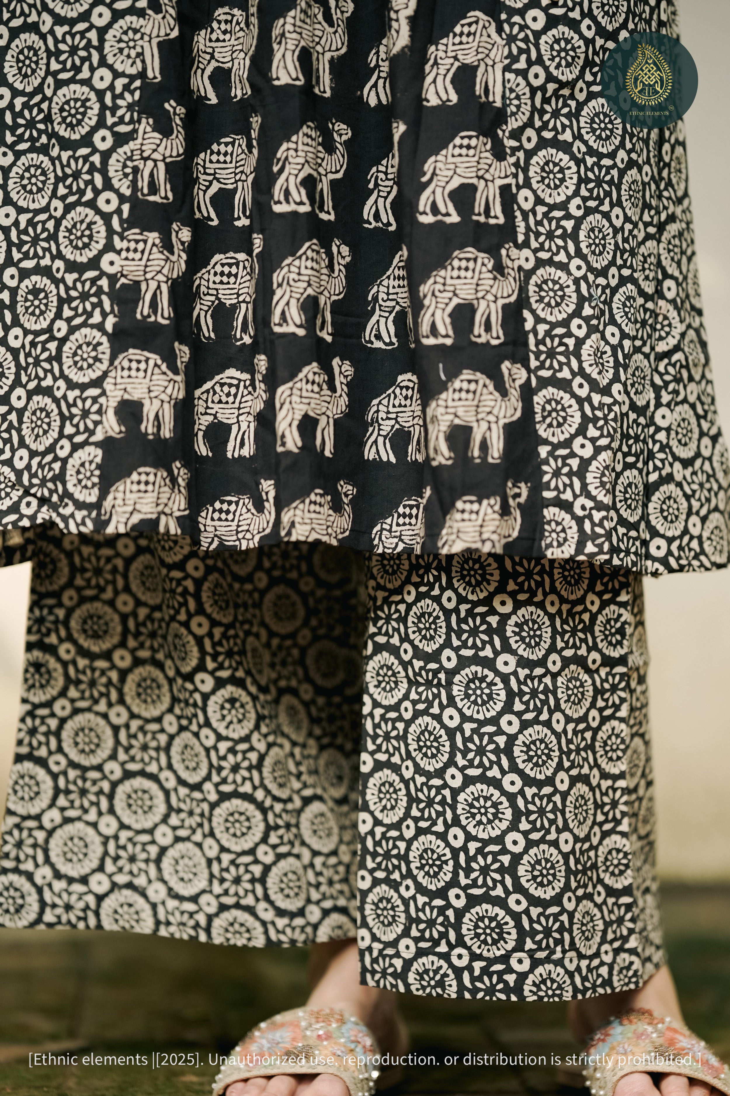 Siyah Cord Set - Hanblock Printed Cotton 2Pc Set