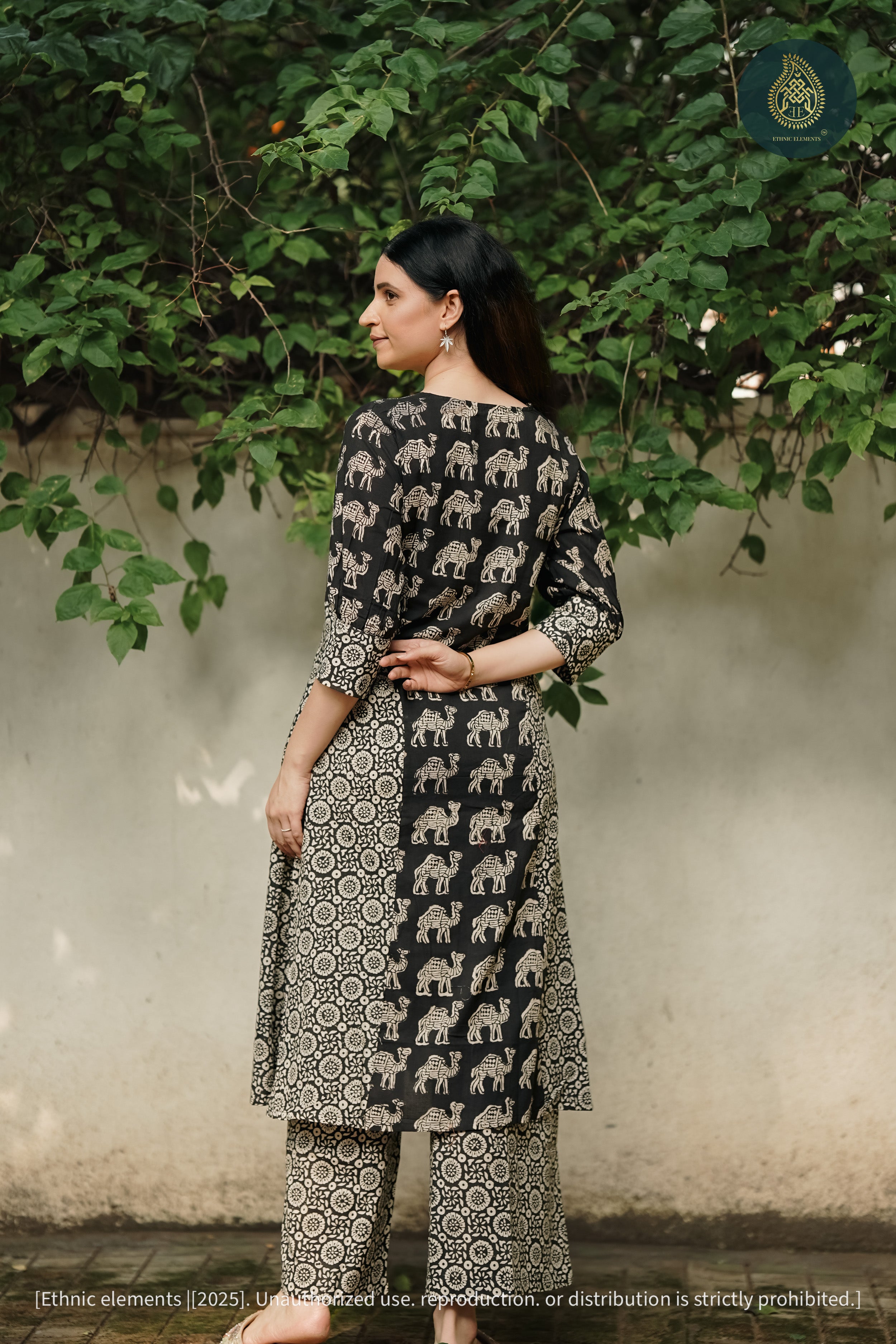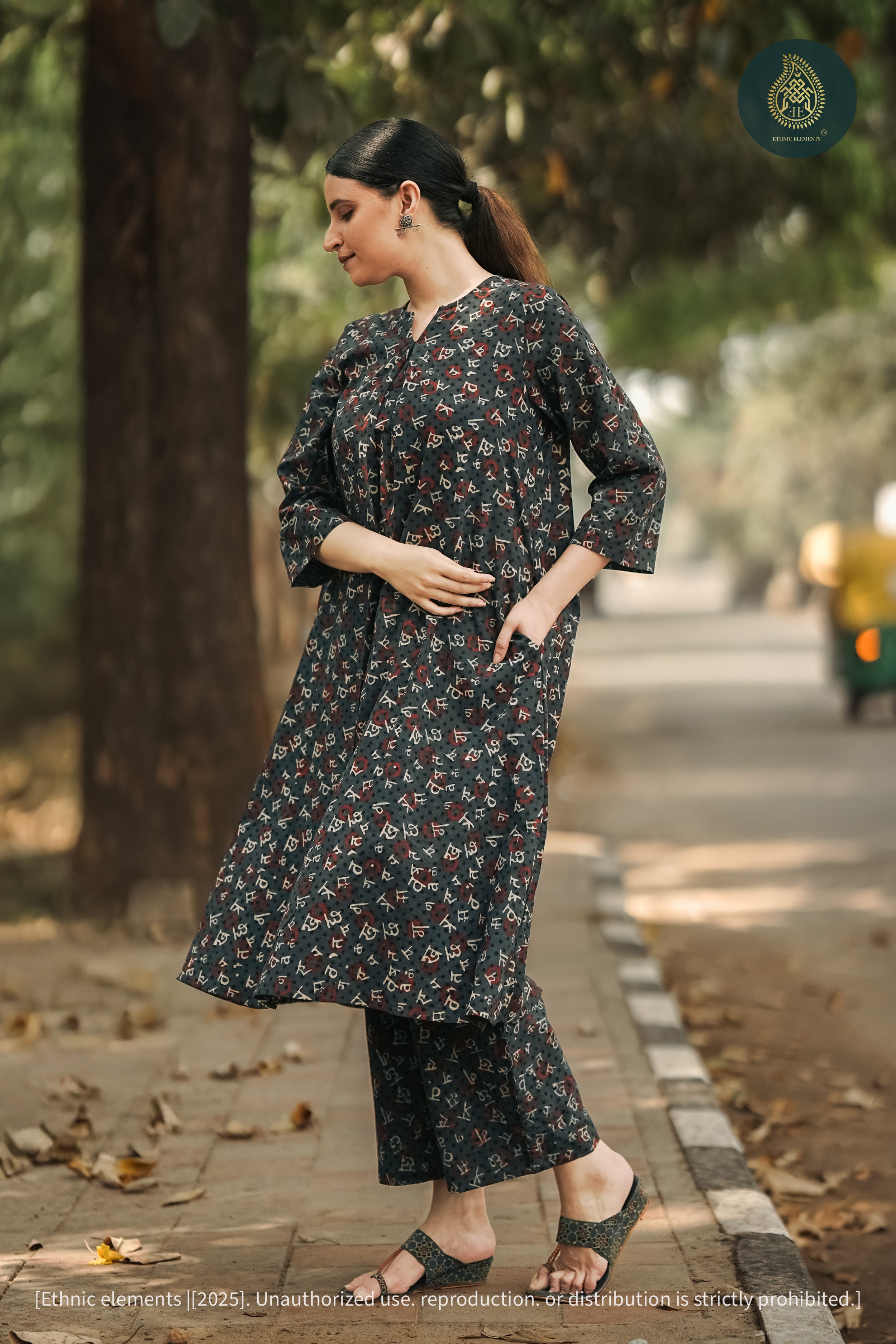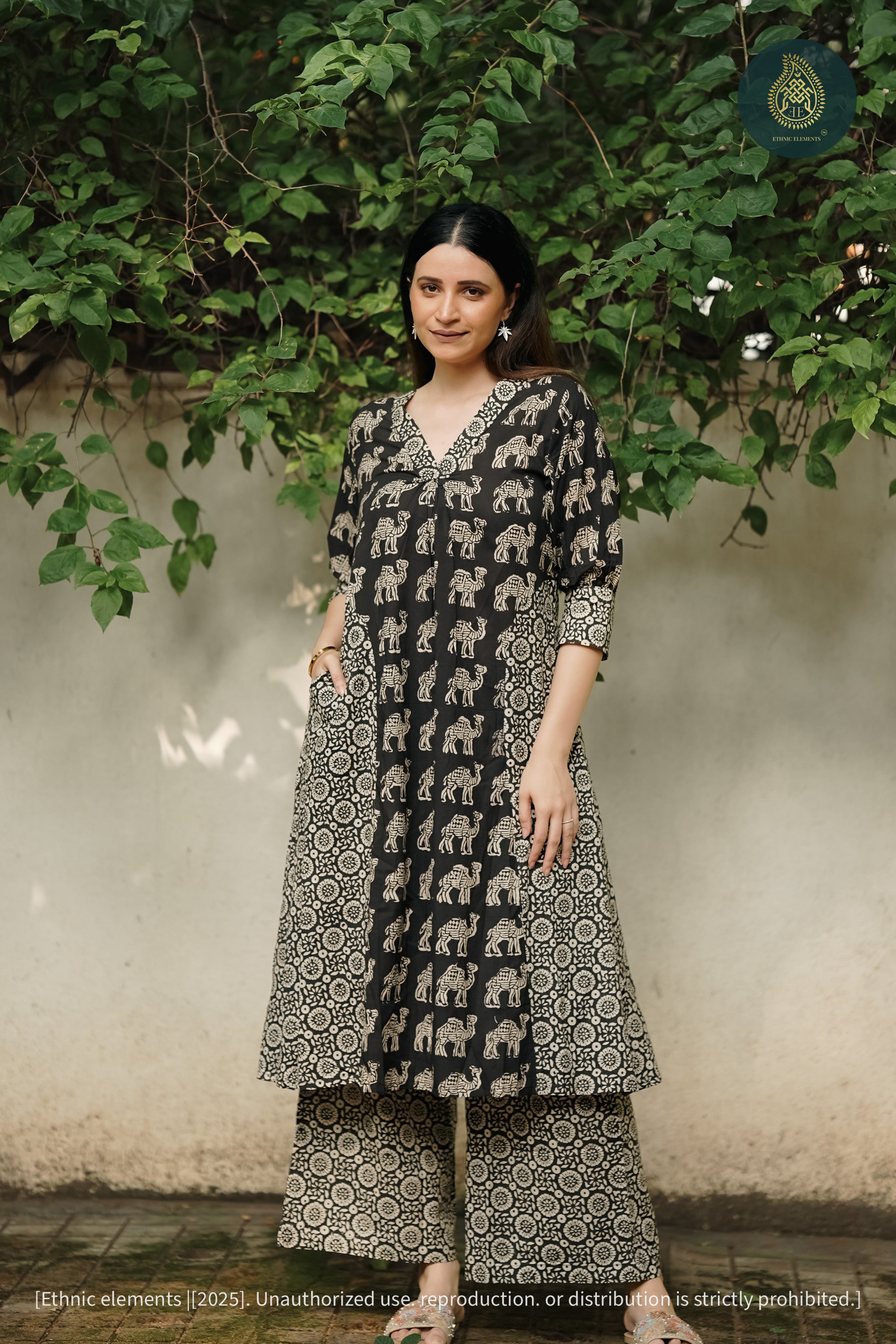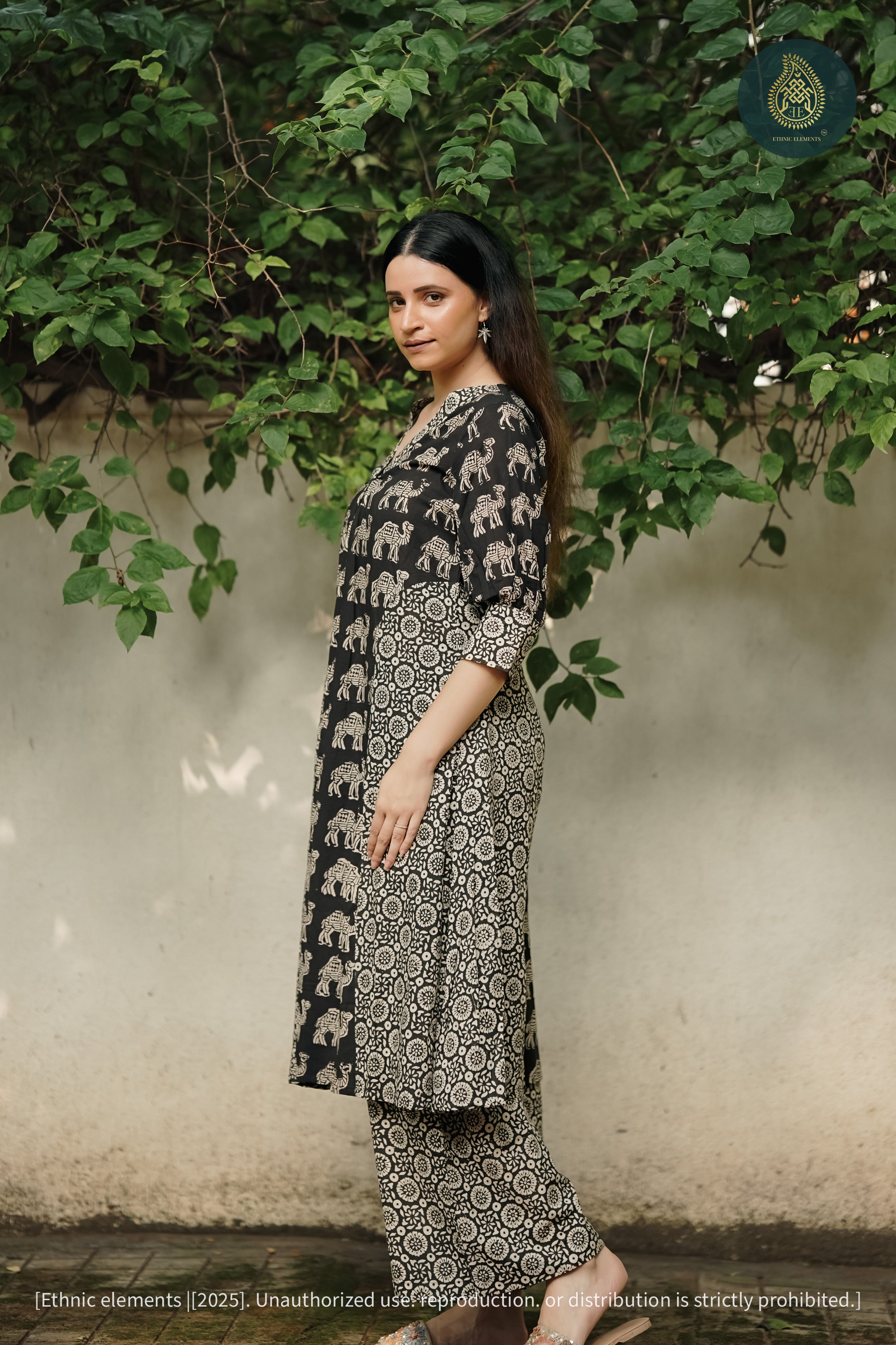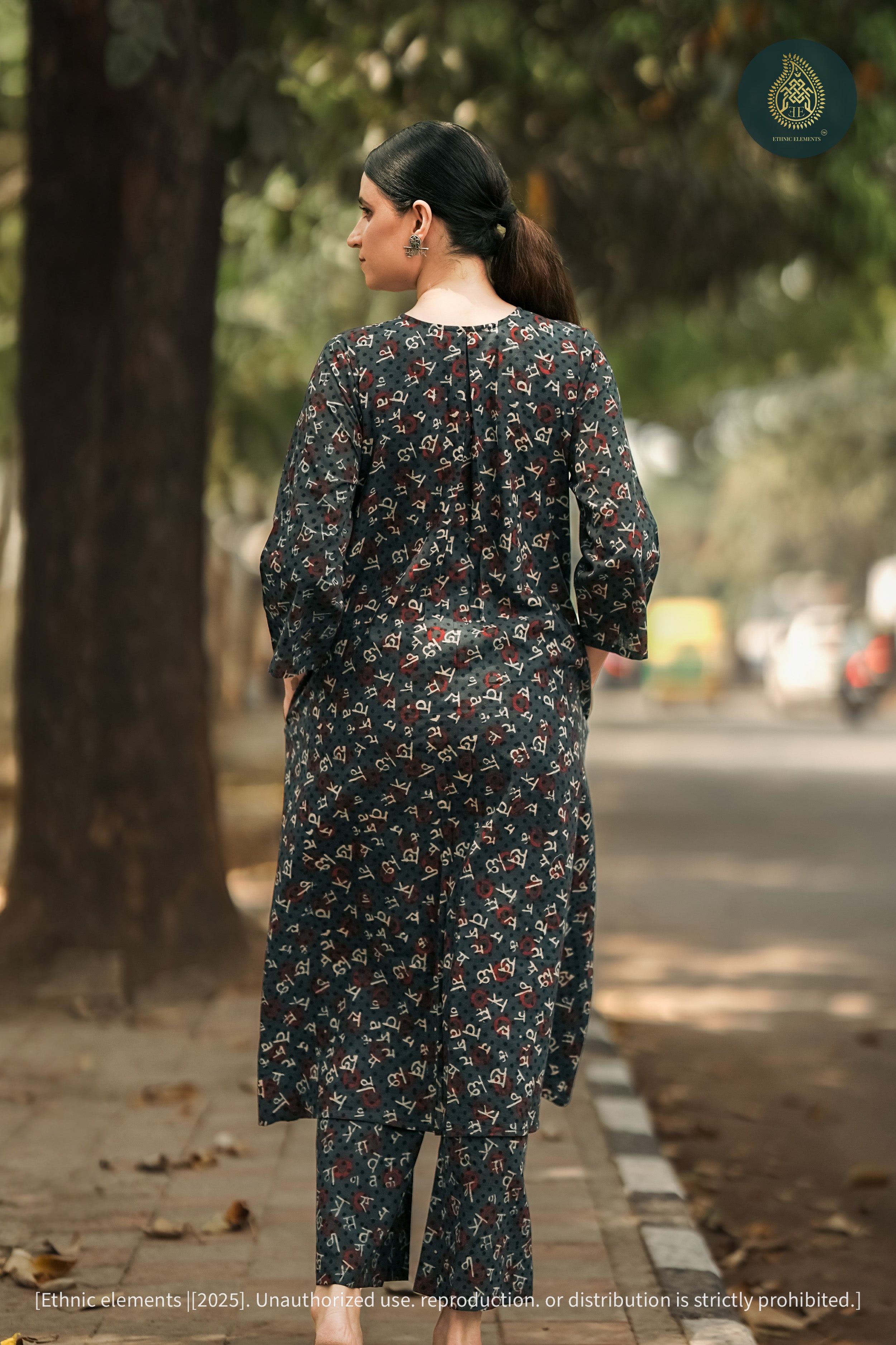 Siyah Cord Set - Hanblock Printed Cotton 2Pc Set