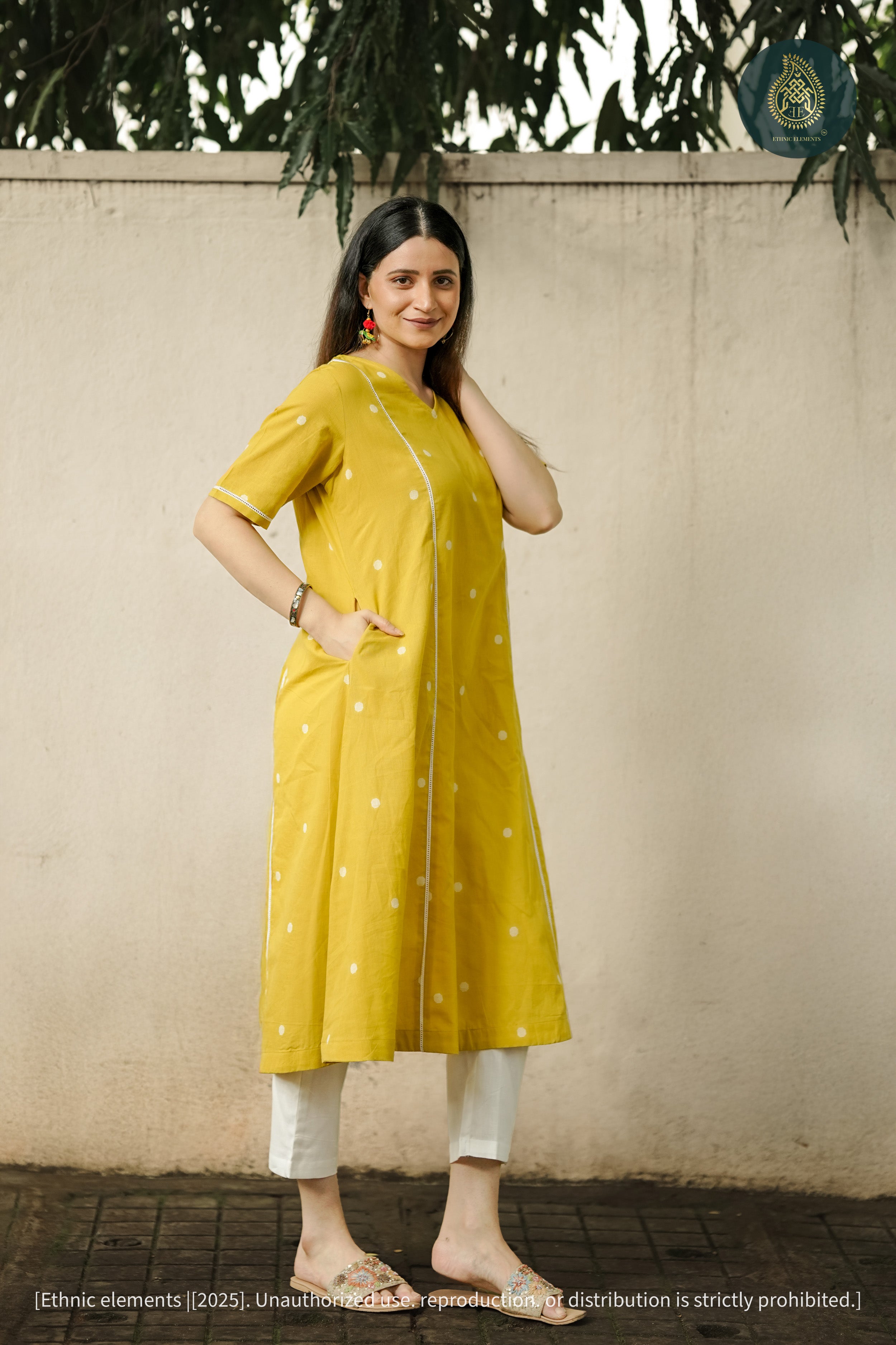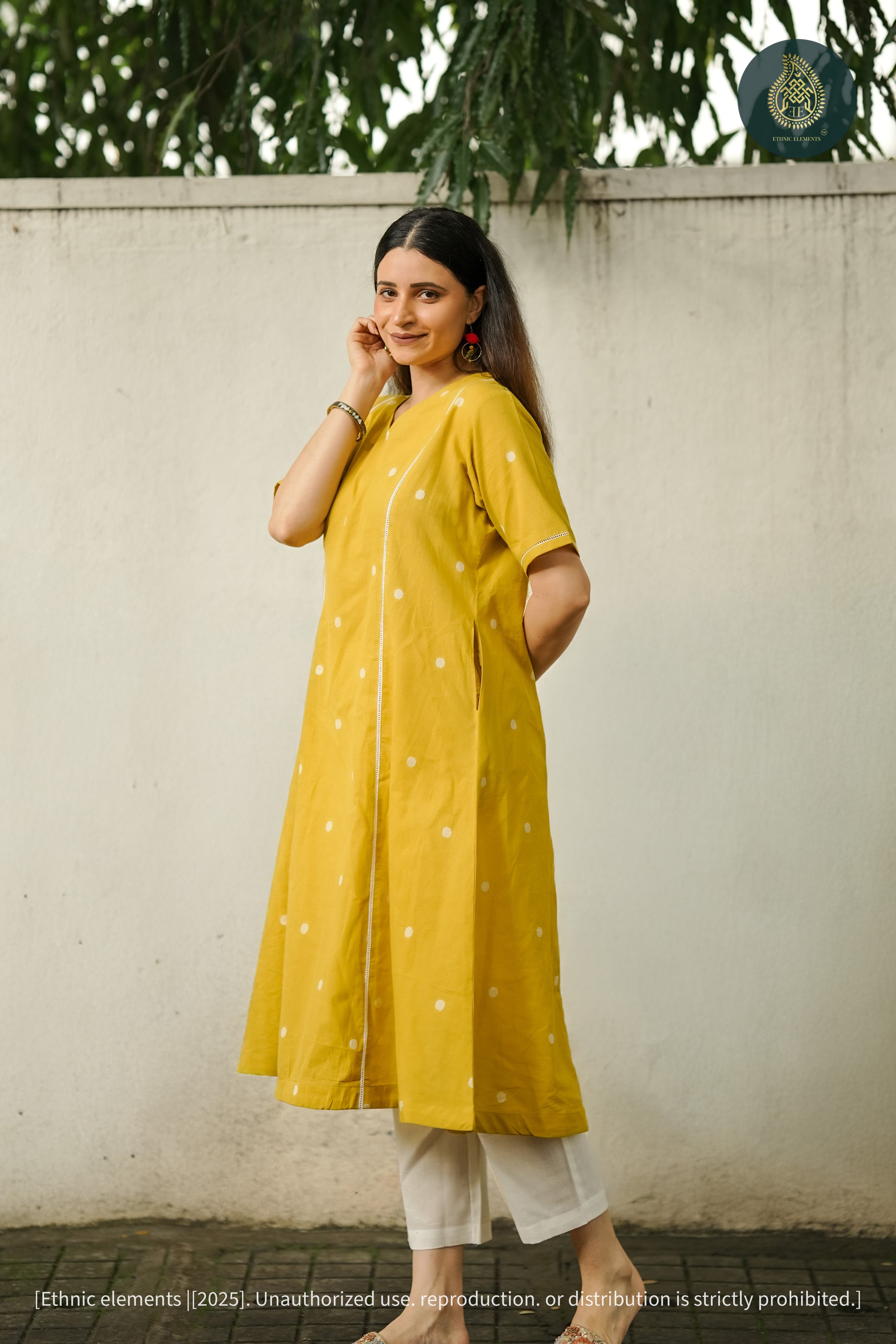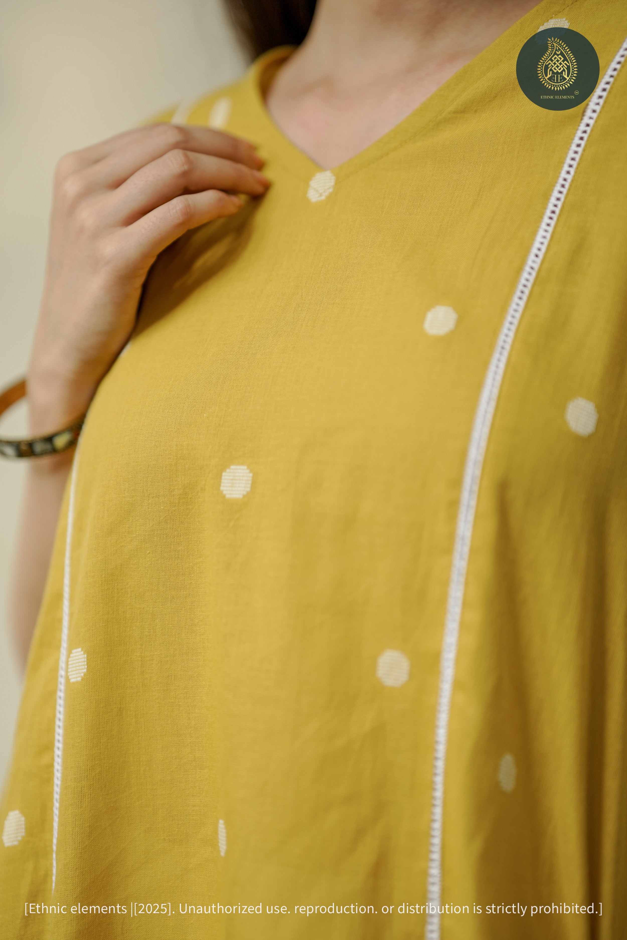 Haldi Dot Cord Set - Handloom Weaved Cotton 2Pc Set