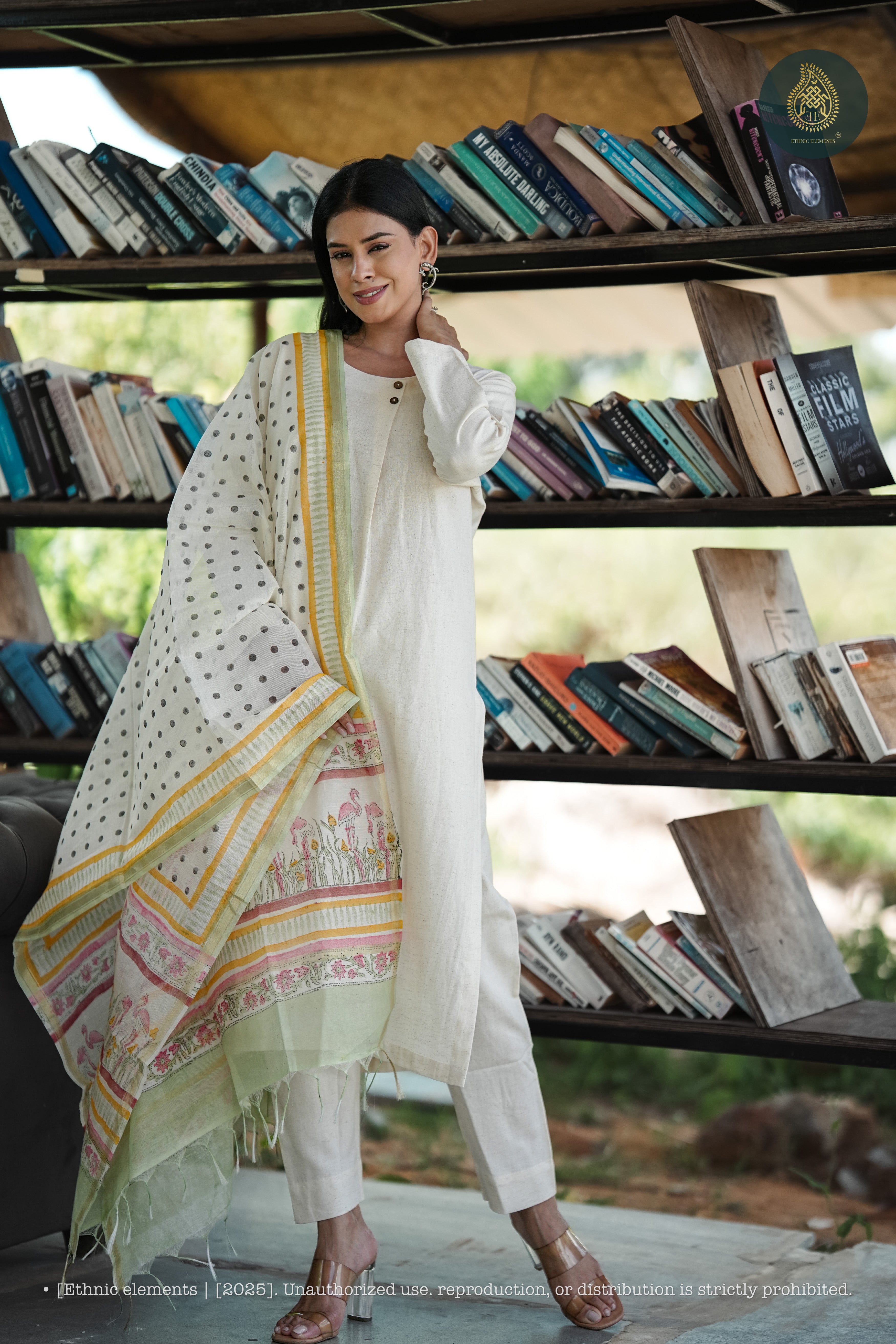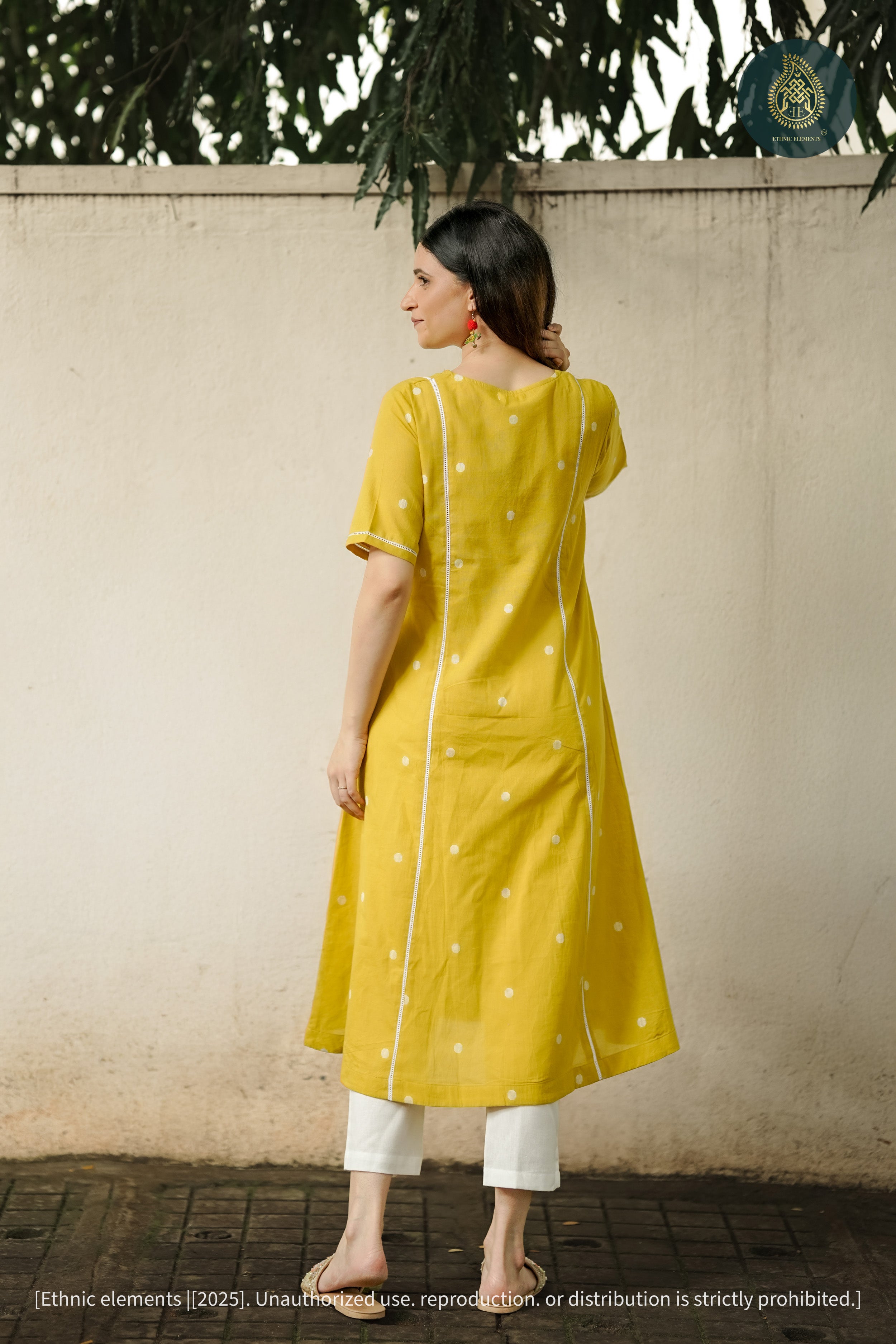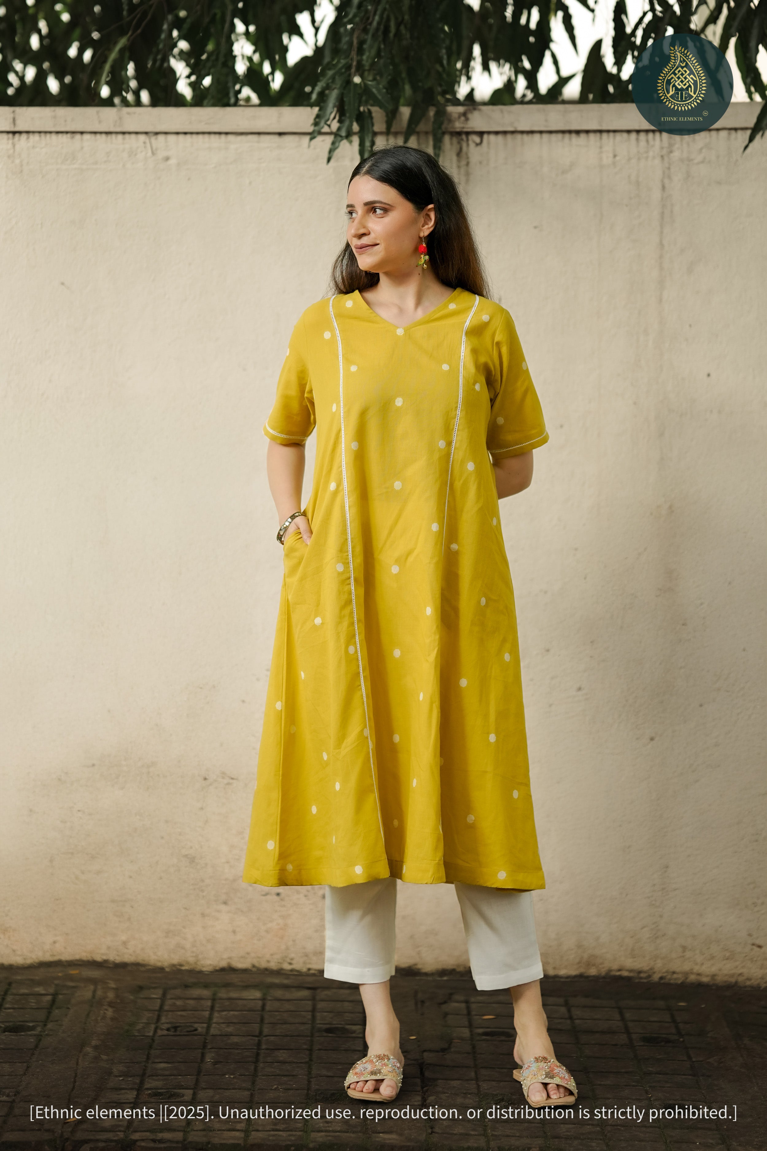 Haldi Dot Cord Set - Handloom Weaved Cotton 2Pc Set