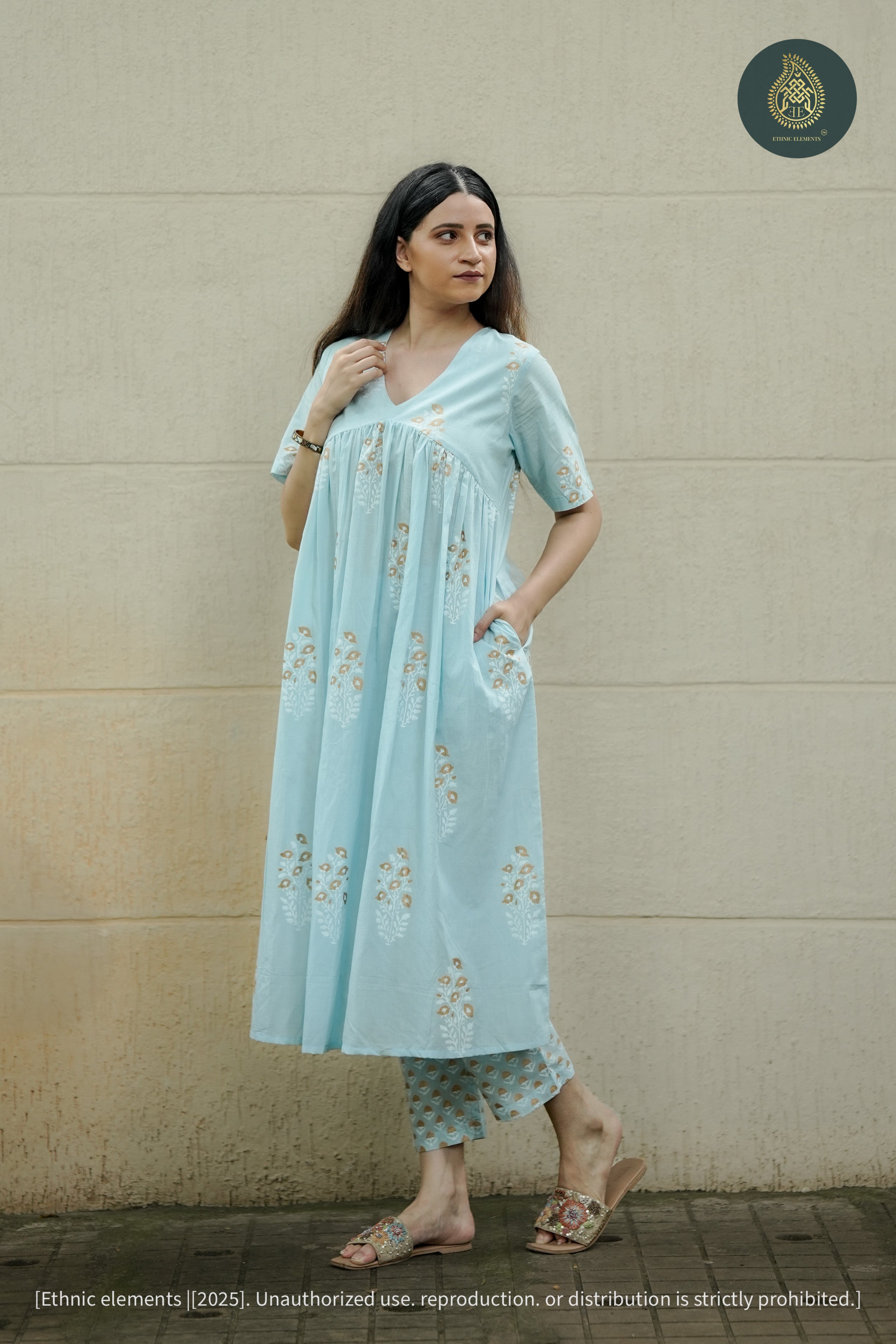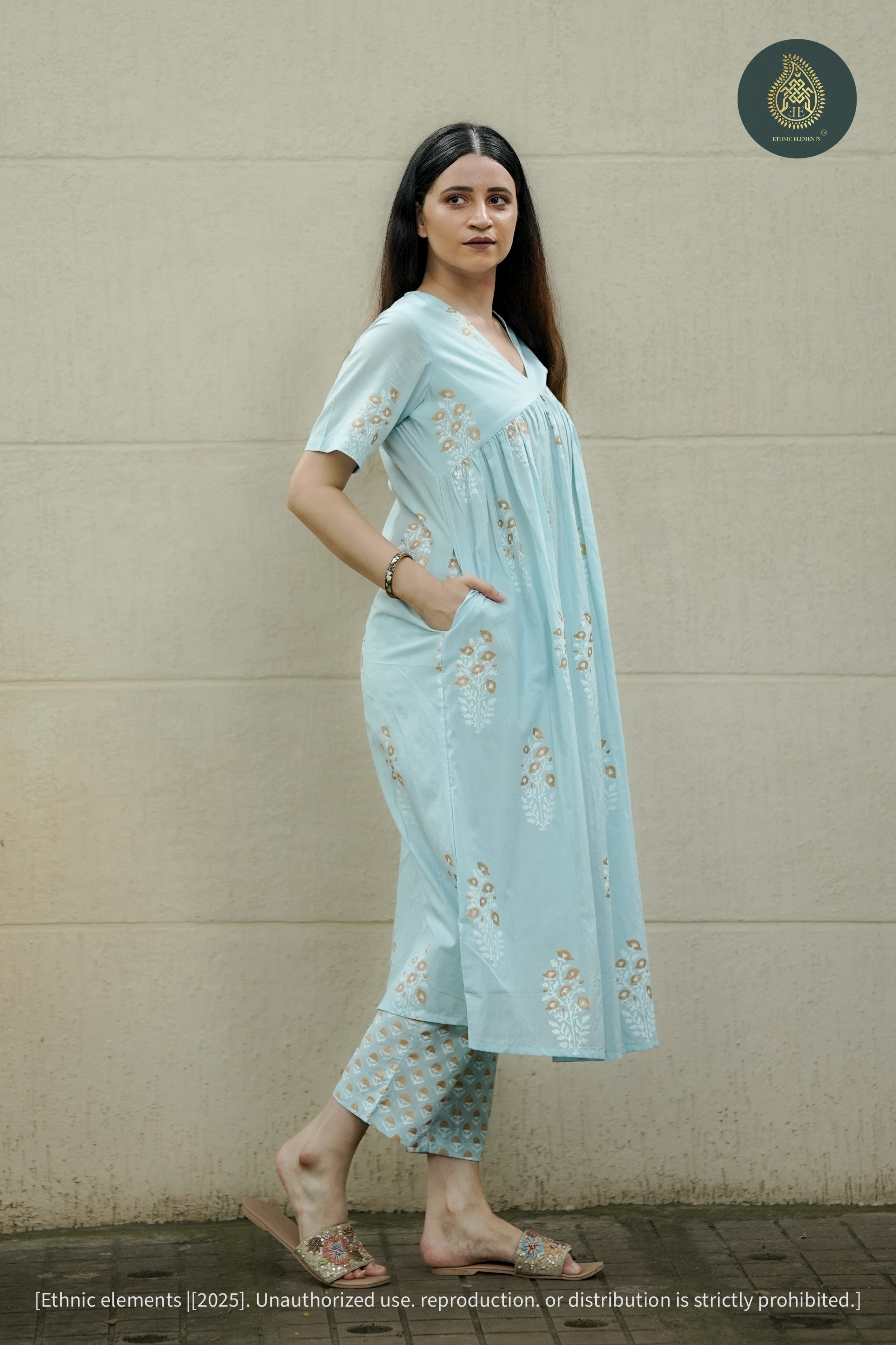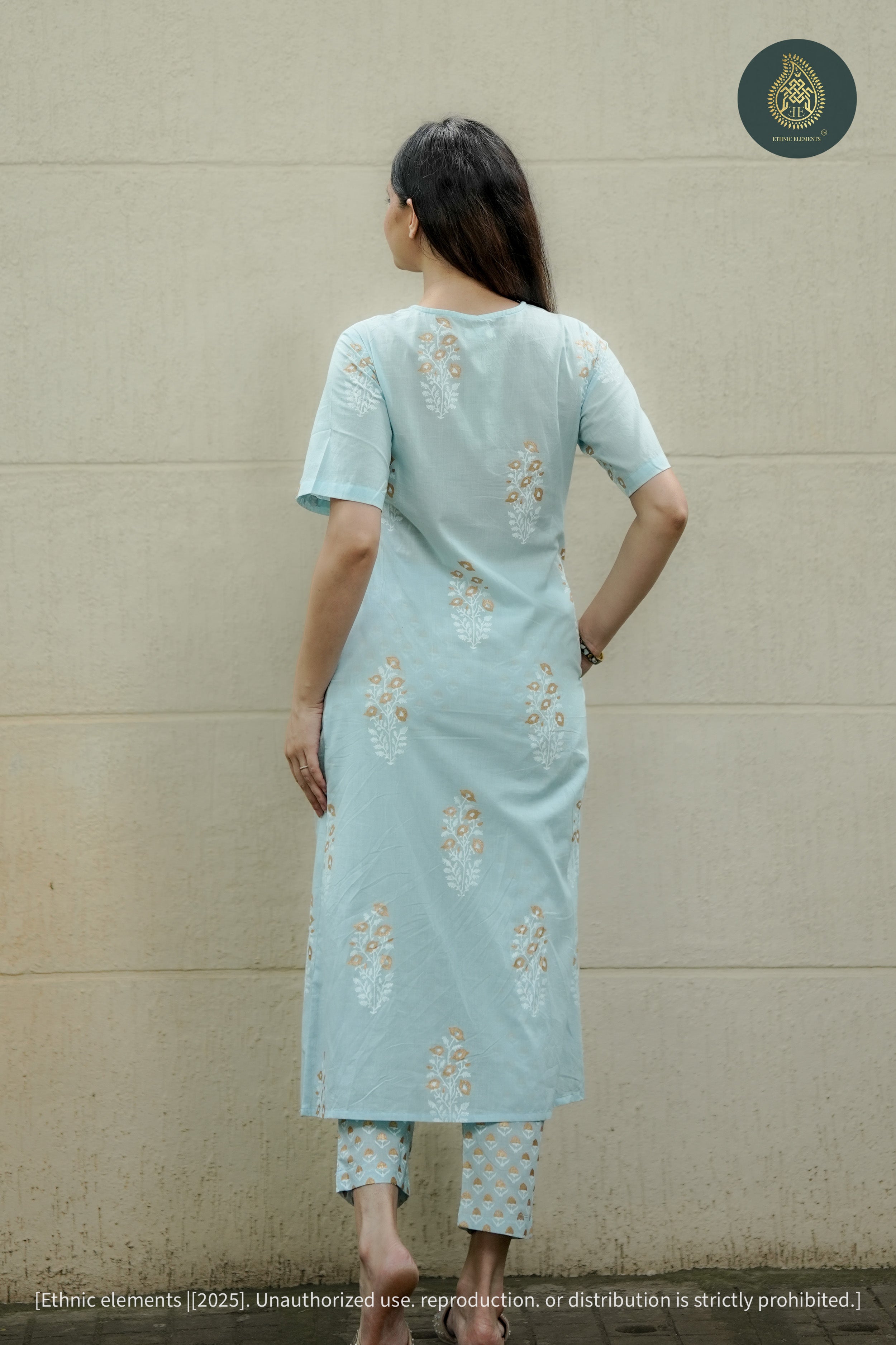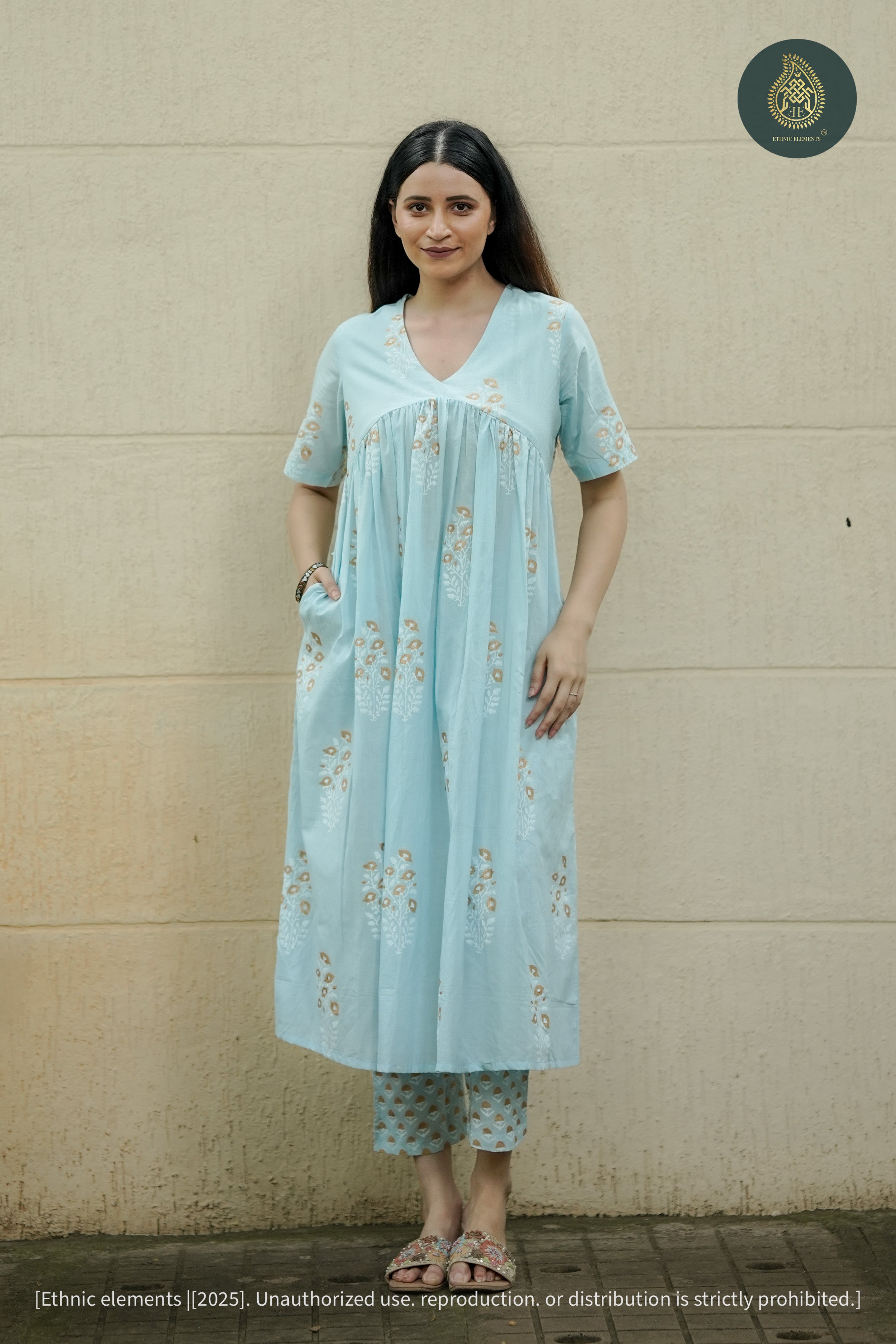 Sky Cord Set - Handblock Printed Cotton 2Pc Set