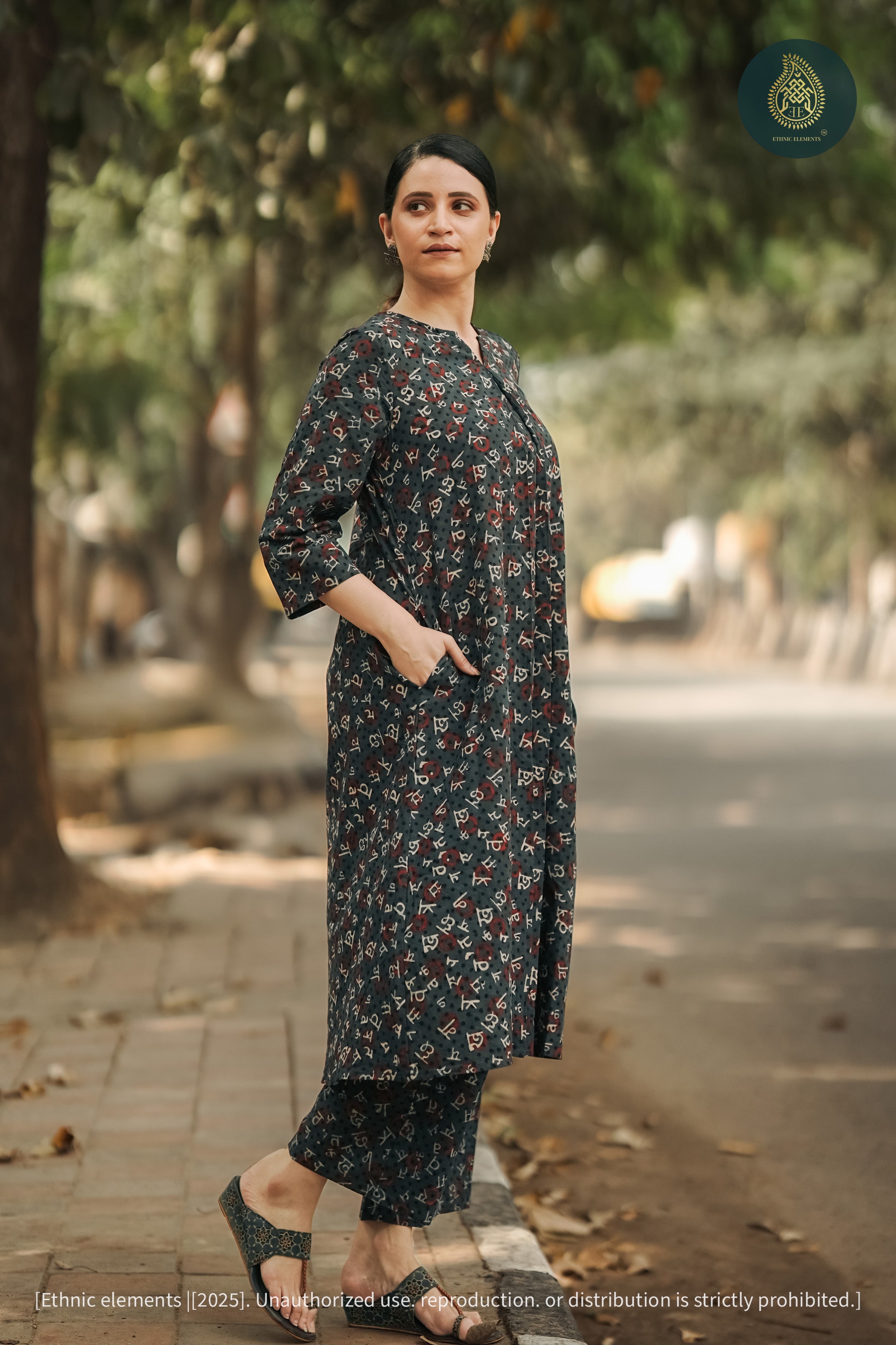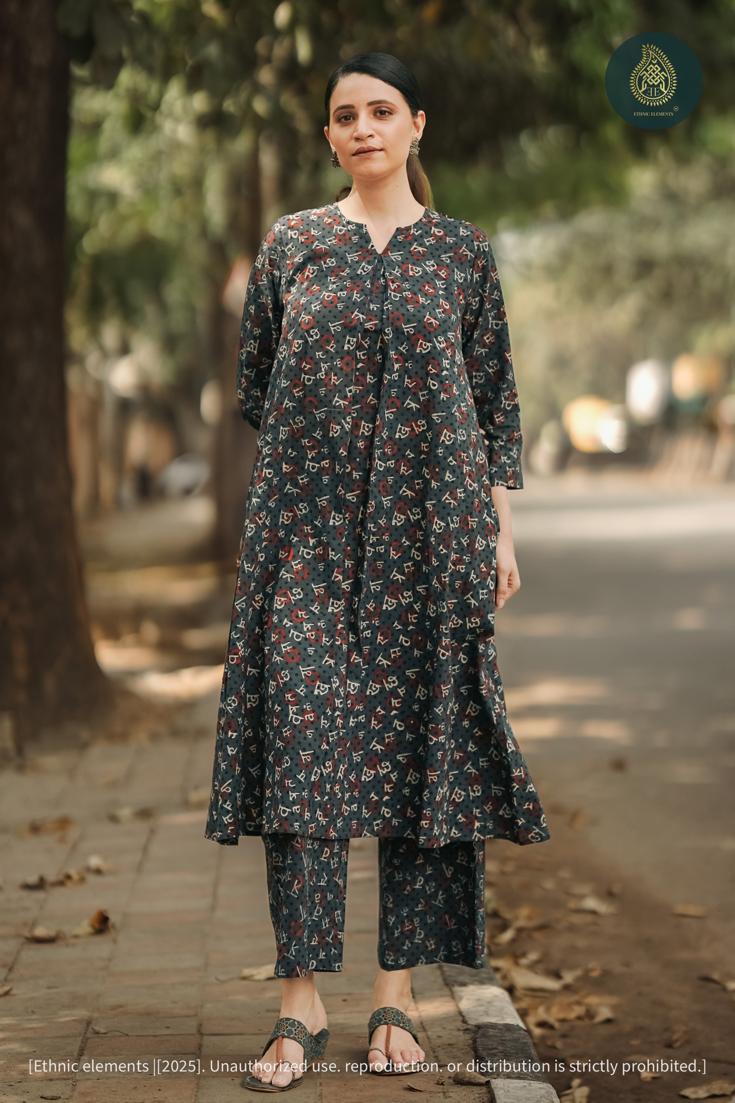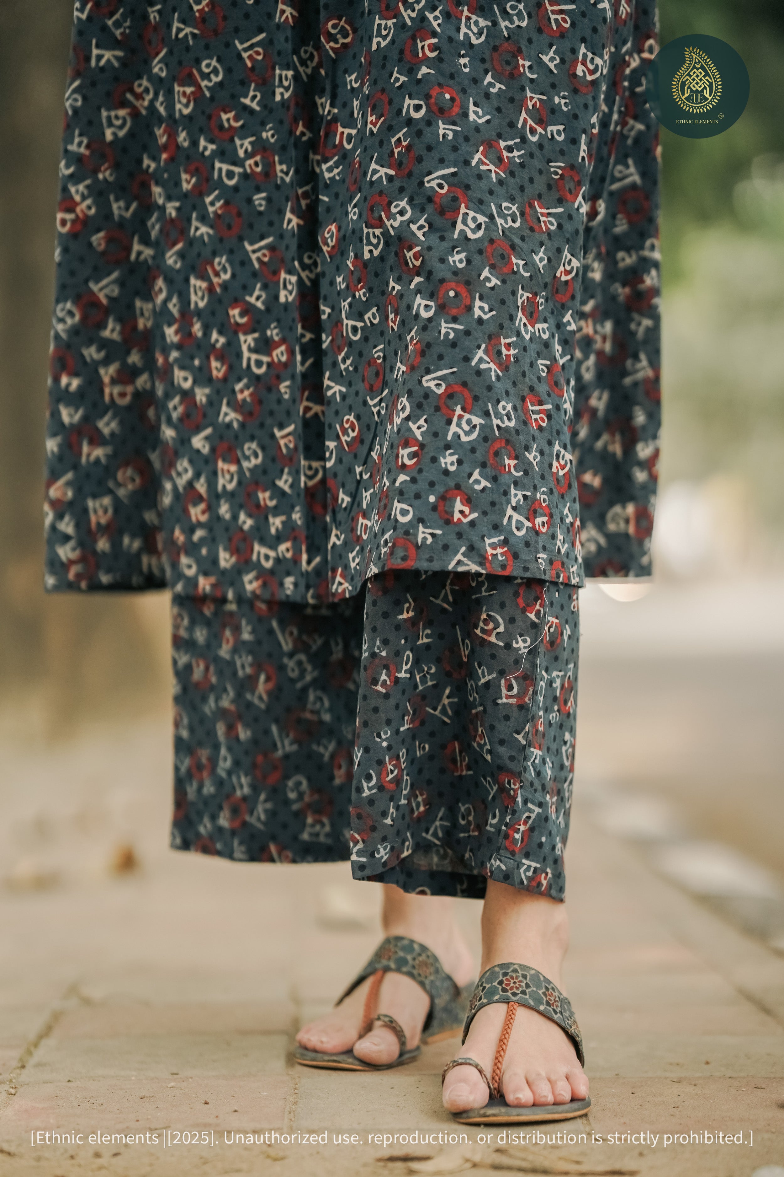 Akshar Mati Cord Set - Ajrakh Handblock Printed 2Pc Set
