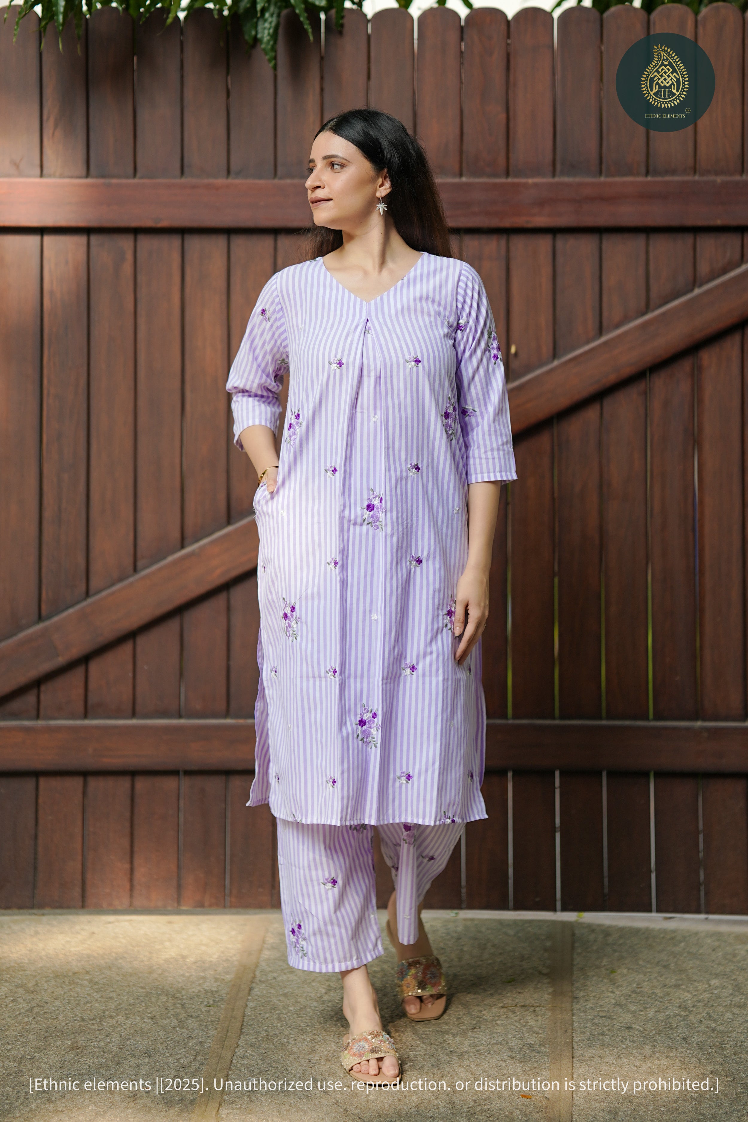 Spring Stripe Cord Set - Embrioded Cotton 2Pc Set