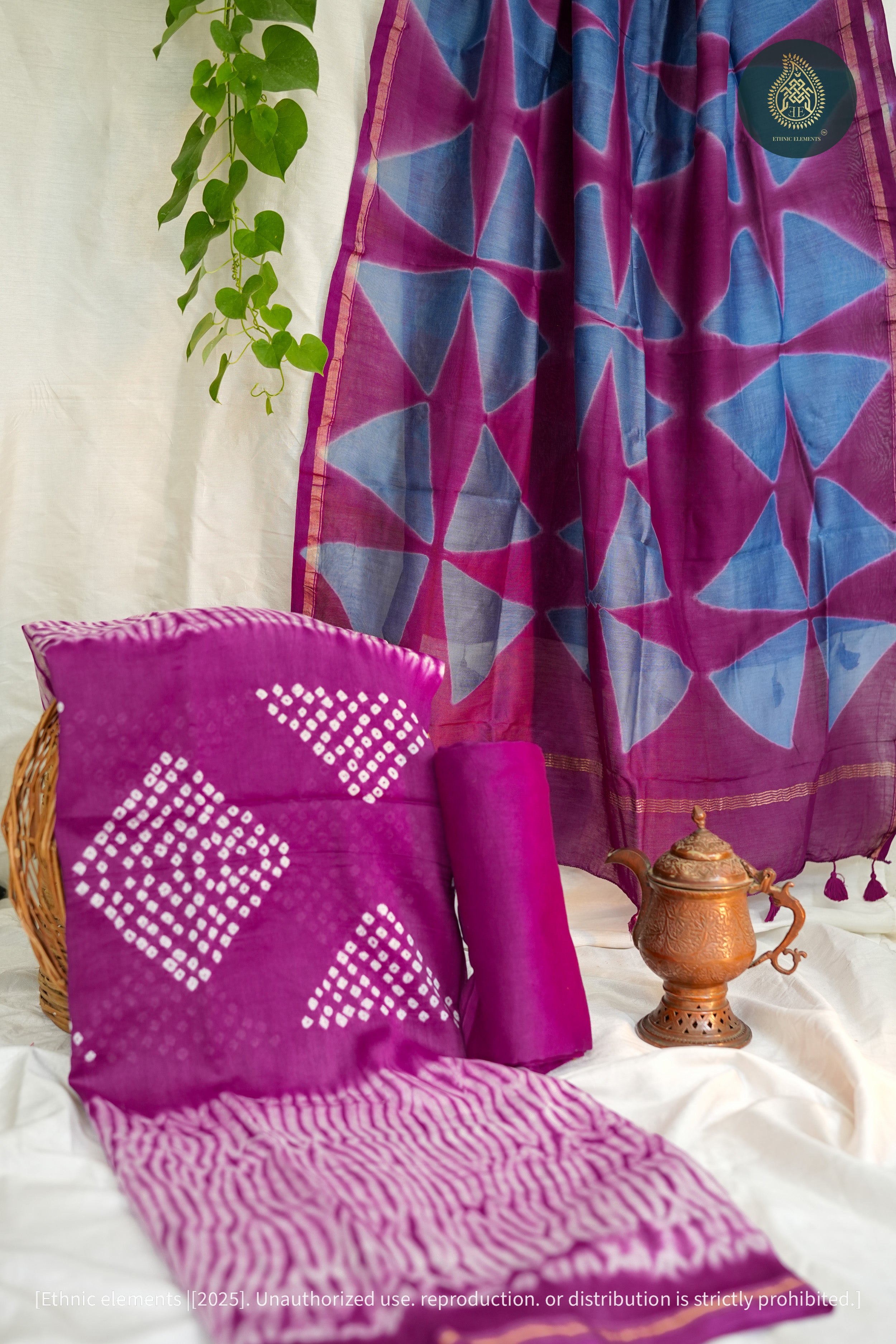 Rani Shibori Viraasat Chanderi Suit Set 3Pc