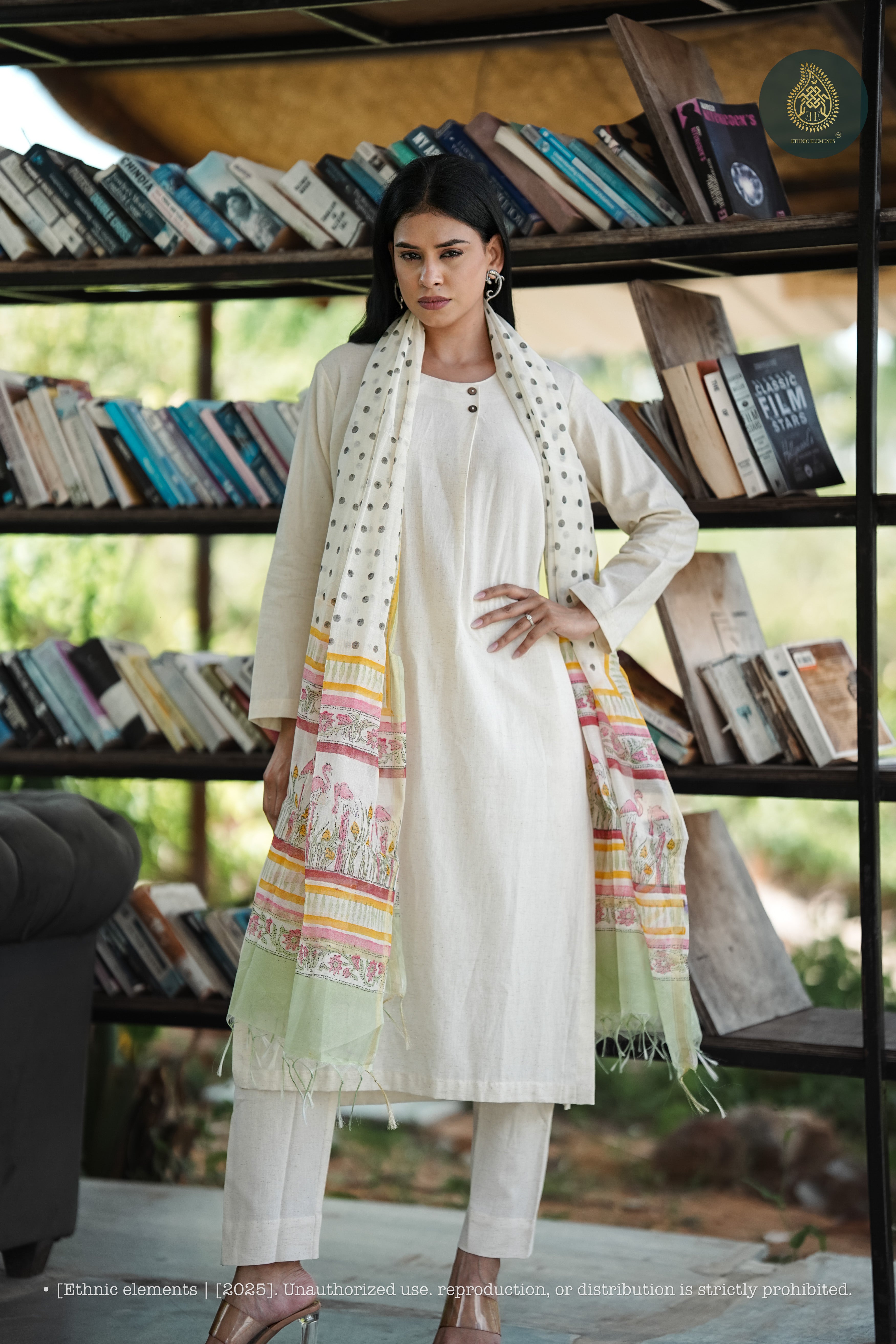 Indraneel Daali Jamdani Weaved Resham Muslin Kurta Dupatta Suit Set