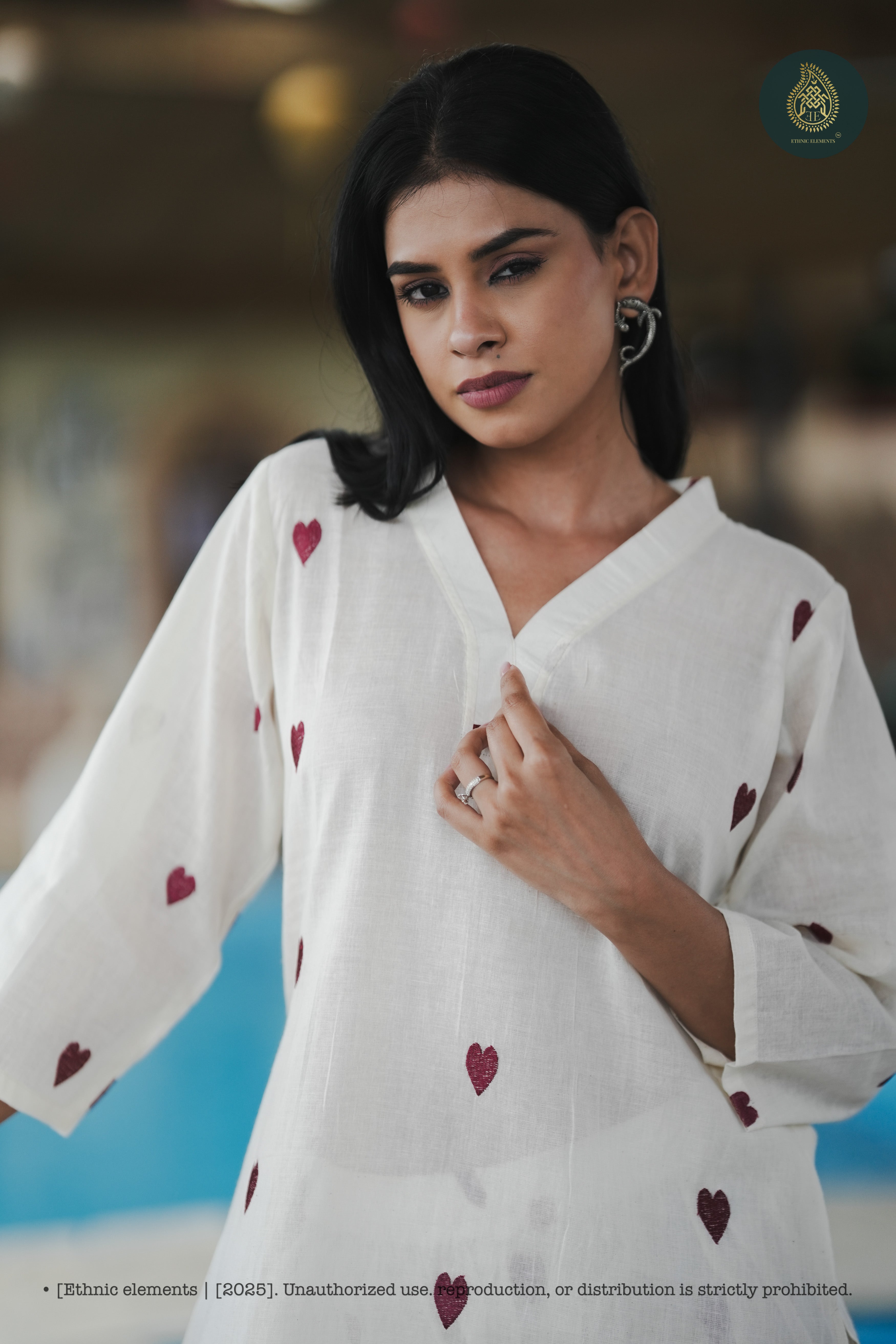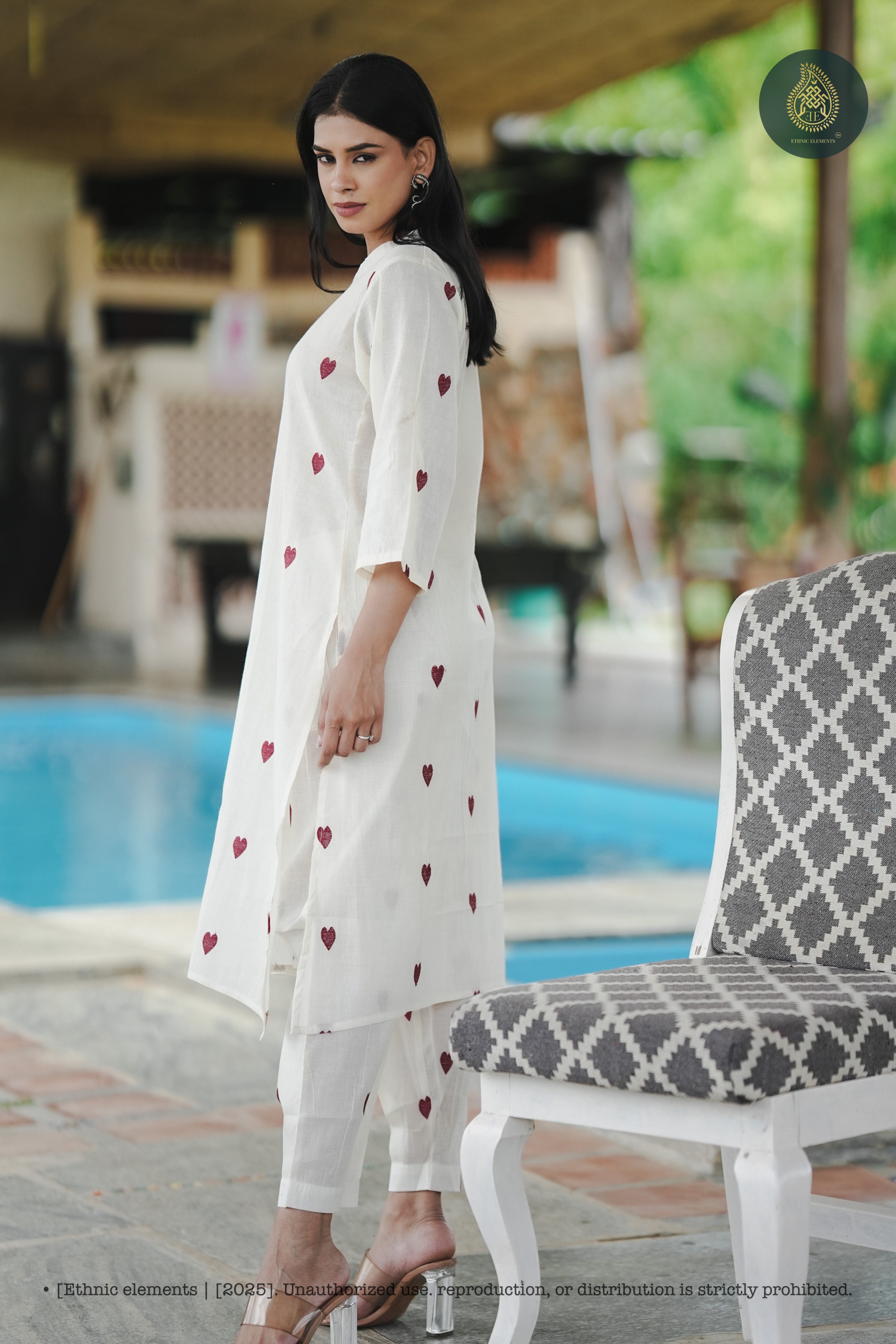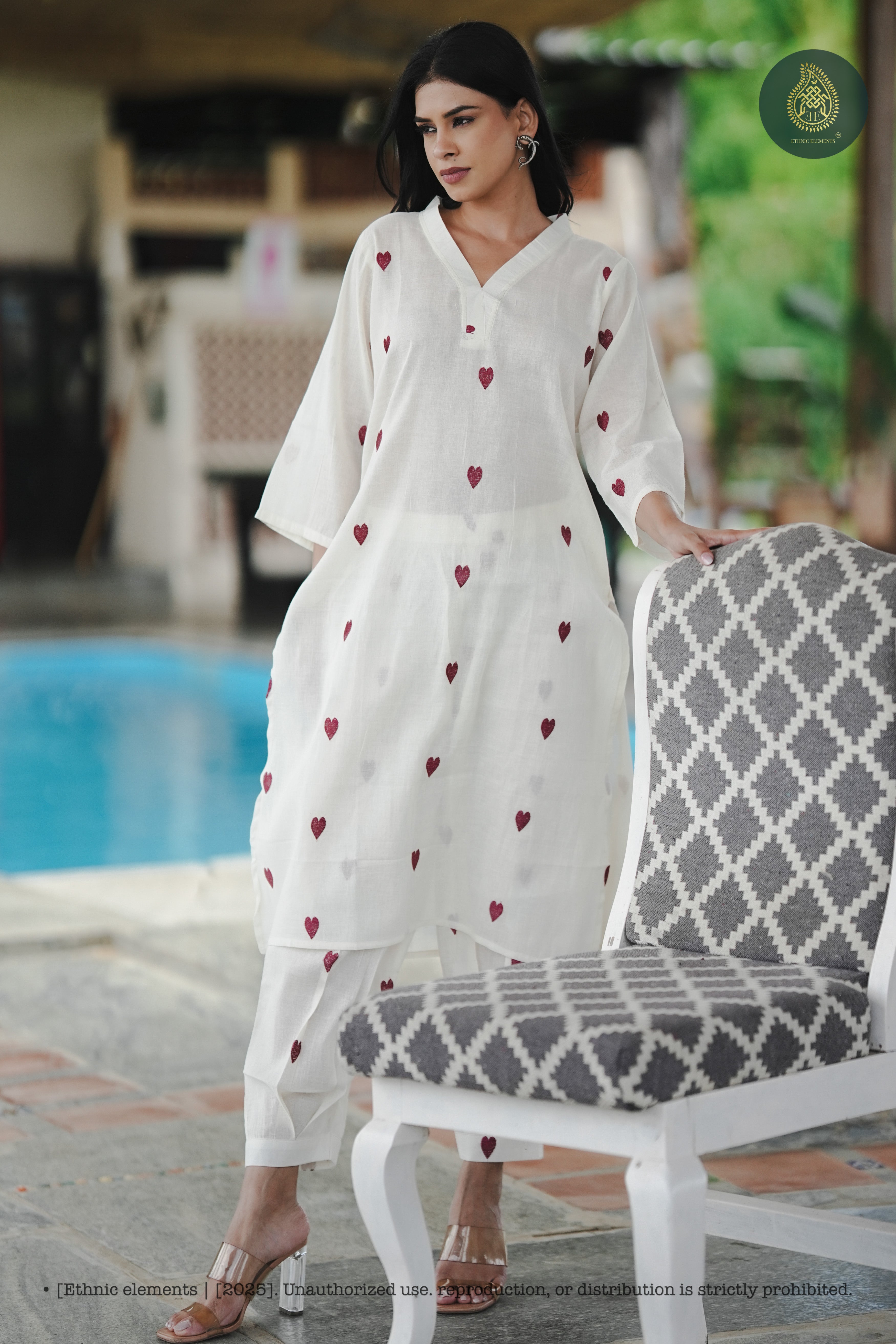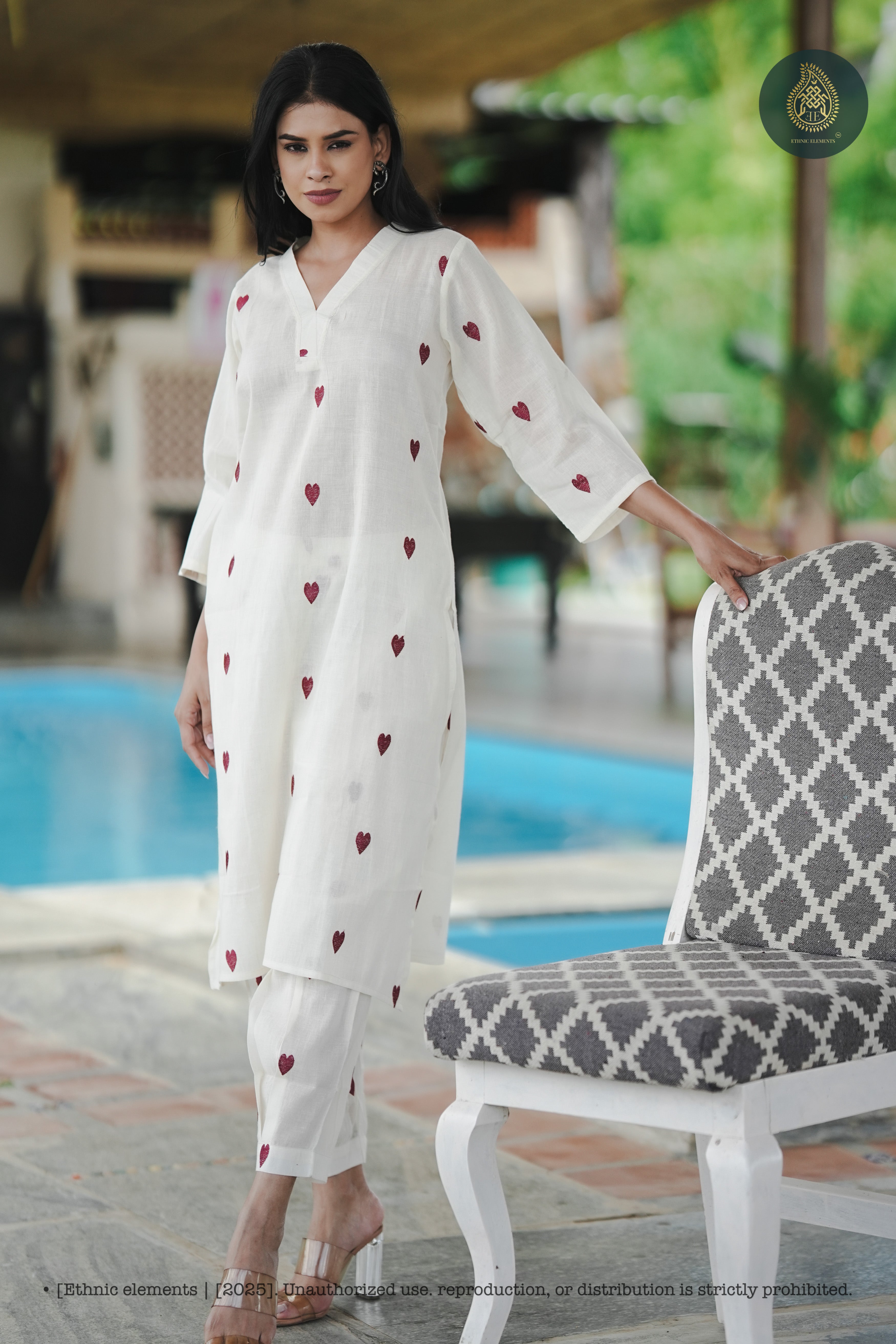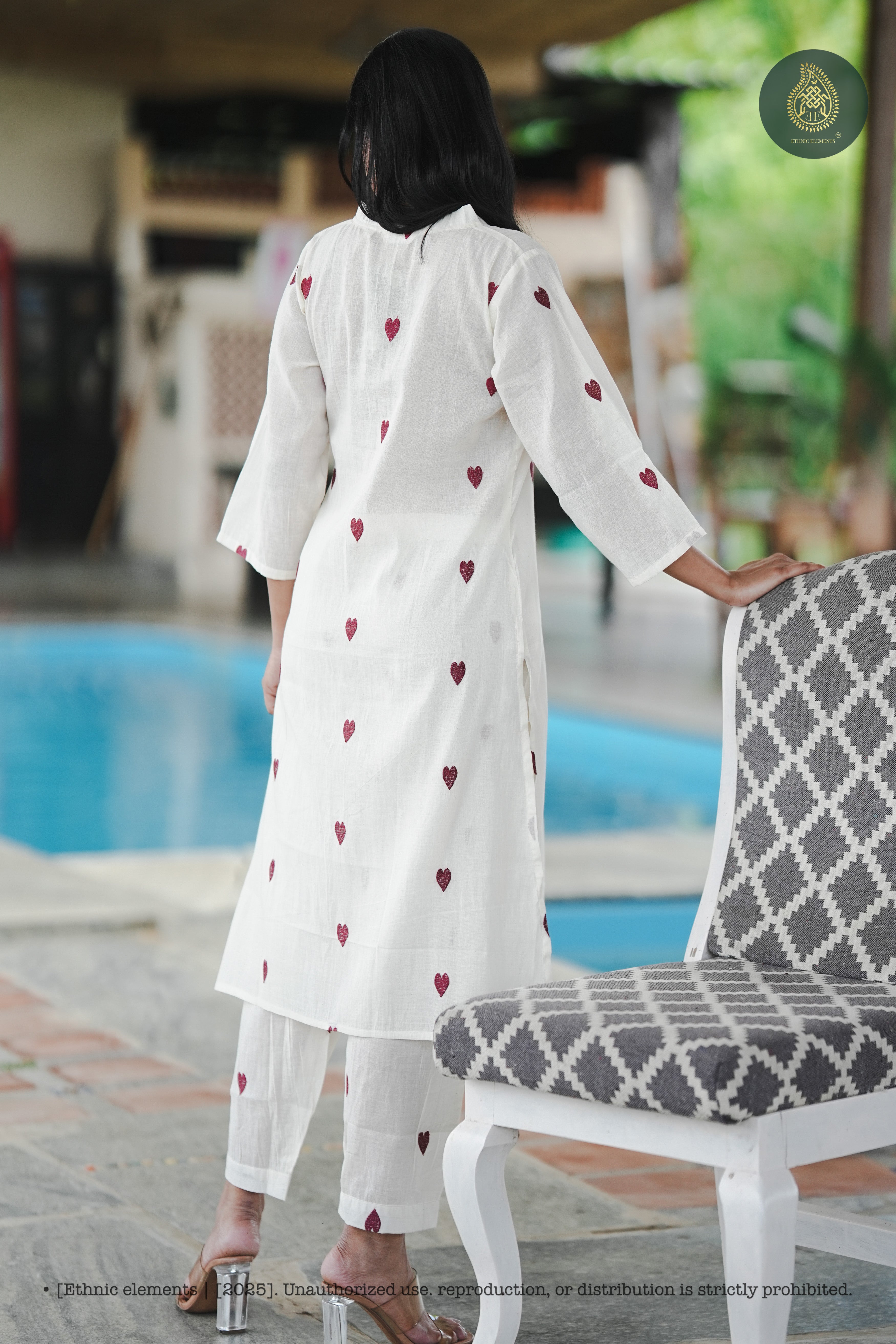 Stitched 2pc Cotton Suit Set- Hearts & Hues