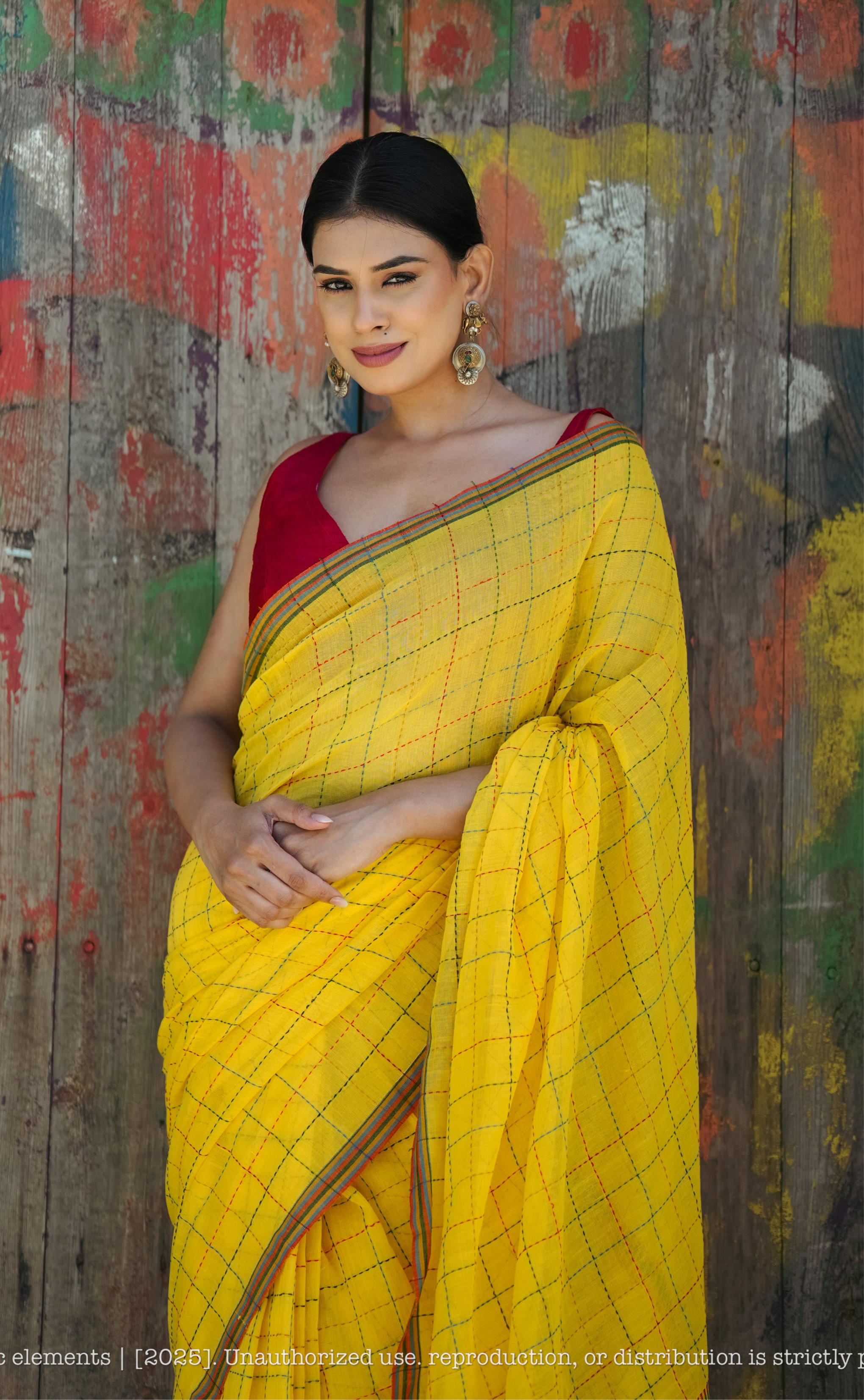 Mul Cotton Saree Kantha Work - Chandani Yellow