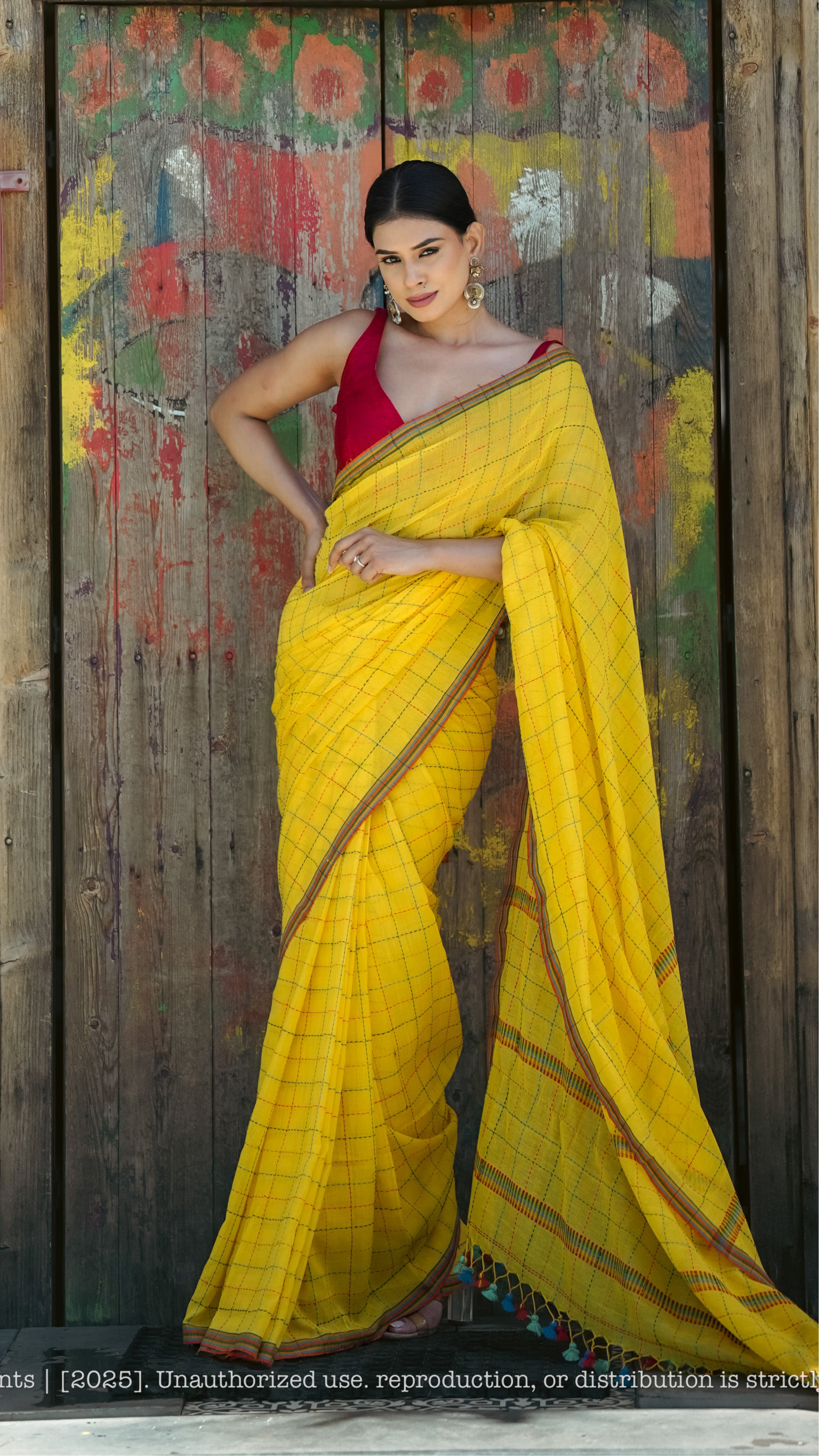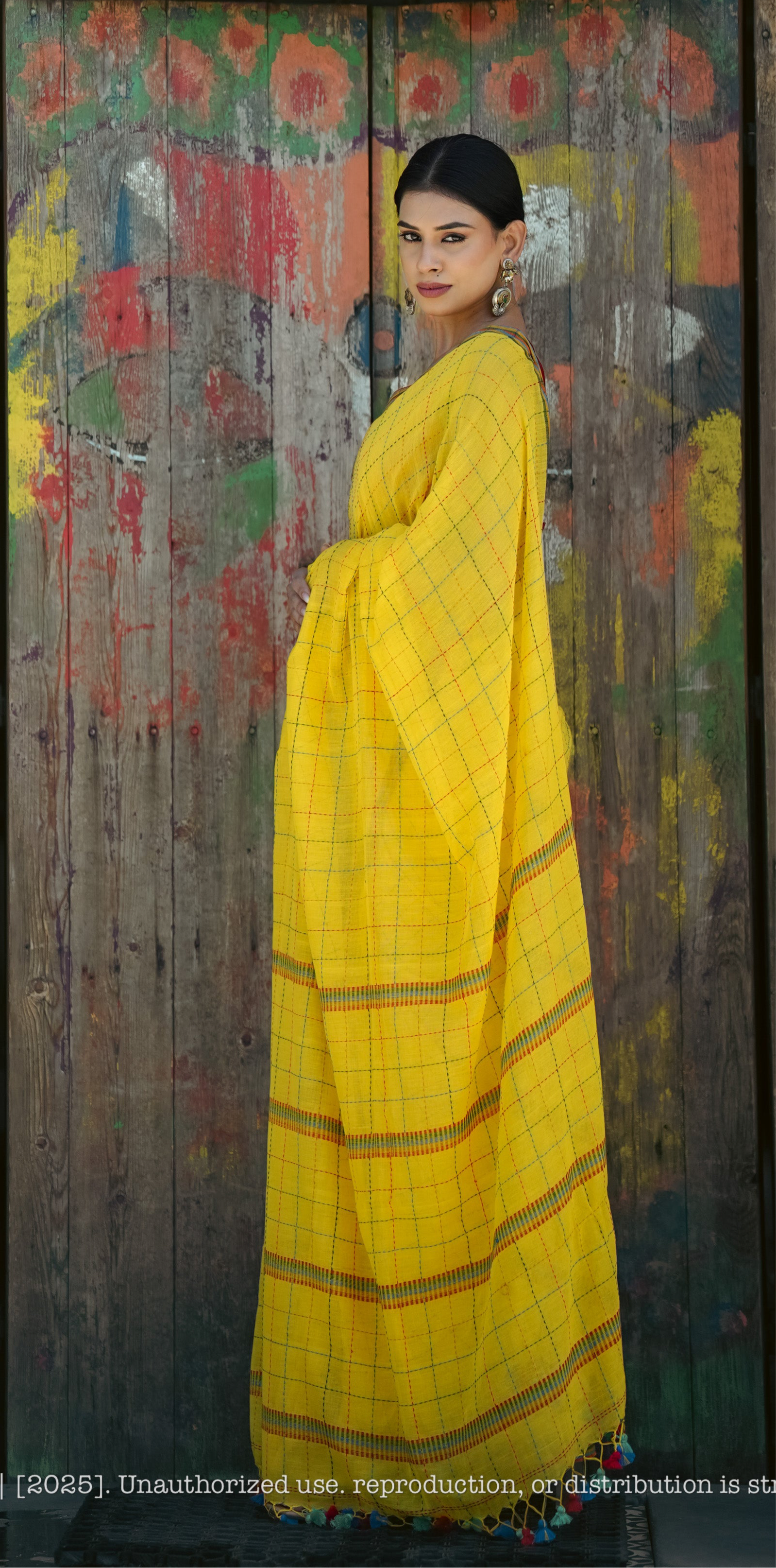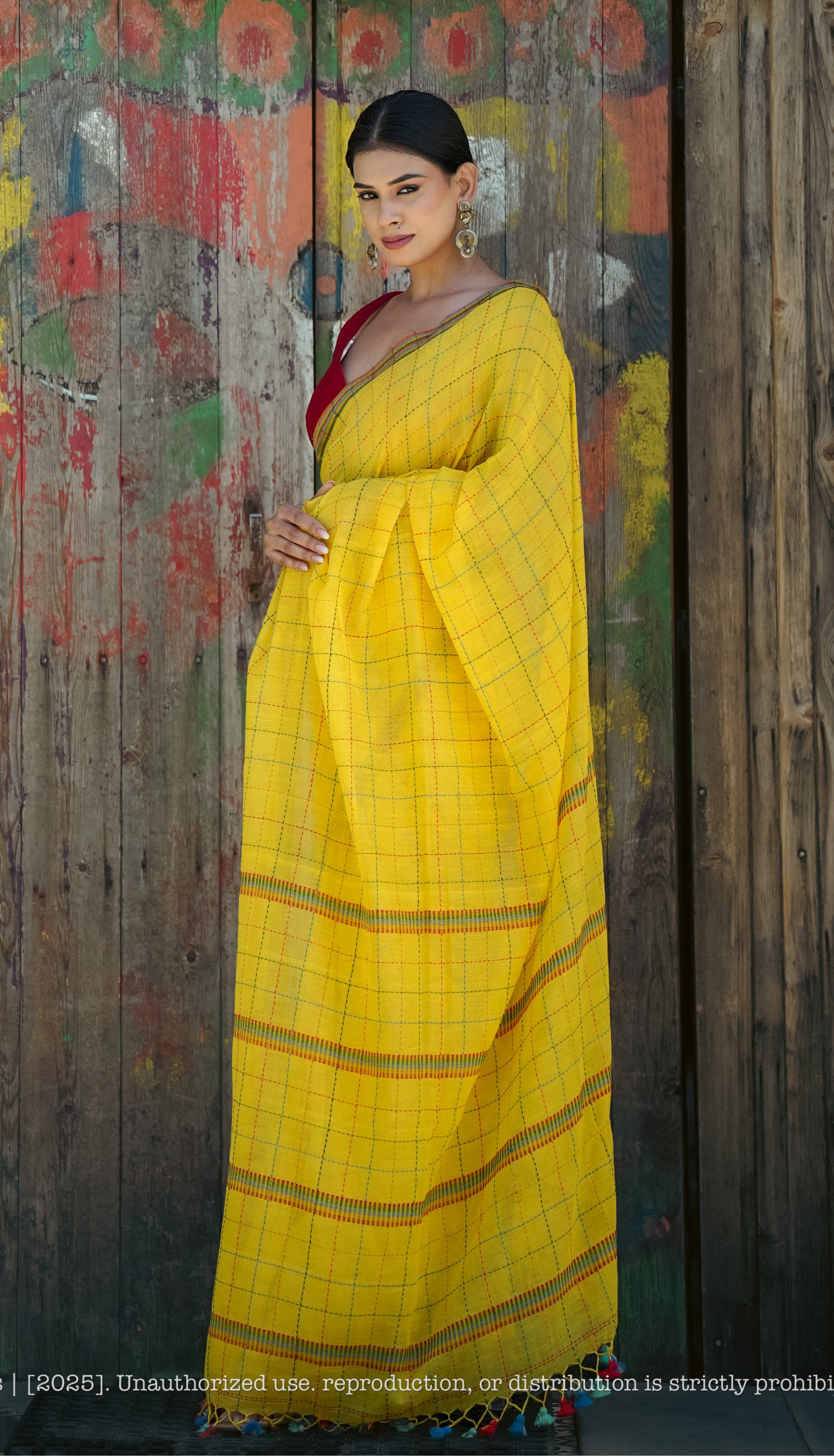 Handwoven Linen Jamdani Checked Saree – Raatrani Blush