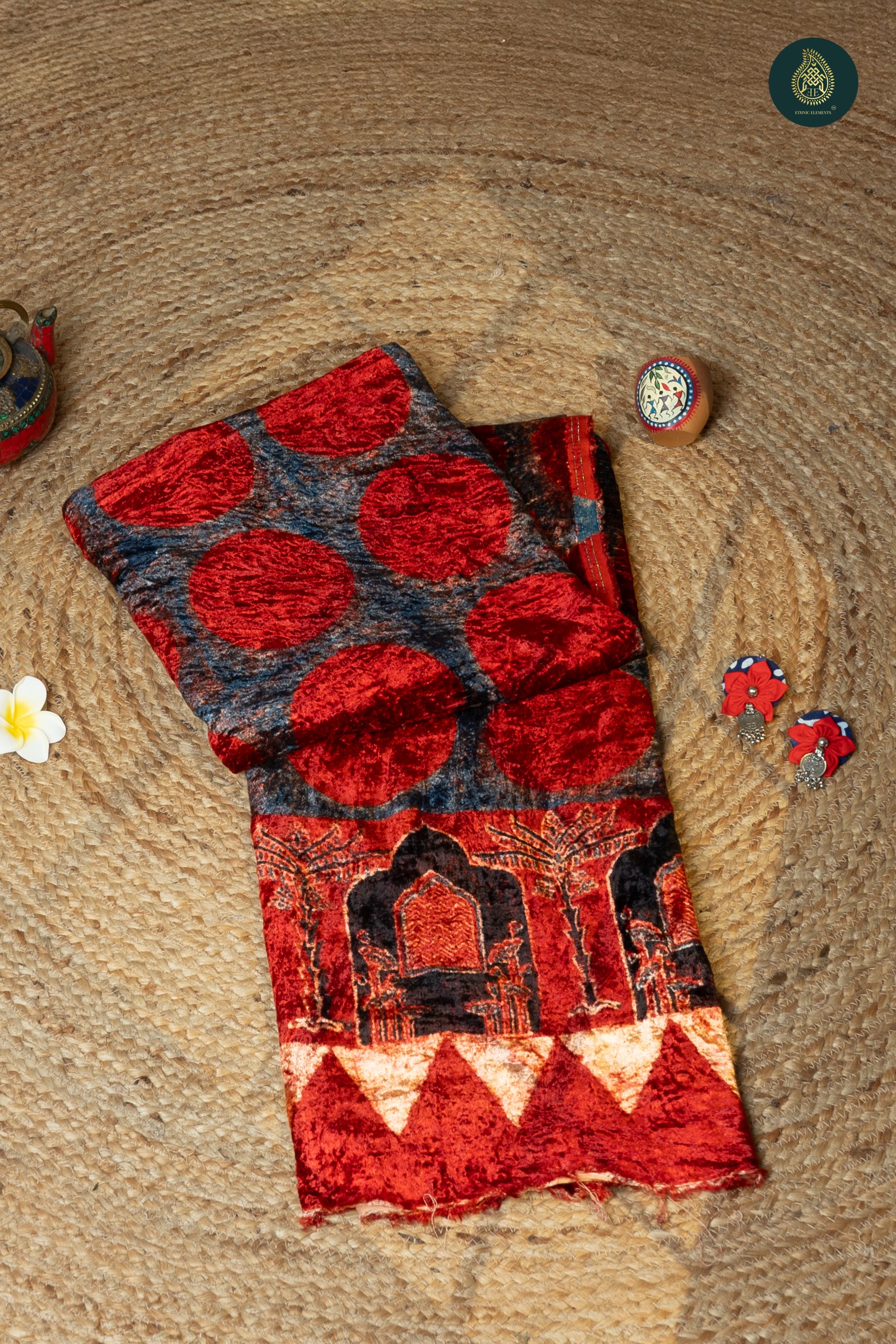 Velvet Ajrakh/Ajrak fabric for kurta. The Ajrakh blocks are made using wooden blocks and organic natural colors. This is only a kurta fabric piece.