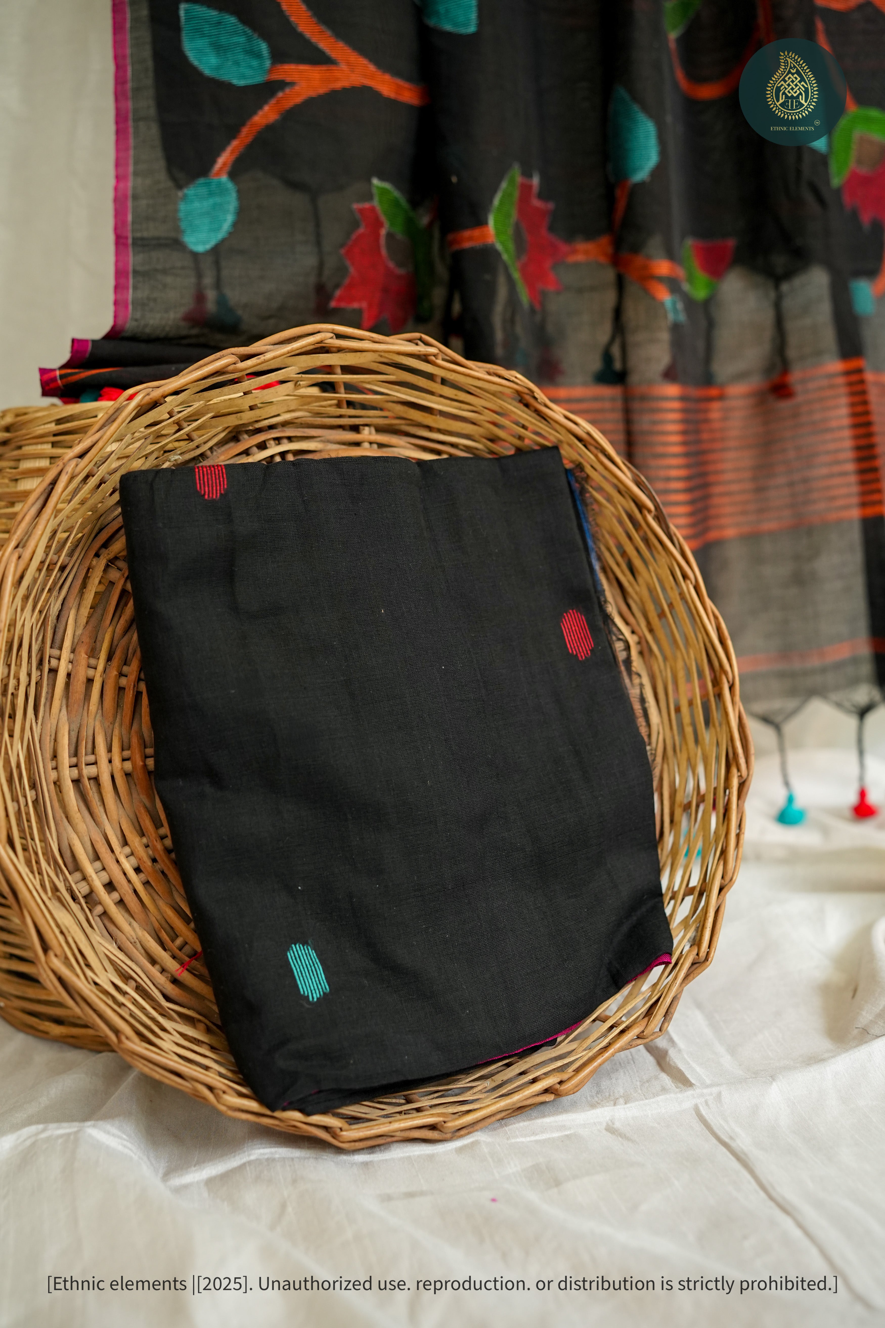 A versatile choice for festive celebrations, office days, or casual gatherings. Pair it with oxidized silver jewellery, juttis, and a woven bag for an elegant, handcrafted look that stands out effortlessly.Team this Jamdani ensemble with statement earrings, block heels, and a minimal sling bag for a modern yet traditional appeal.