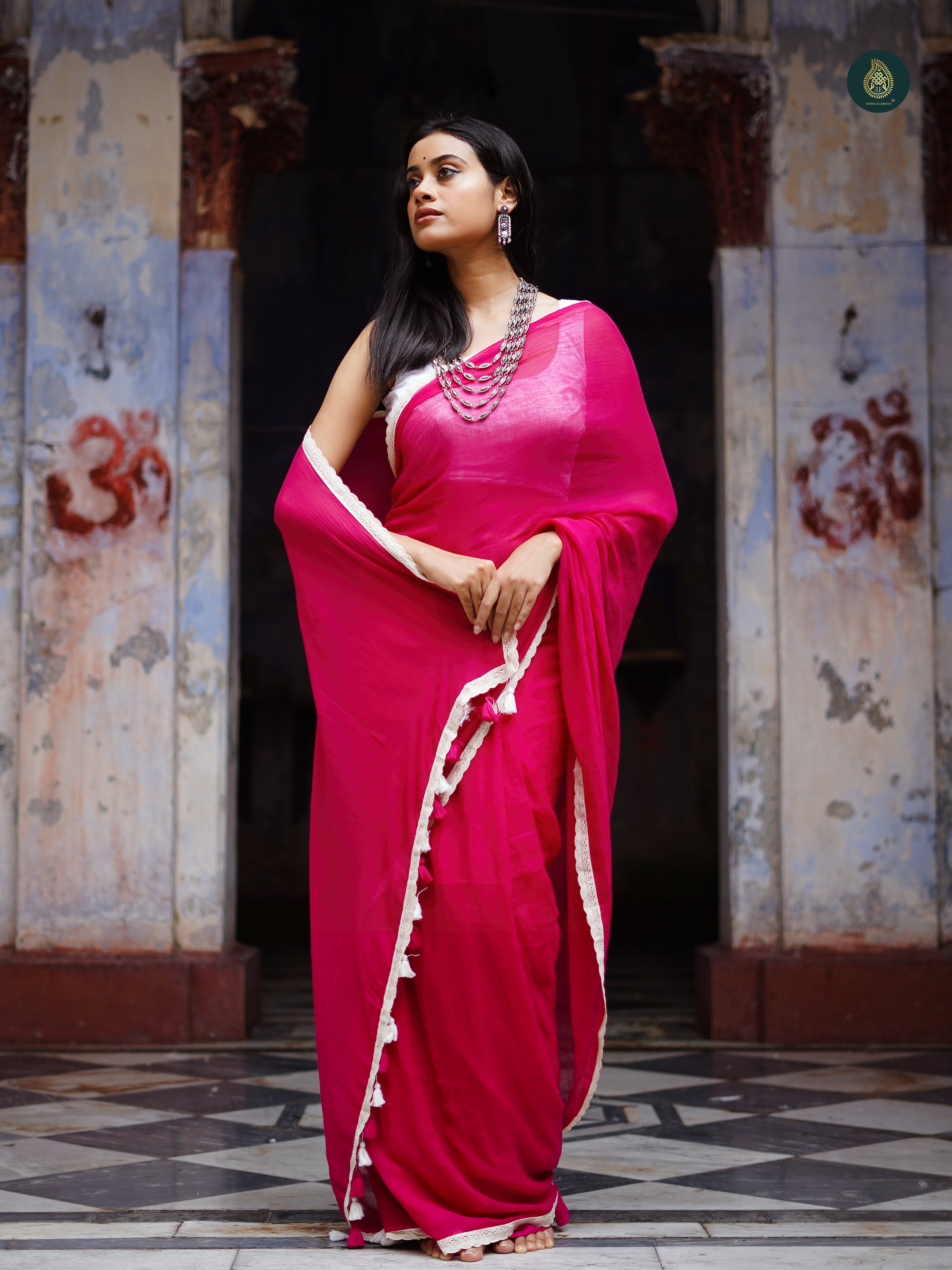 Woven pure mul cotton designer sequence saree that is crafted with precision and adorned with handmade big tassels on pallu. Comes WITH blouse piece. It is a beauty in making when timeless artistry meets modern grace.