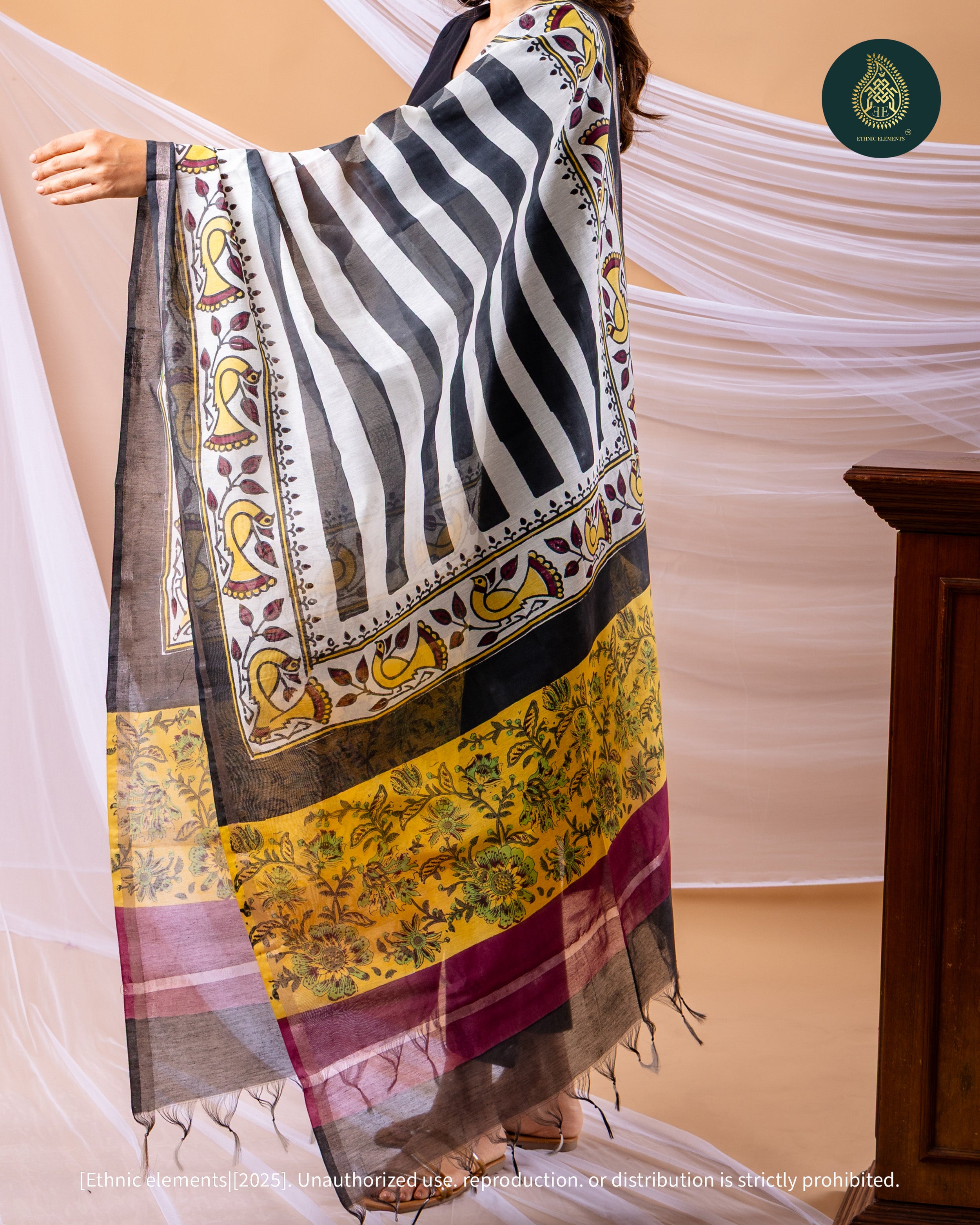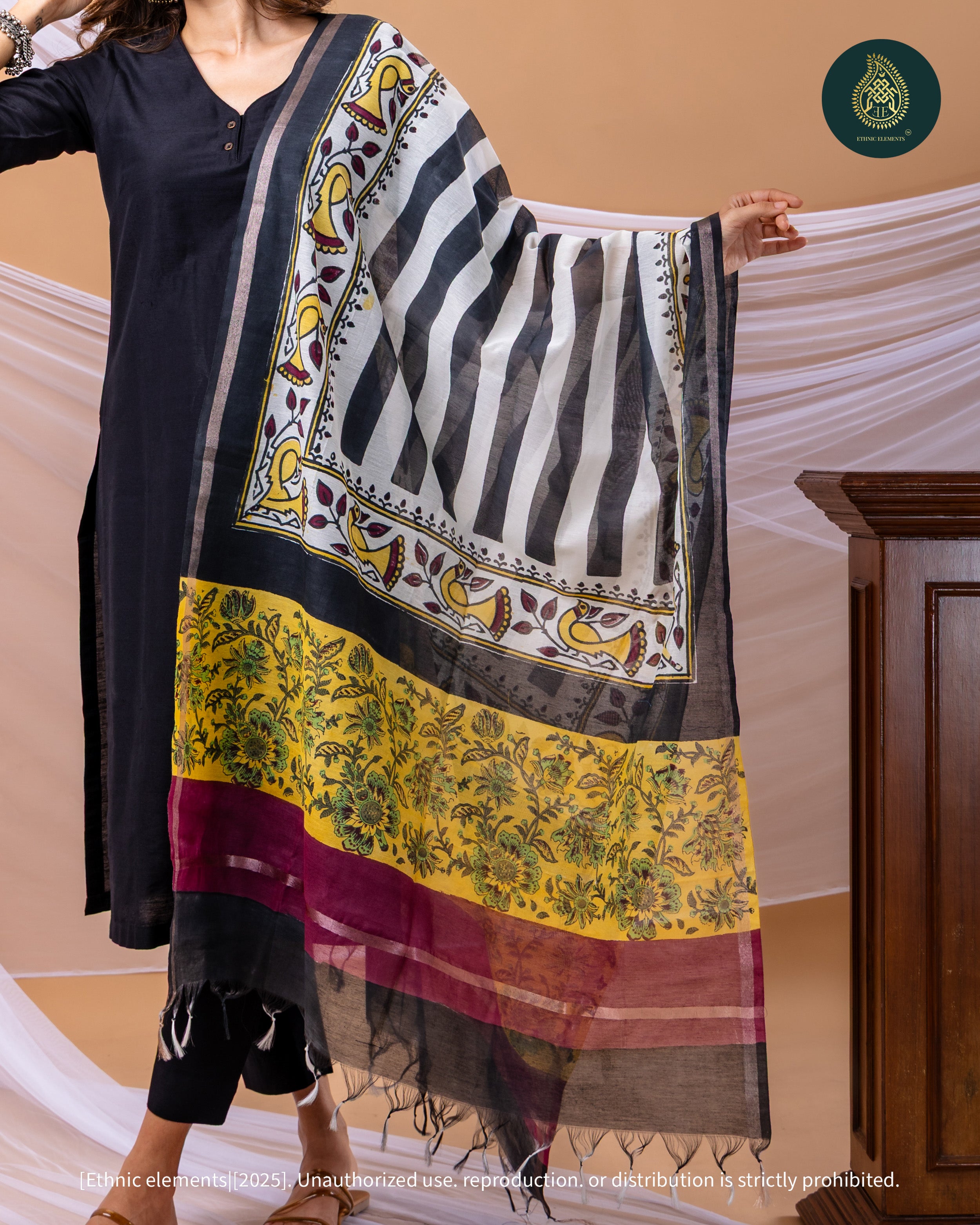 Koila - Sanganeri Hand Blockprinted Chanderi Silk Dupatta