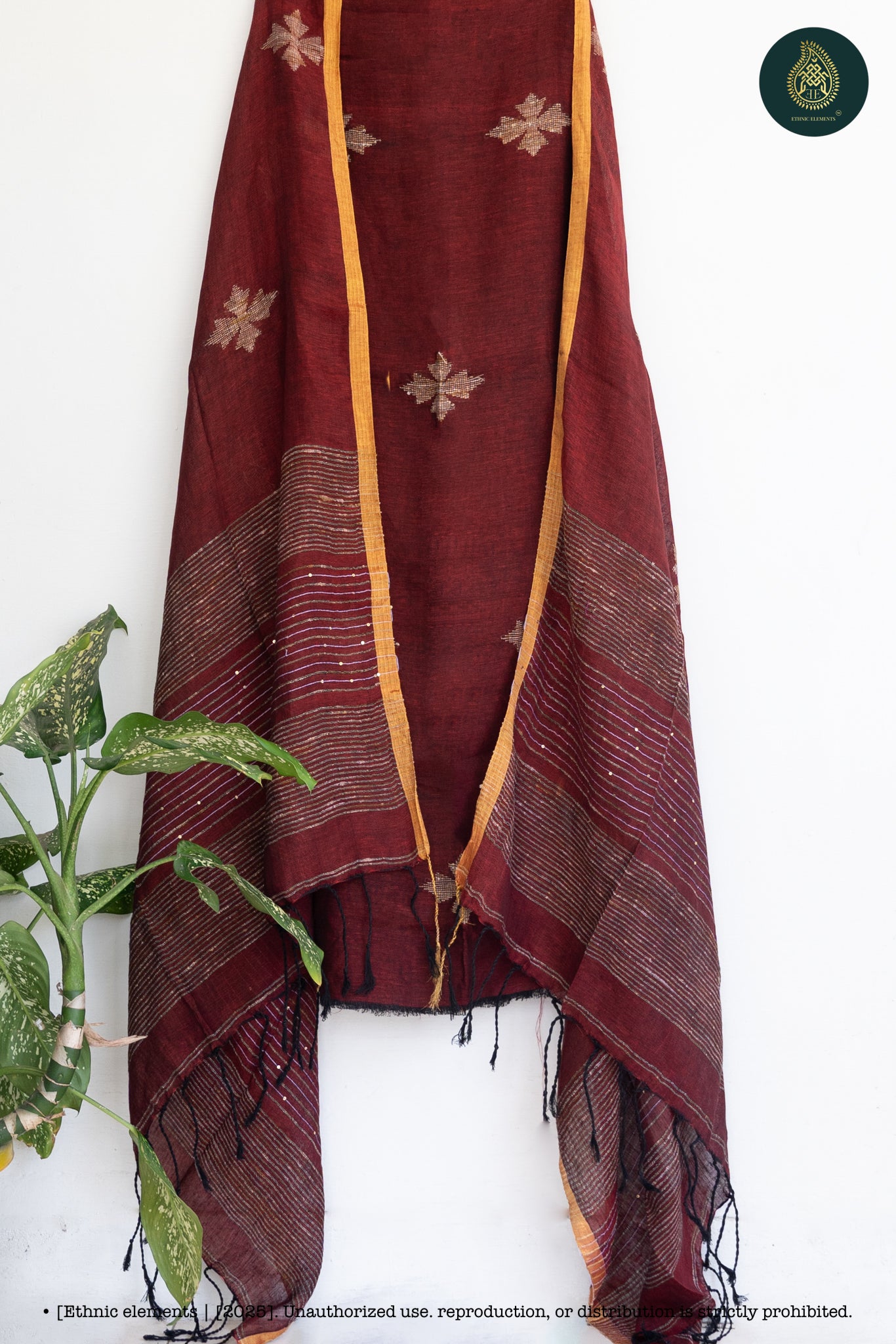 Unstitched Linen Kurta Dupatta Set with Gicha Jamdani Weaving & Sequin Work