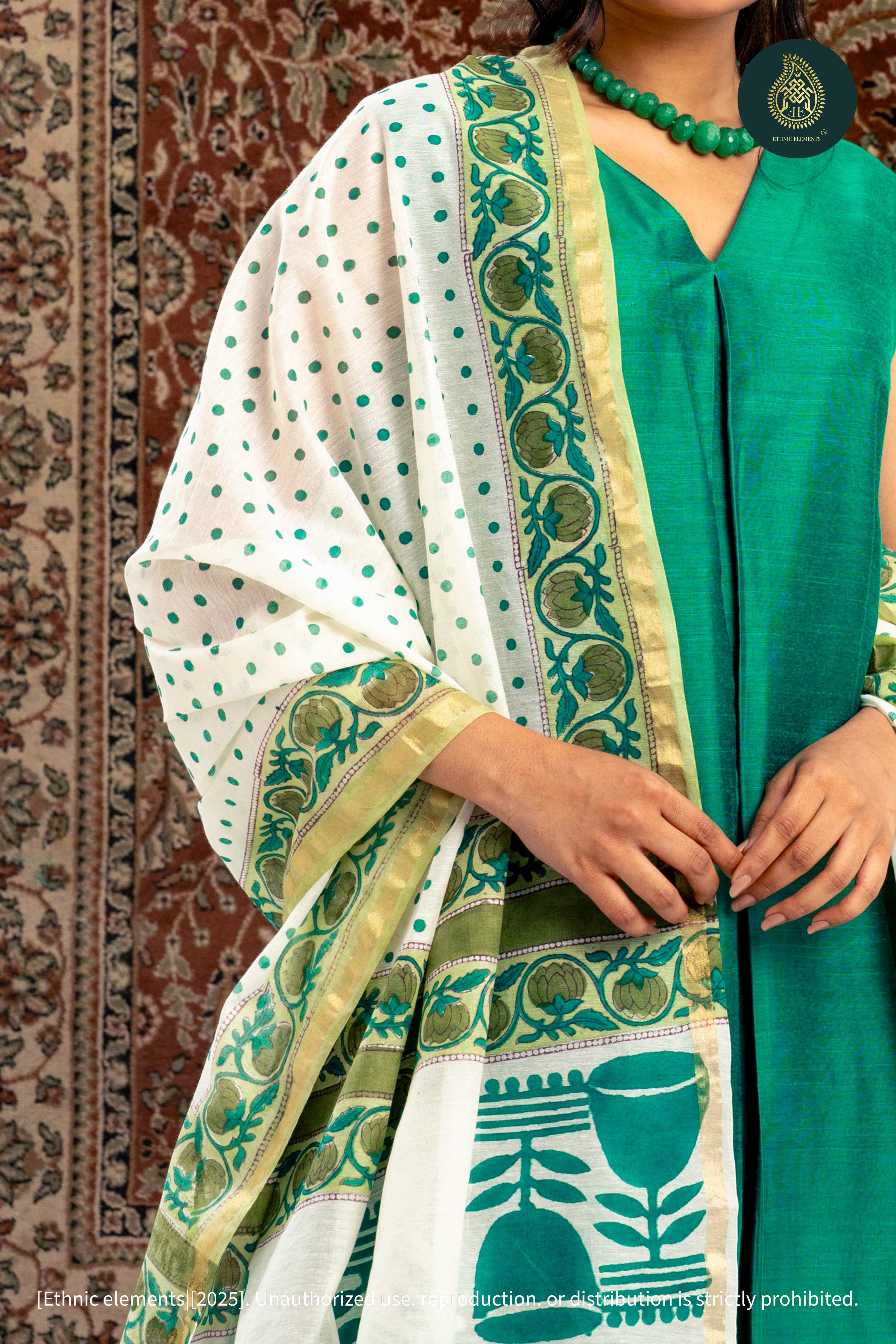 Panna - Sanganeri Hand BlockPrinted Chanderi Silk Dupatta