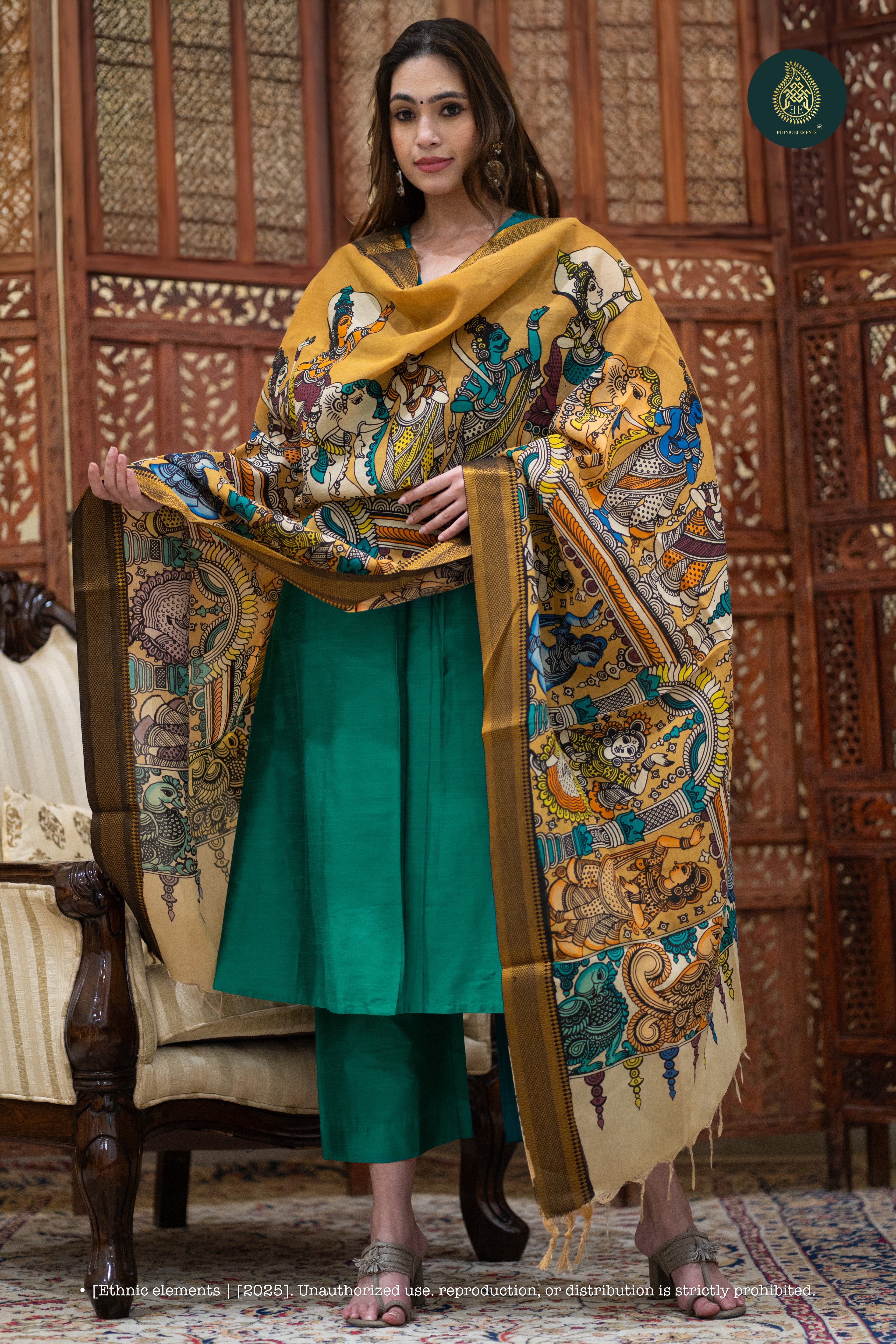 Prakriti - Pen Kalamkari Hand Painted Silk Dupatta