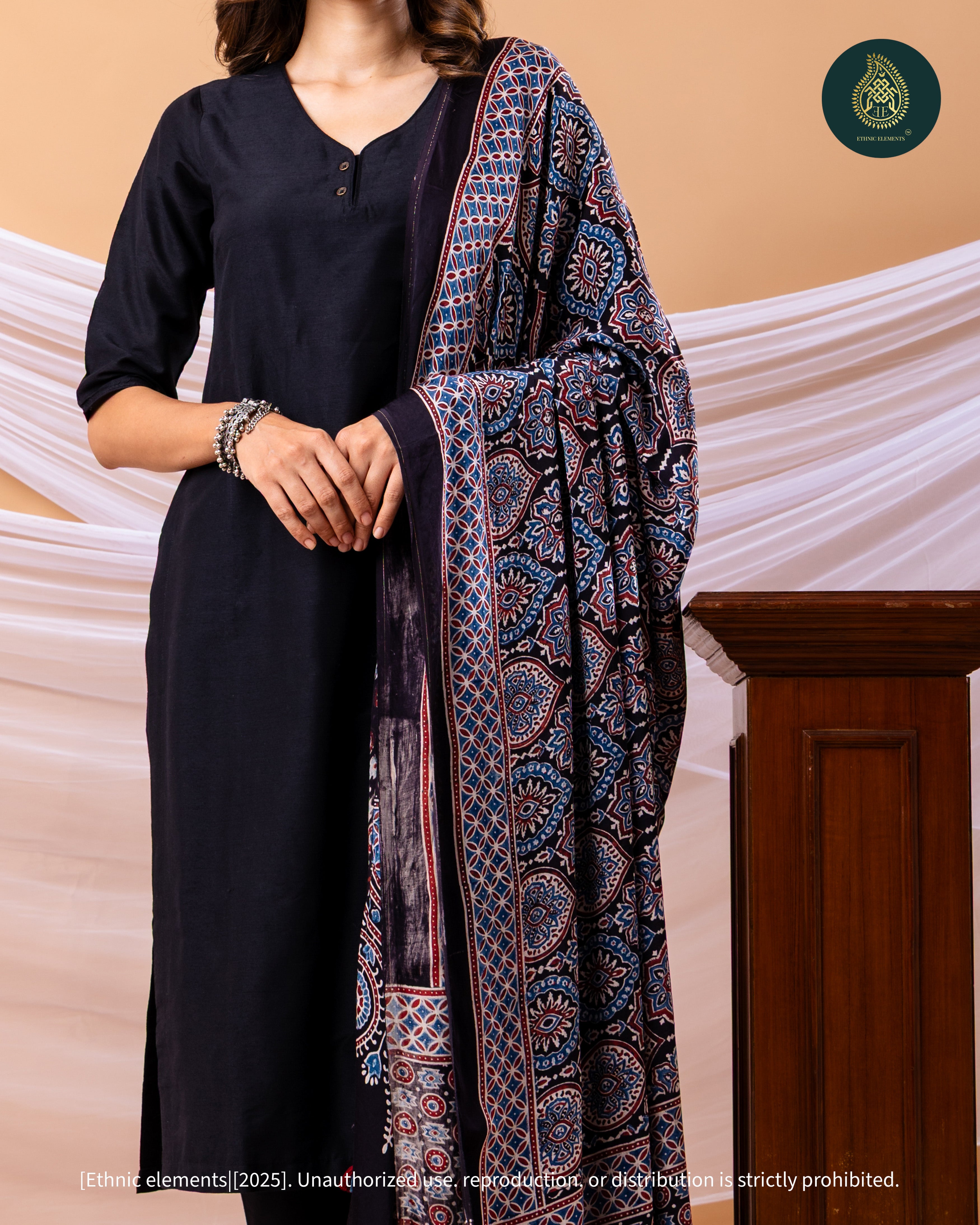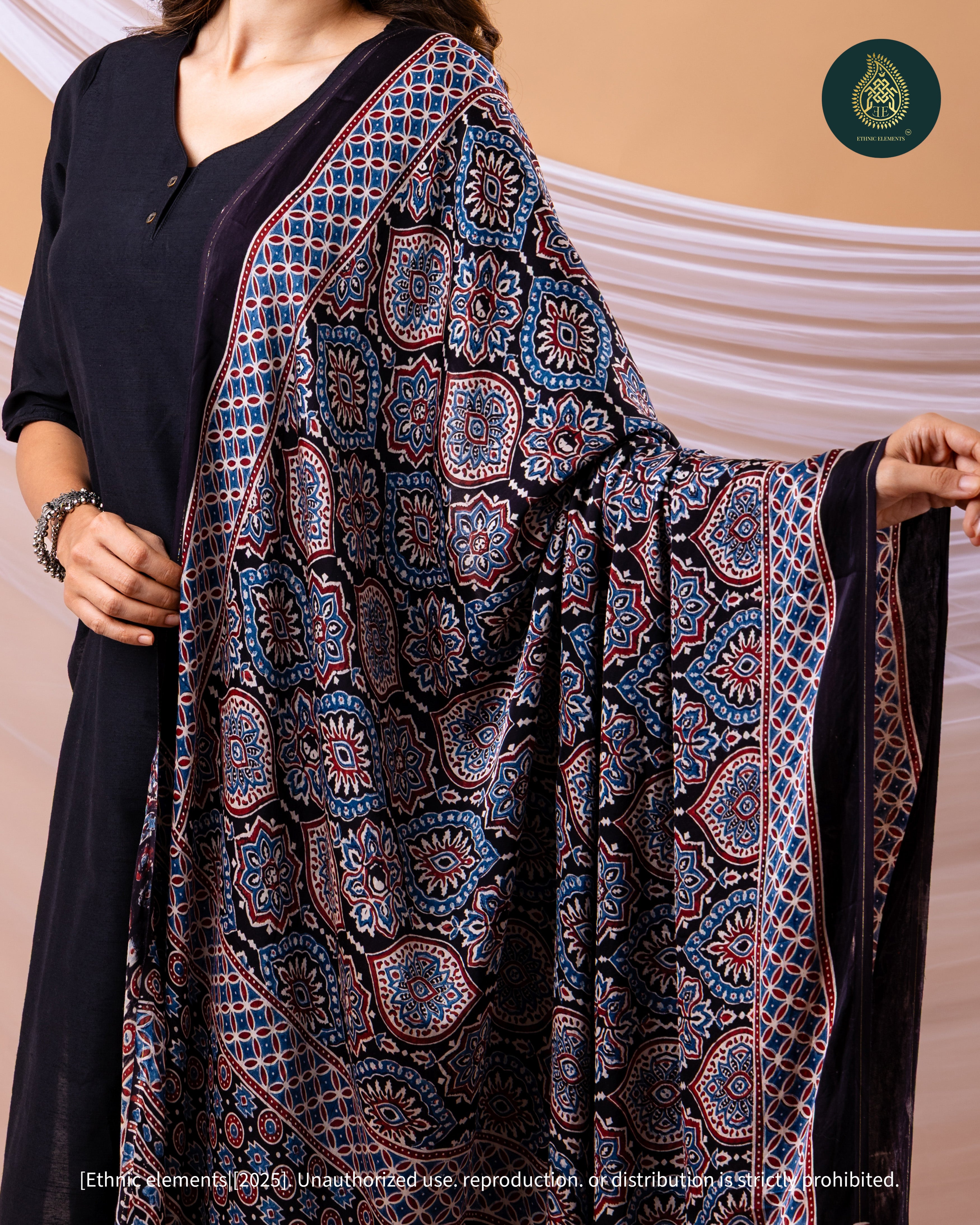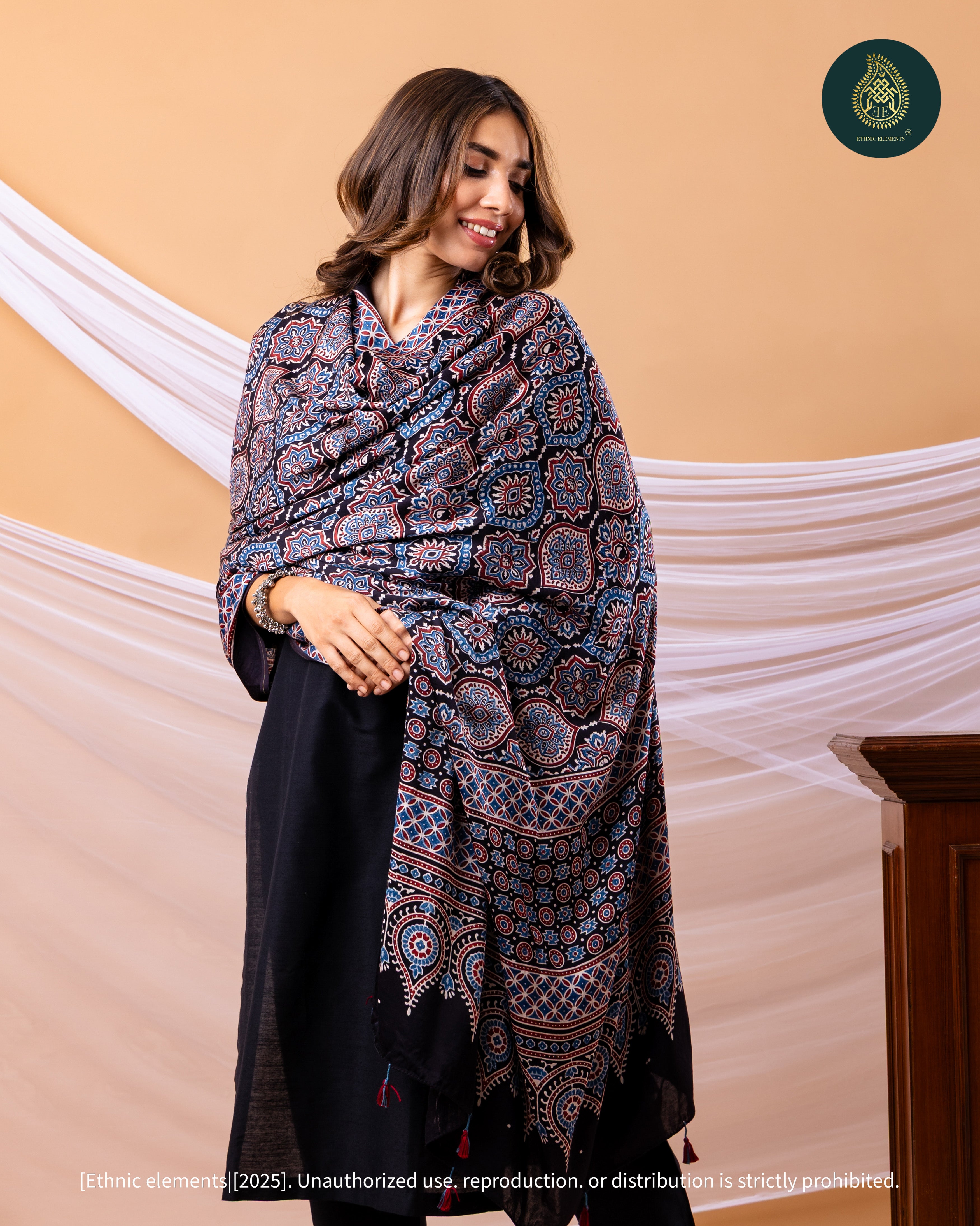 Saanjh - Ajrakh Handblock Modal Silk Dupatta