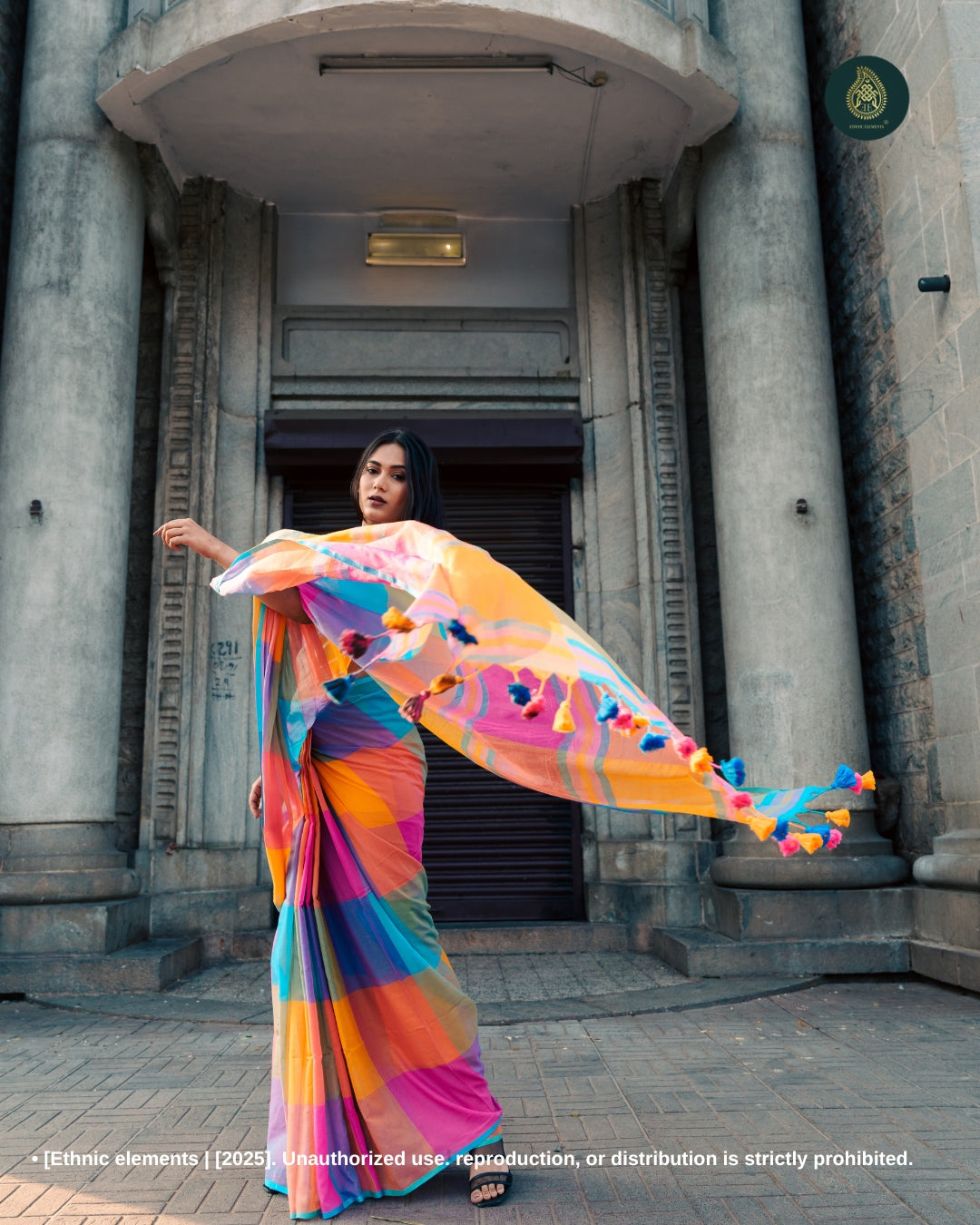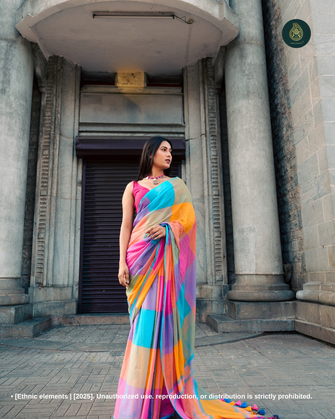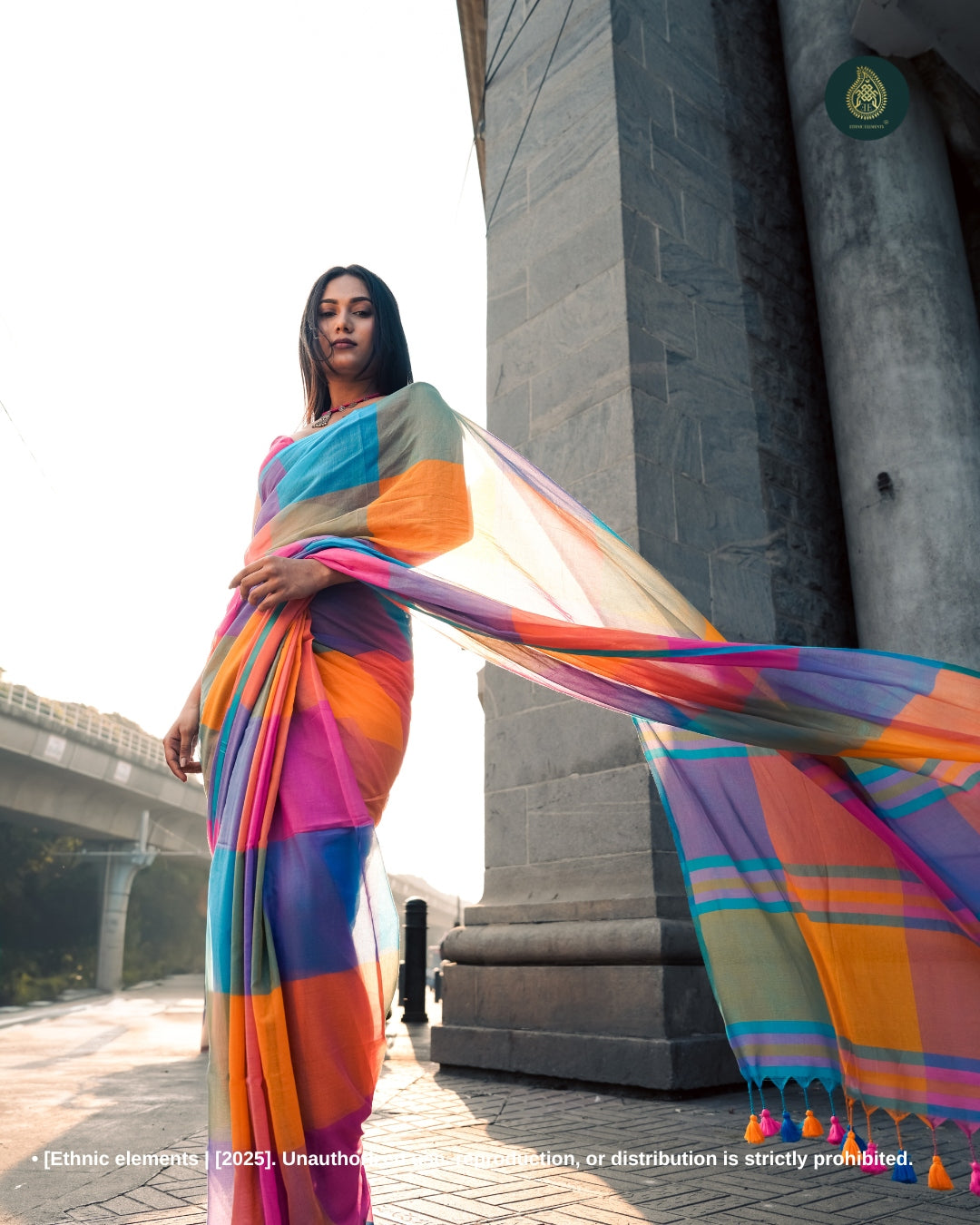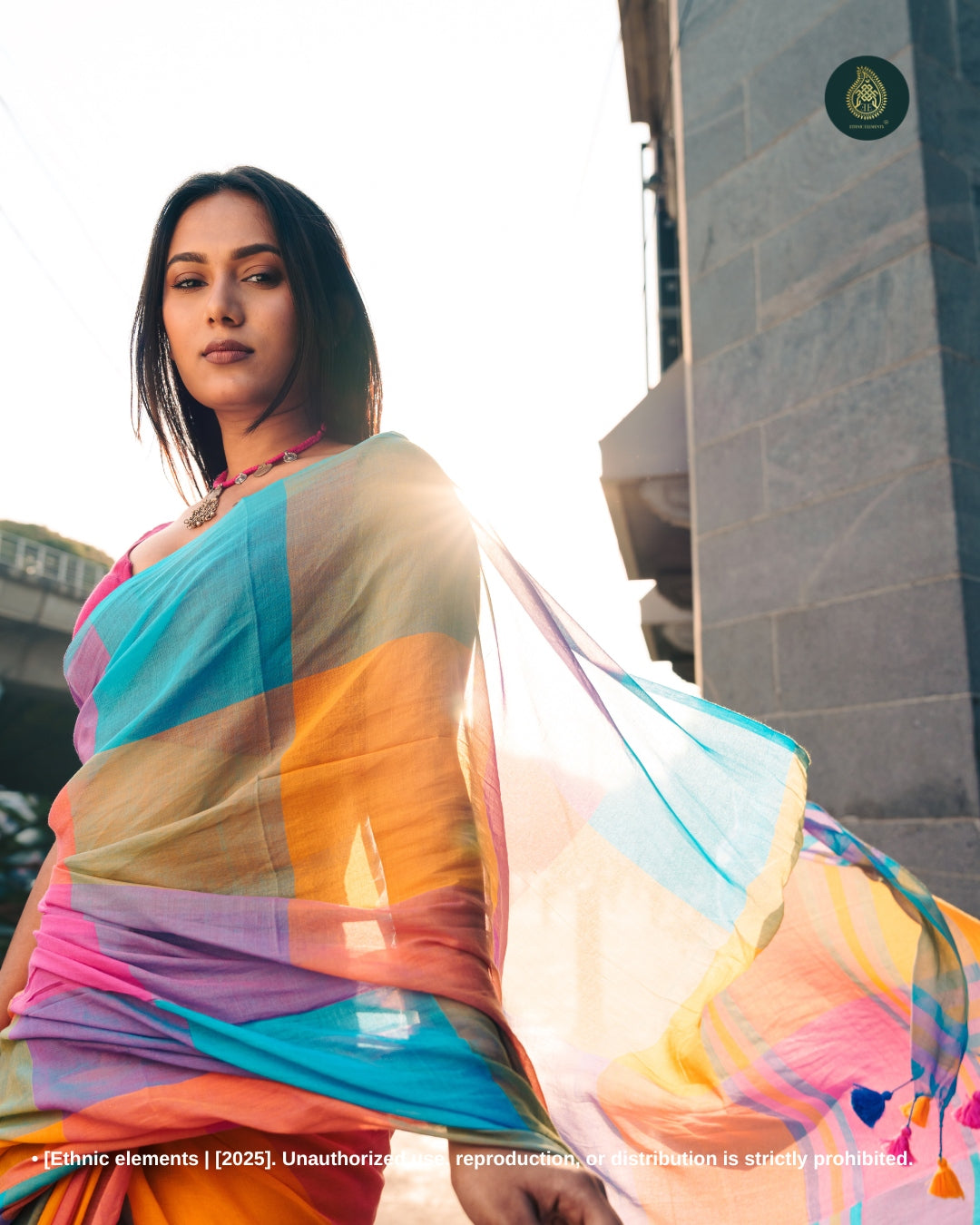 Woven Mul Cotton Handloom Saree - Designer Symphony Of Checks