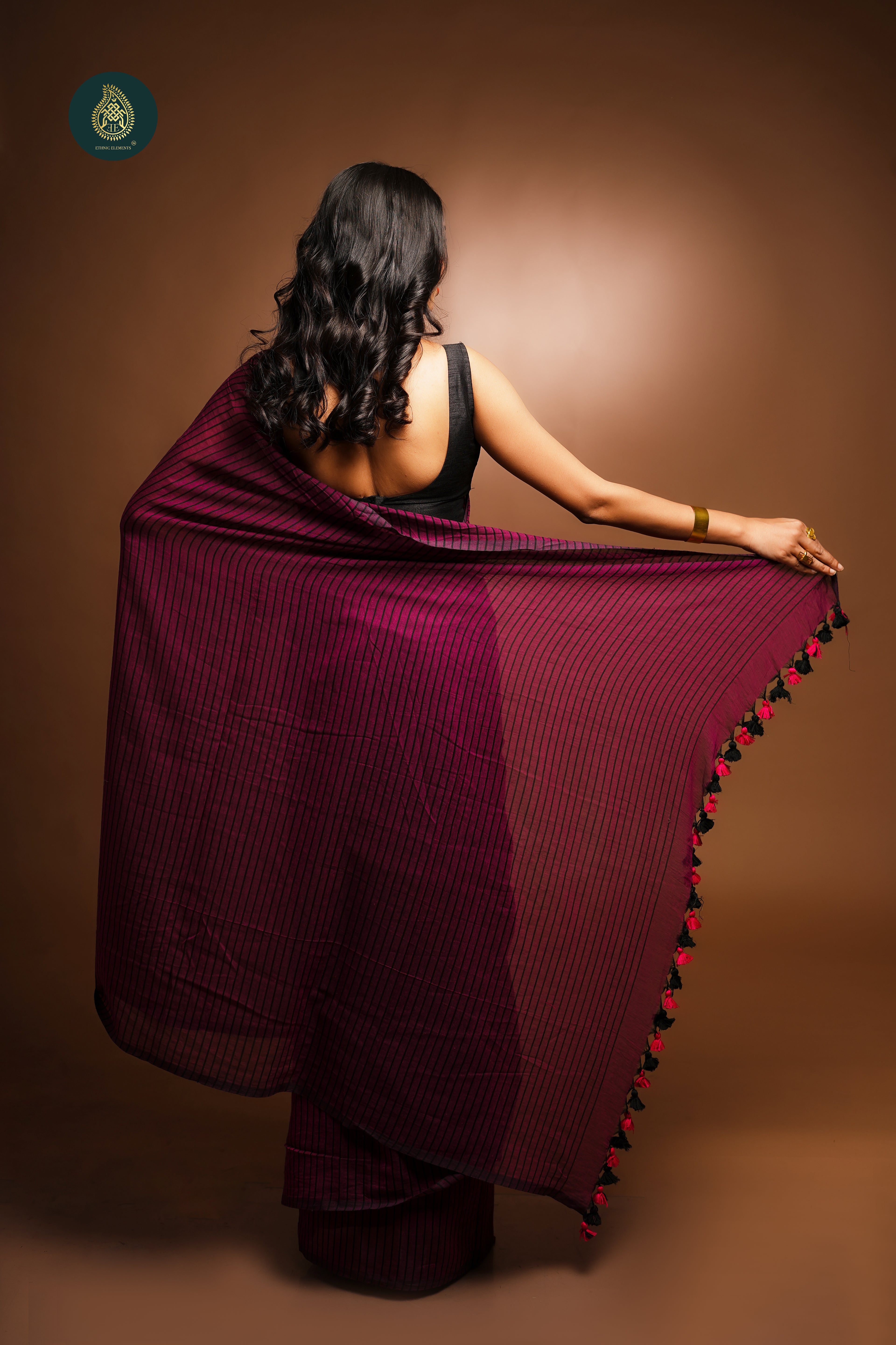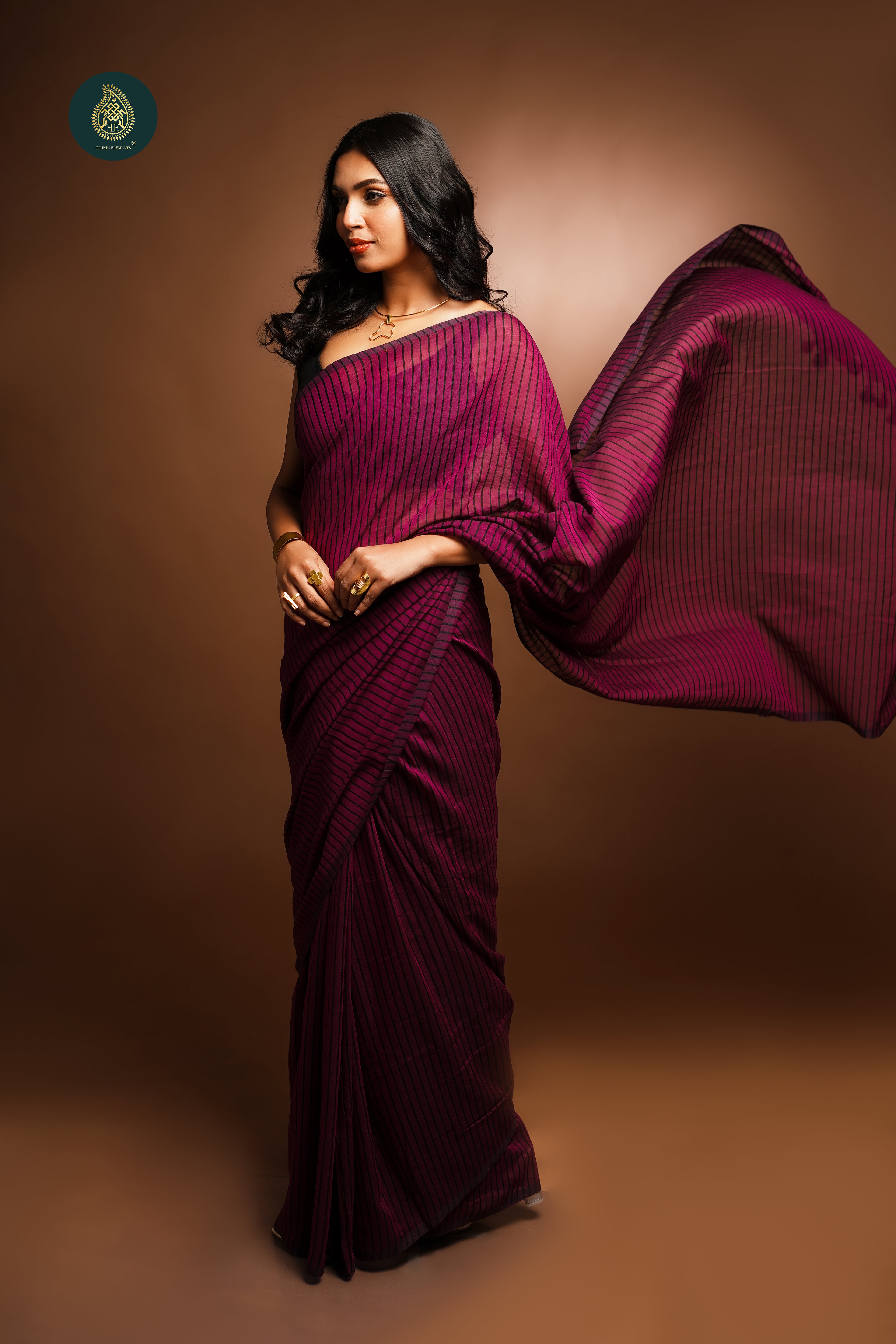Bengal Woven Mul Cotton Saree with woven stripes works across the entire length of the saree. This saree doesn't have a blouse piece.